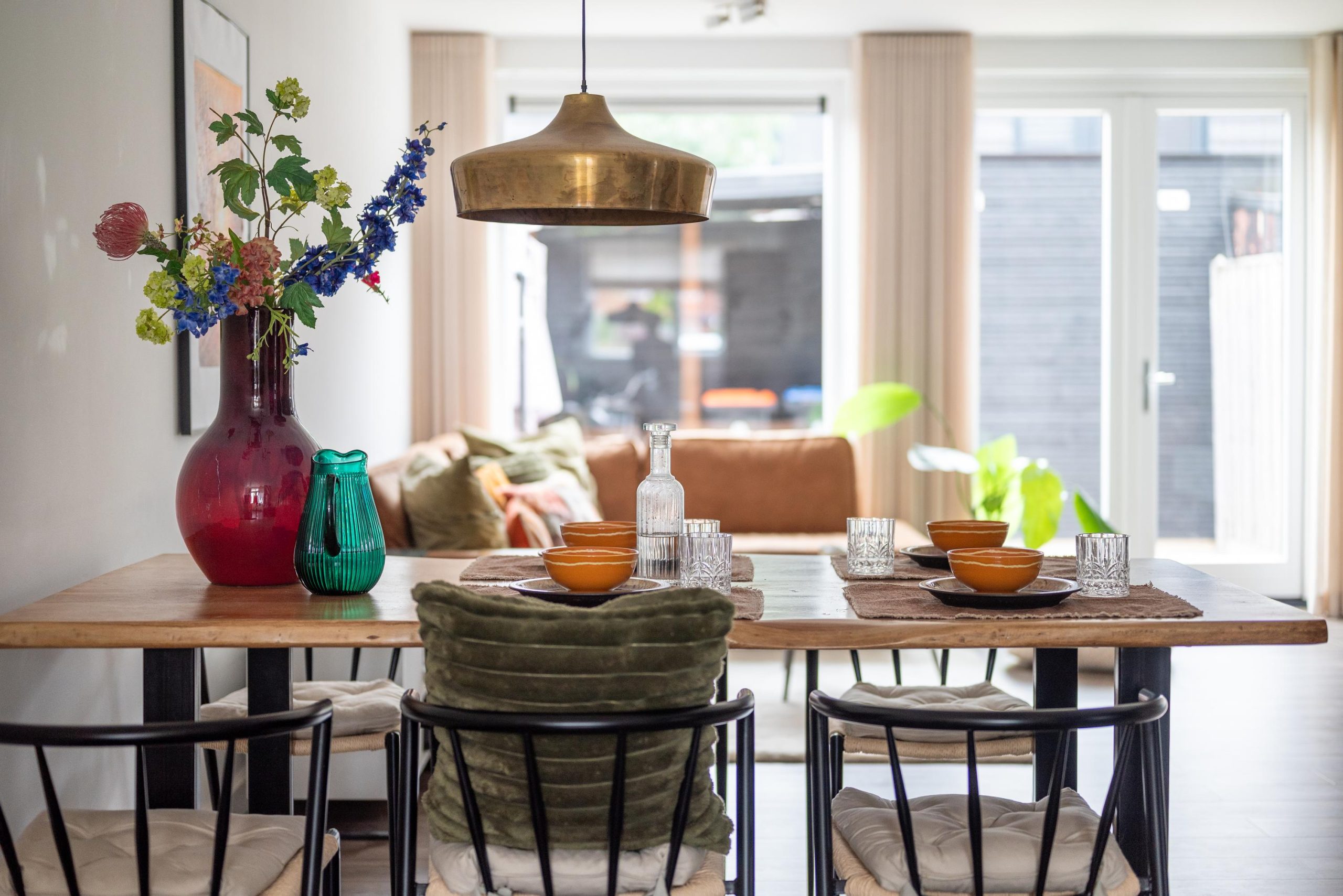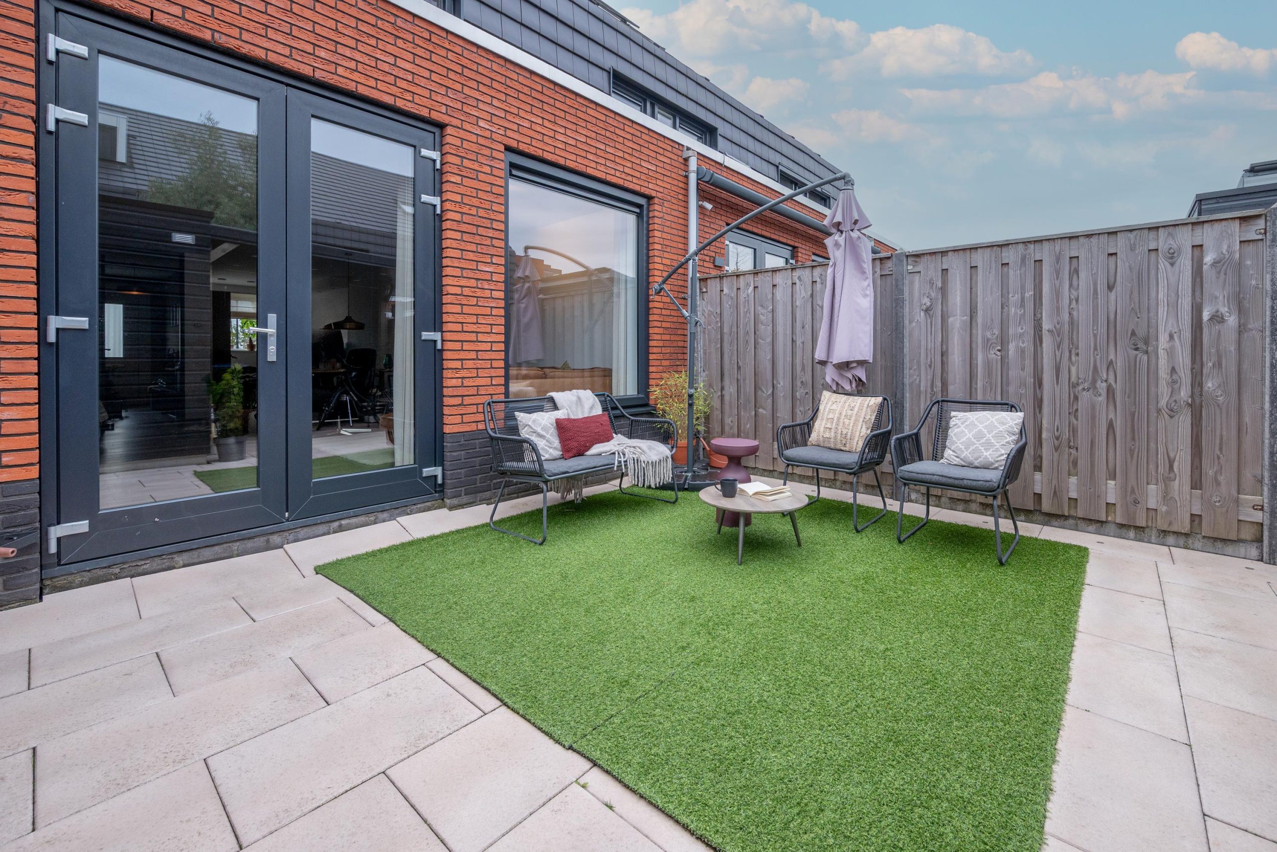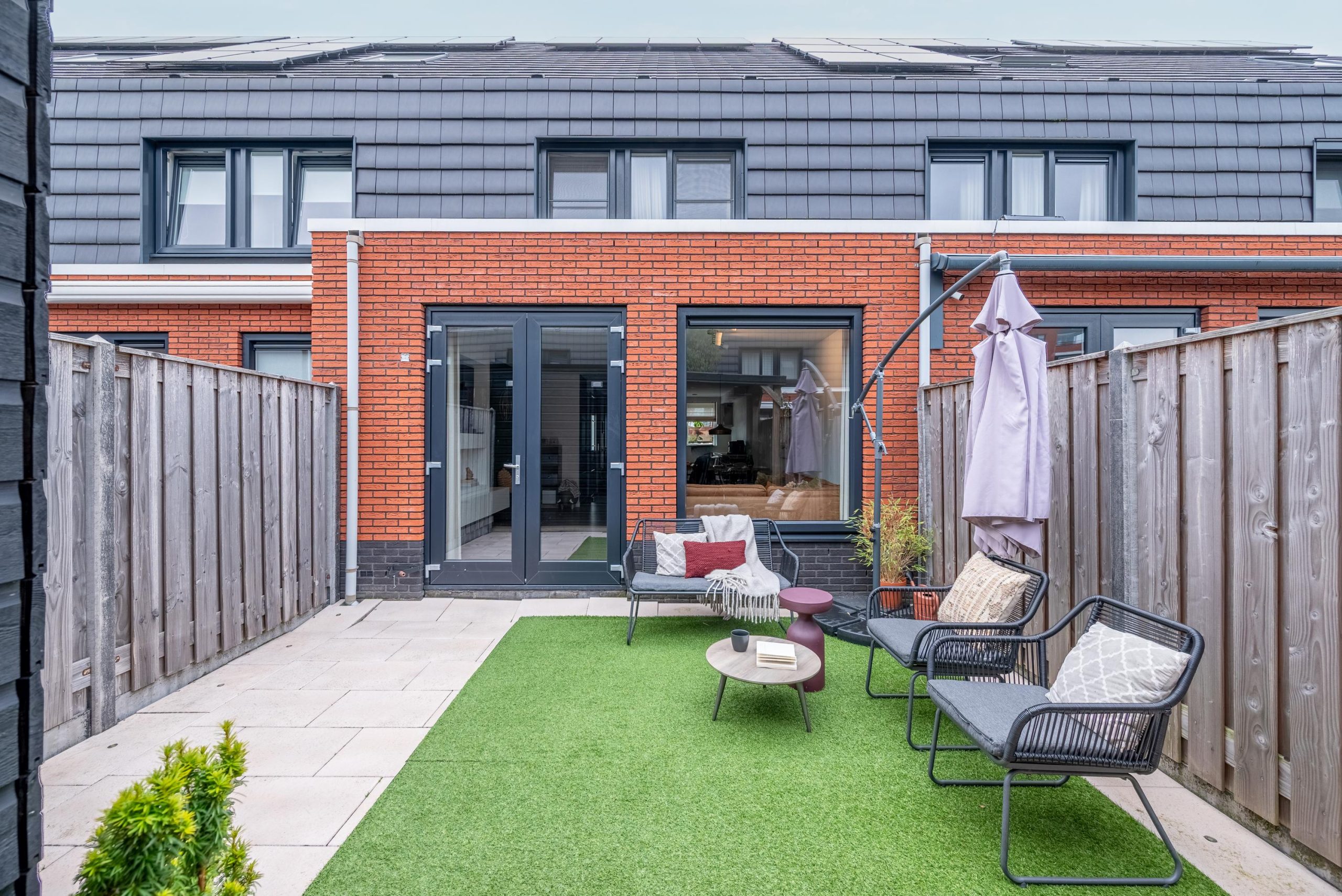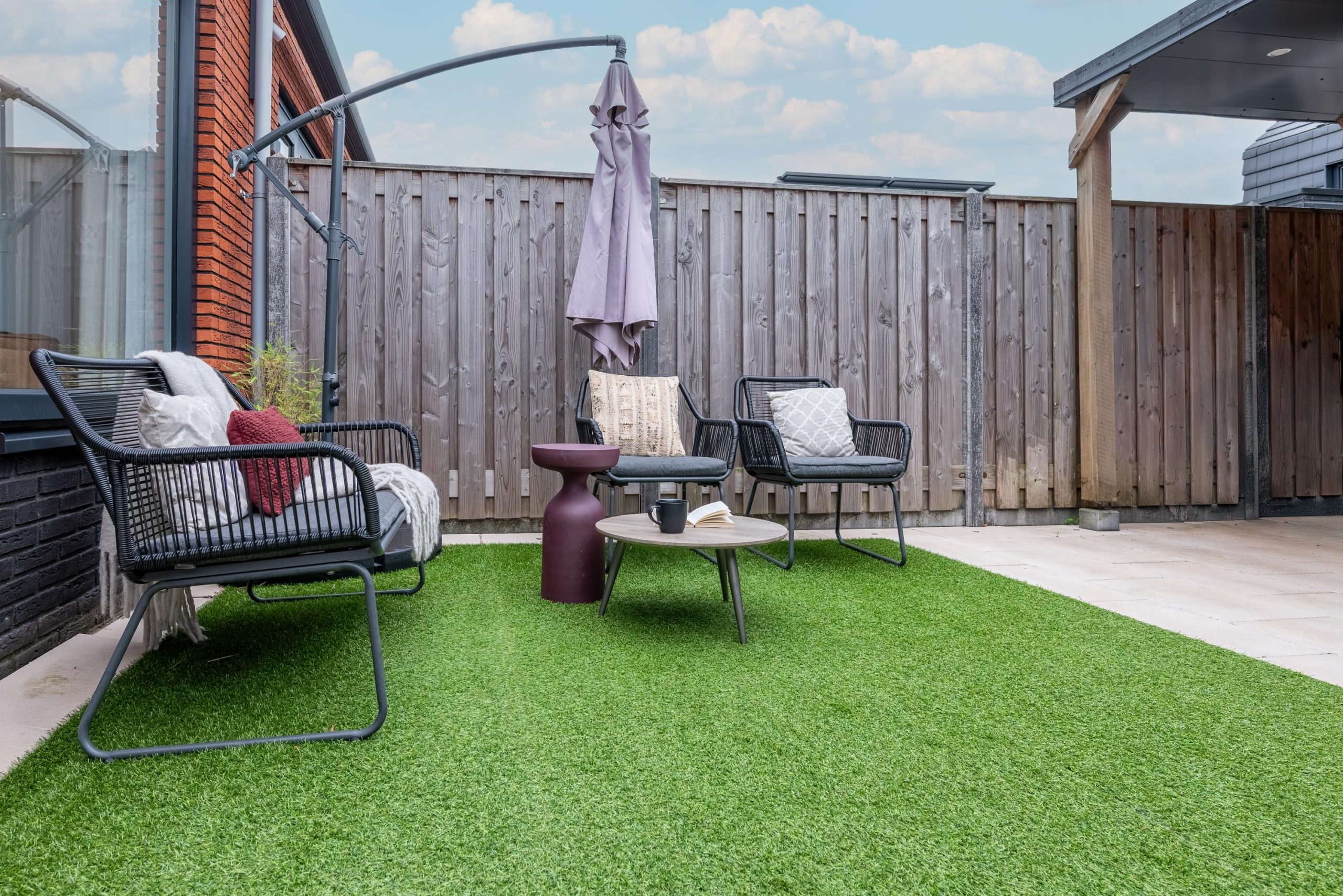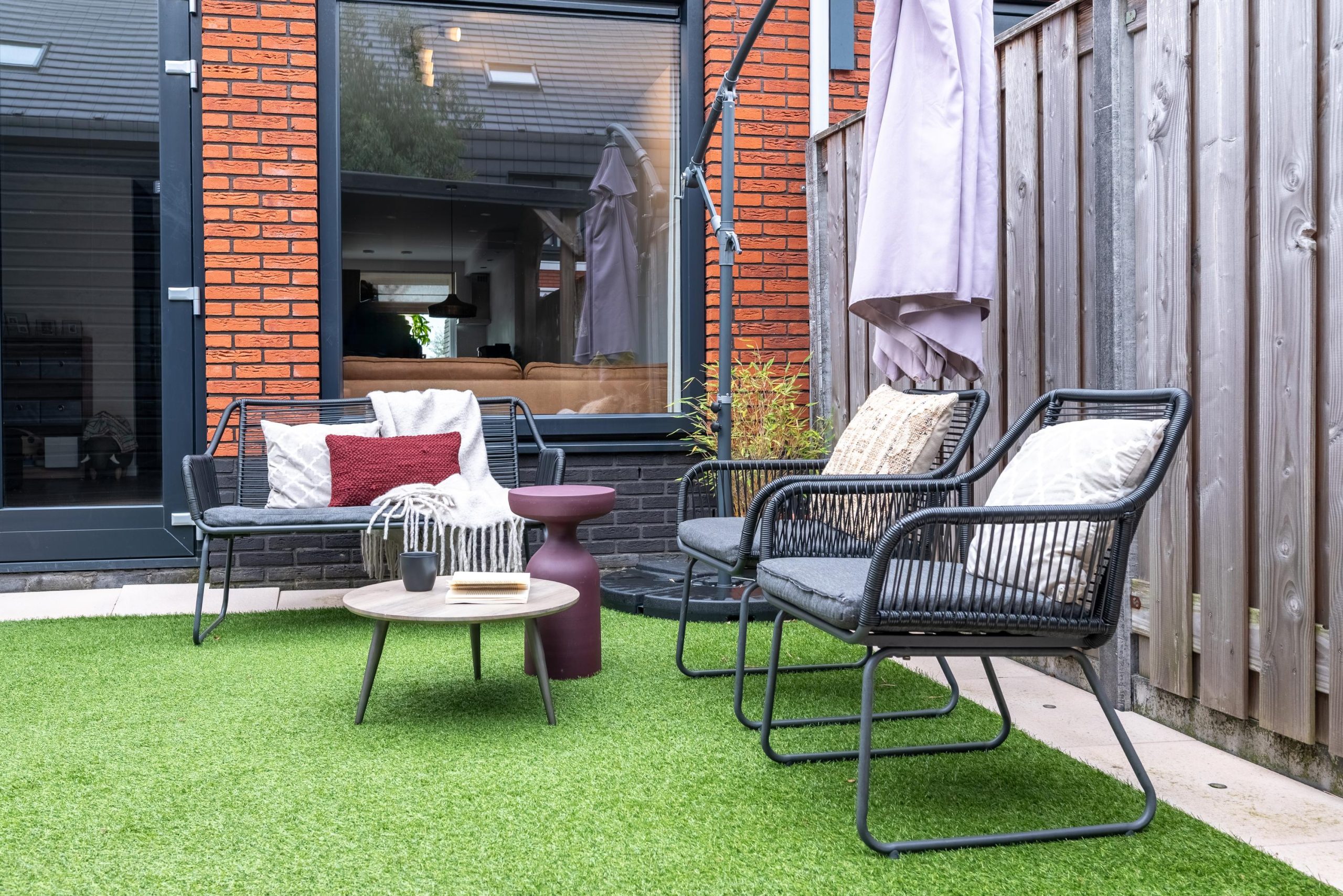 In de tuin geniet je van de middag- en avondzon. Achterin bevindt zich een overkapping met berging. Hier kun je niet alleen fietsen en tuingereedschap kwijt, maar ook een knusse loungehoek creëren die beschutting biedt op warmere of juist regenachtige dagen. Een heerlijke plek waar binnen en buiten naadloos in elkaar overlopen.