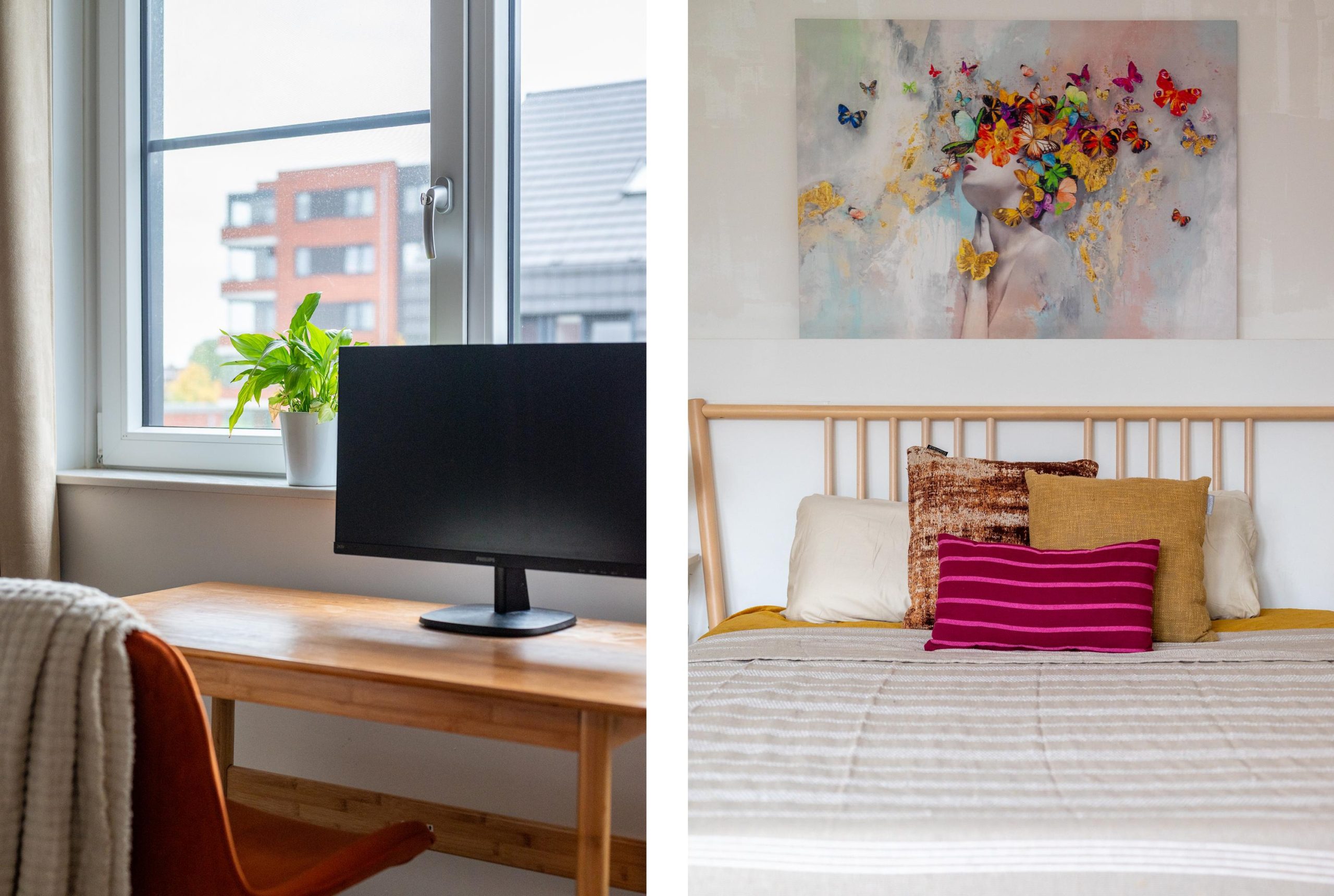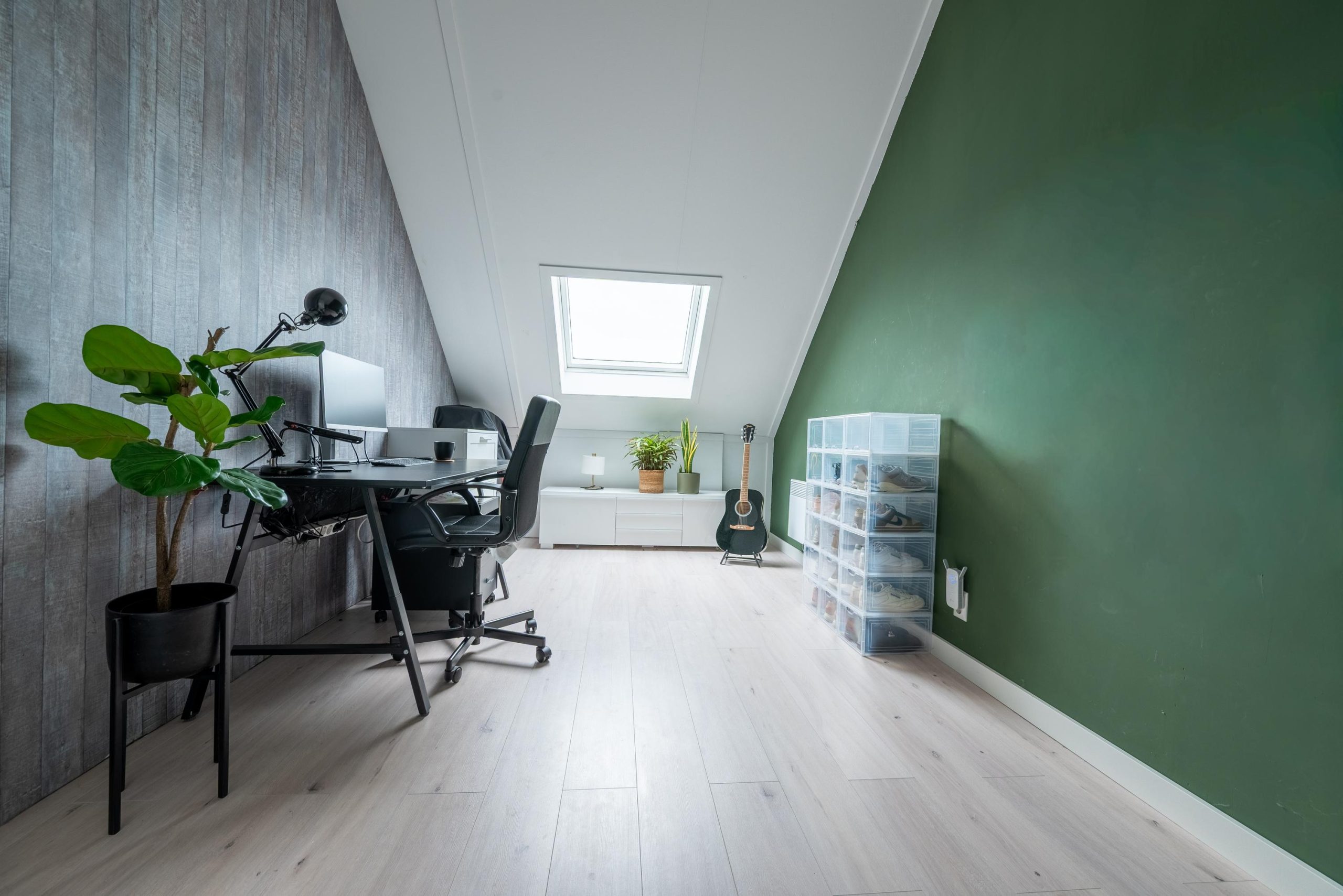 Op de eerste etage zijn twee royale slaapkamers te vinden, waarvan één extra ruim, door het samenvoegen van twee kamers. Ook bevindt zich op deze etage een moderne badkamer met inloopdouche én ligbad. De tweede etage biedt extra ruimte voor een werkplek of logeerkamer. Ook is hier plek voor je wasmachine, is er extra opbergruimte en bevindt zich hier de cv.