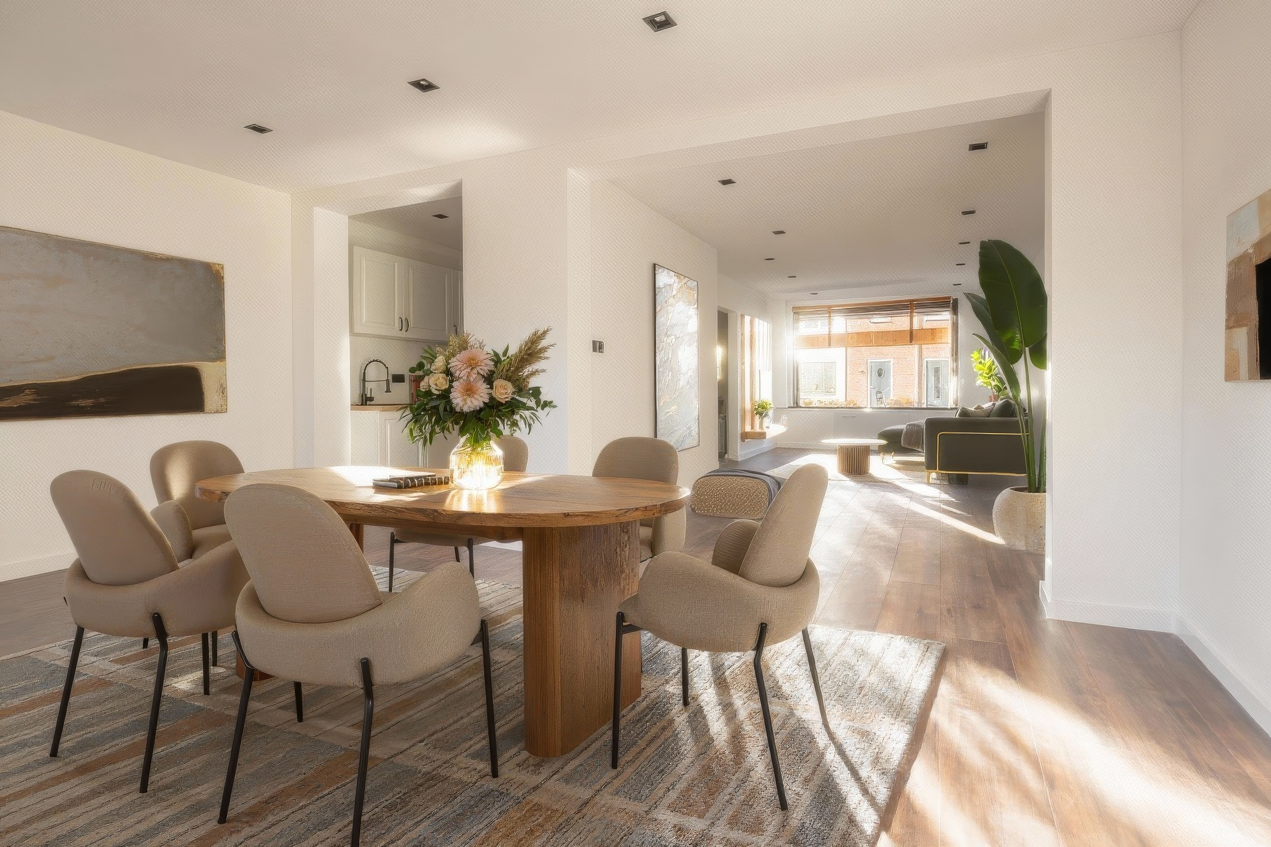 Om de mogelijkheden van de indeling en styling te laten zien is de woning sfeervol gevisualiseerd met AI.