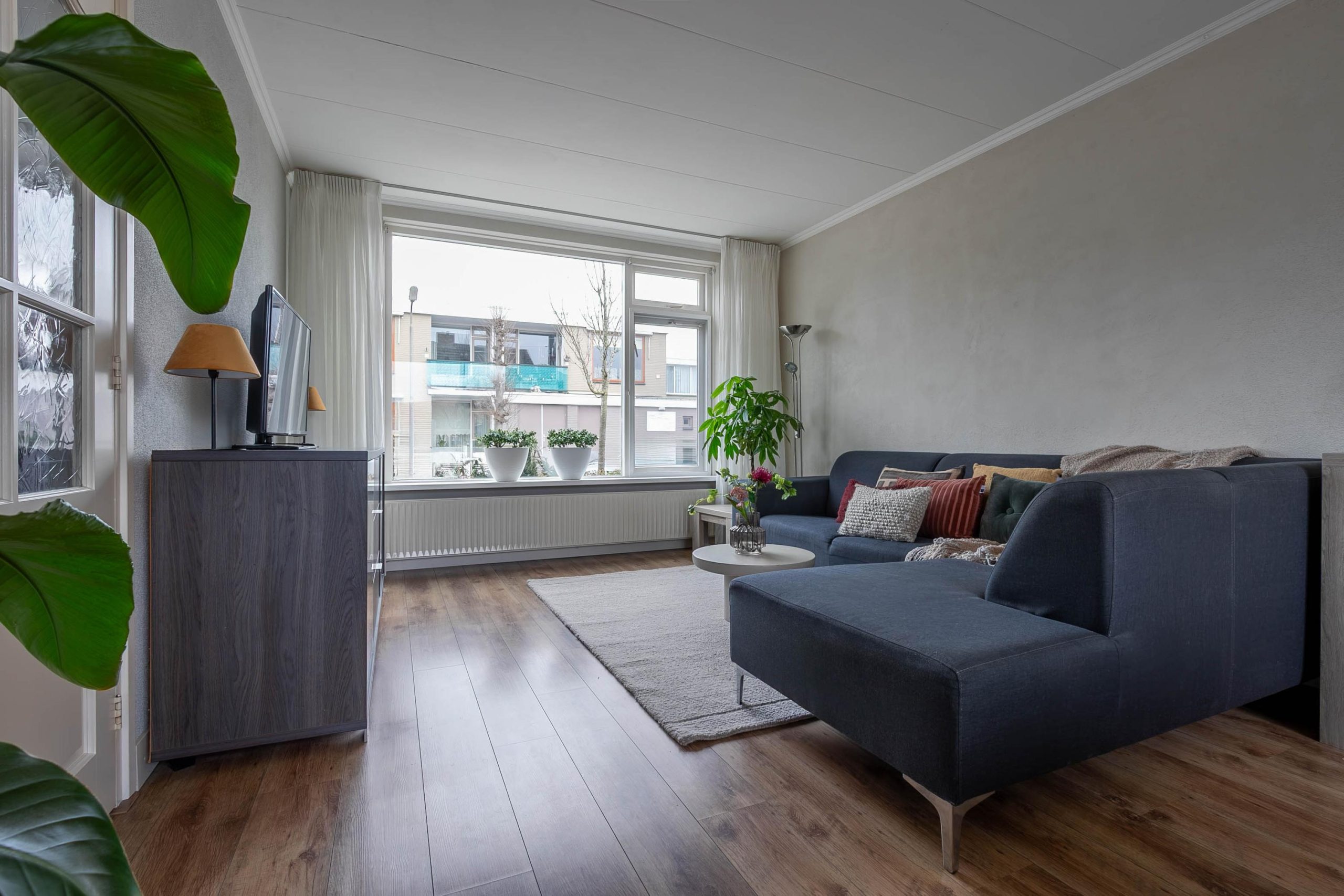 De woonkamer is een frisse leefruimte met genoeg plek voor een ruime, comfortabele bank. Hier kun je uren Netflixen en opgaan in de spannendste series. Trek gekregen? De woonkamer staat in directe verbinding met de half-open keuken. Hier maak je heerlijke borrelhapjes, terwijl de gasten die je uitgenodigd had voor de filmavond je op de hoogte houden van alles wat er zich op het scherm afspeelt. Zo hoef je nooit iets te missen.
