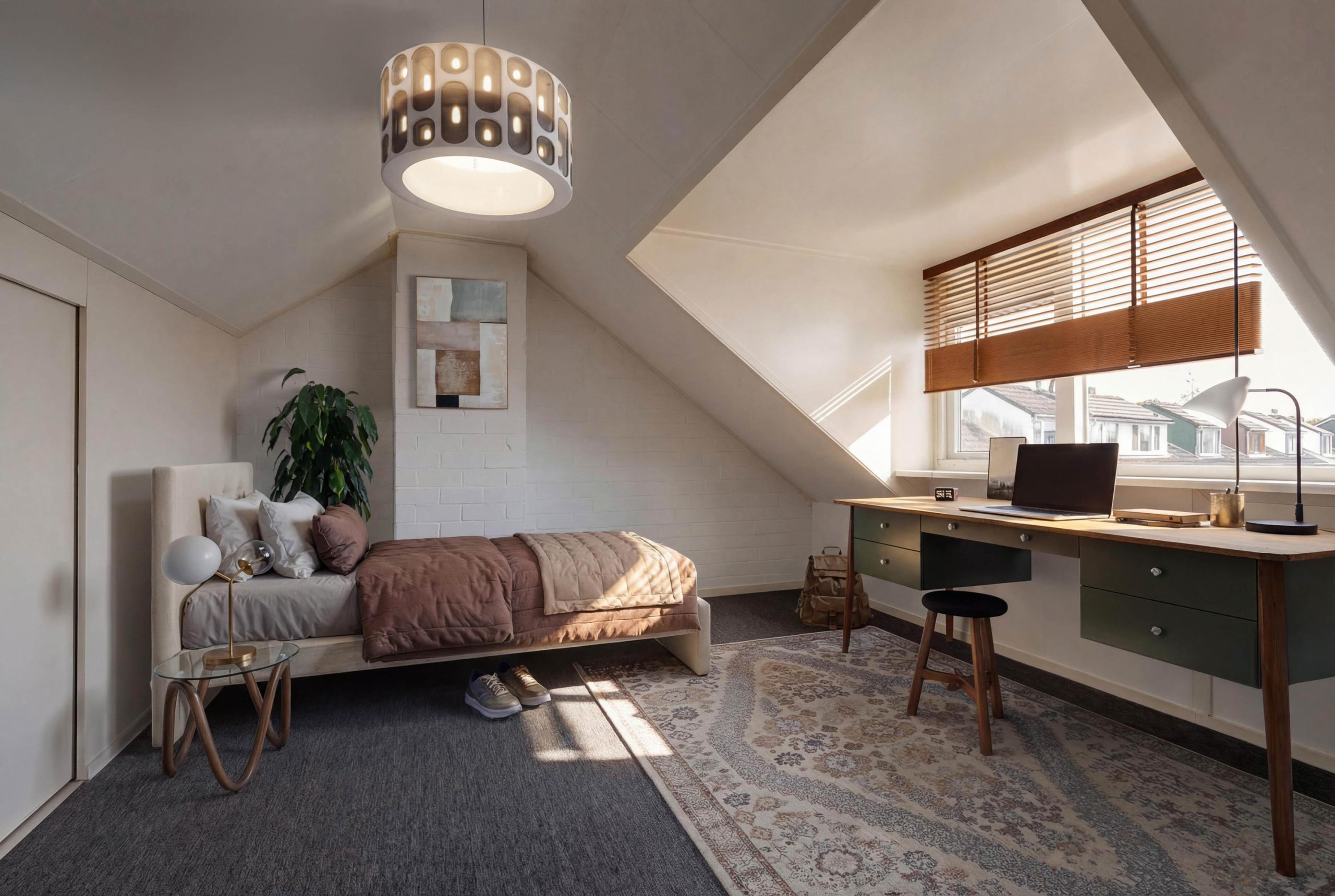 Als de filmavond op zijn einde loopt, is het tijd om naar boven te gaan. Eén van je gasten blijft slapen. Terwijl jij tot rust komt in je eigen slaapkamer, slaapt je logé in de kamer ernaast. Naast deze kamers zijn er nog twee slaapkamers te vinden. Deze kamers zijn in de fotopresentatie digitaal ingericht, om te laten zien wat de mogelijkheden zijn. Creëer jij hier jouw ideale thuiswerkplek, hobbykamer of wie weet in de toekomst wel een kinderkamer? Volop mogelijkheden!