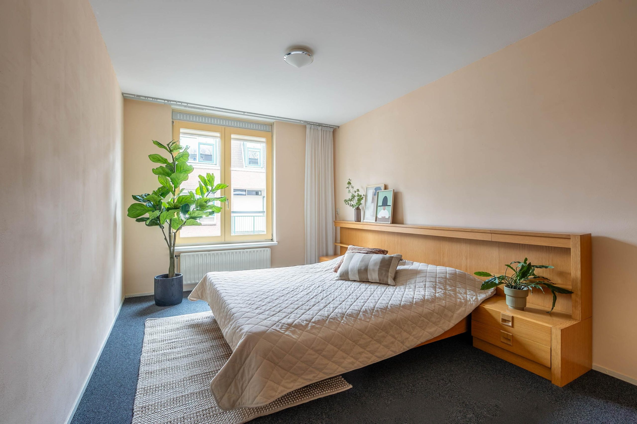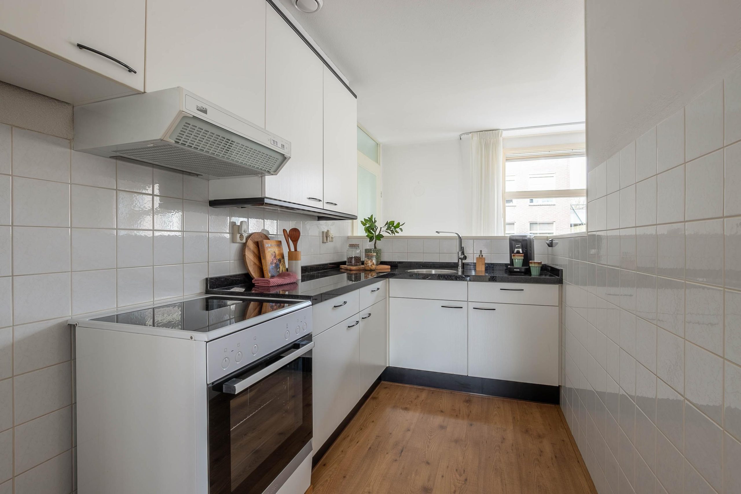Je fiets krijgt een plek in de berging, de was verdwijnt netjes uit het zicht in de wasruimte en zodra de deur achter je dichtvalt, voel je het meteen: hier kom je graag thuis. Aan de eettafel begint de dag rustig met een kop koffie, terwijl het ook juist zo’n plek is waar je aan het eind van de avond nog even blijft zitten. De keuken sluit daar mooi op aan; een plek waar koken, bijpraten en samen zijn vanzelf in elkaar overlopen. Ook de woonkamer voelt als een ruimte waar het leven zich afspeelt. Een plek om neer te ploffen na een lange dag, maar net zo goed om samen te komen met vrienden of familie. Met twee verrassend ruime slaapkamers biedt dit appartement bovendien alle ruimte om het wonen op jouw manier in te vullen. De ene kamer heeft daarbij extra veel bergruimte, ideaal om alles netjes uit het zicht te houden. En met energielabel A woon je hier niet alleen met sfeer, maar ook met comfort. Vanuit de woonkamer loop je zo het balkon op. Een plek waar je heerlijk overdekt zit en op elk moment van de dag even naar buiten stapt. Met de stadswal om de hoek en de kerk in zicht; precies dat uitzicht dat wonen in Gorinchem extra charme geeft.