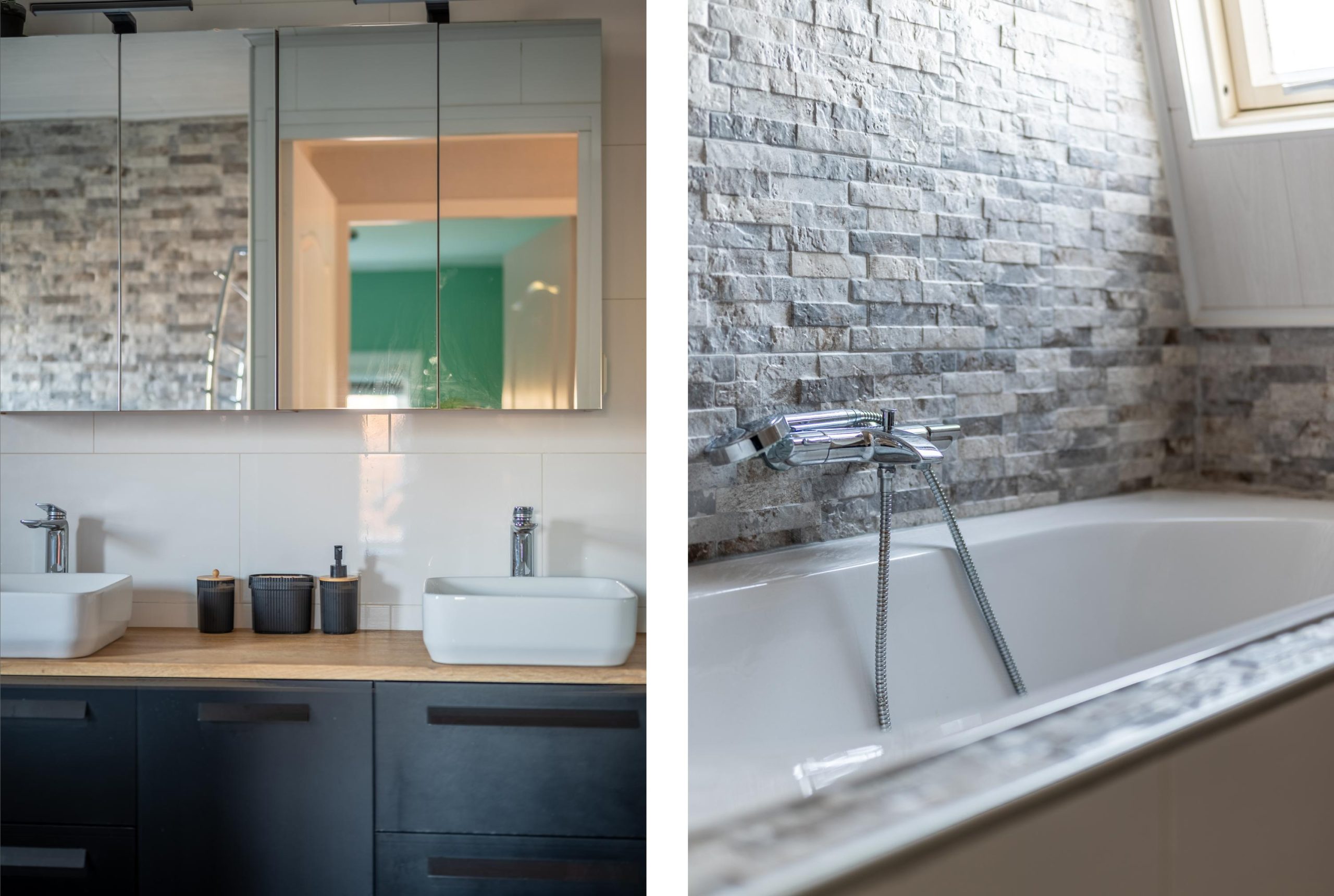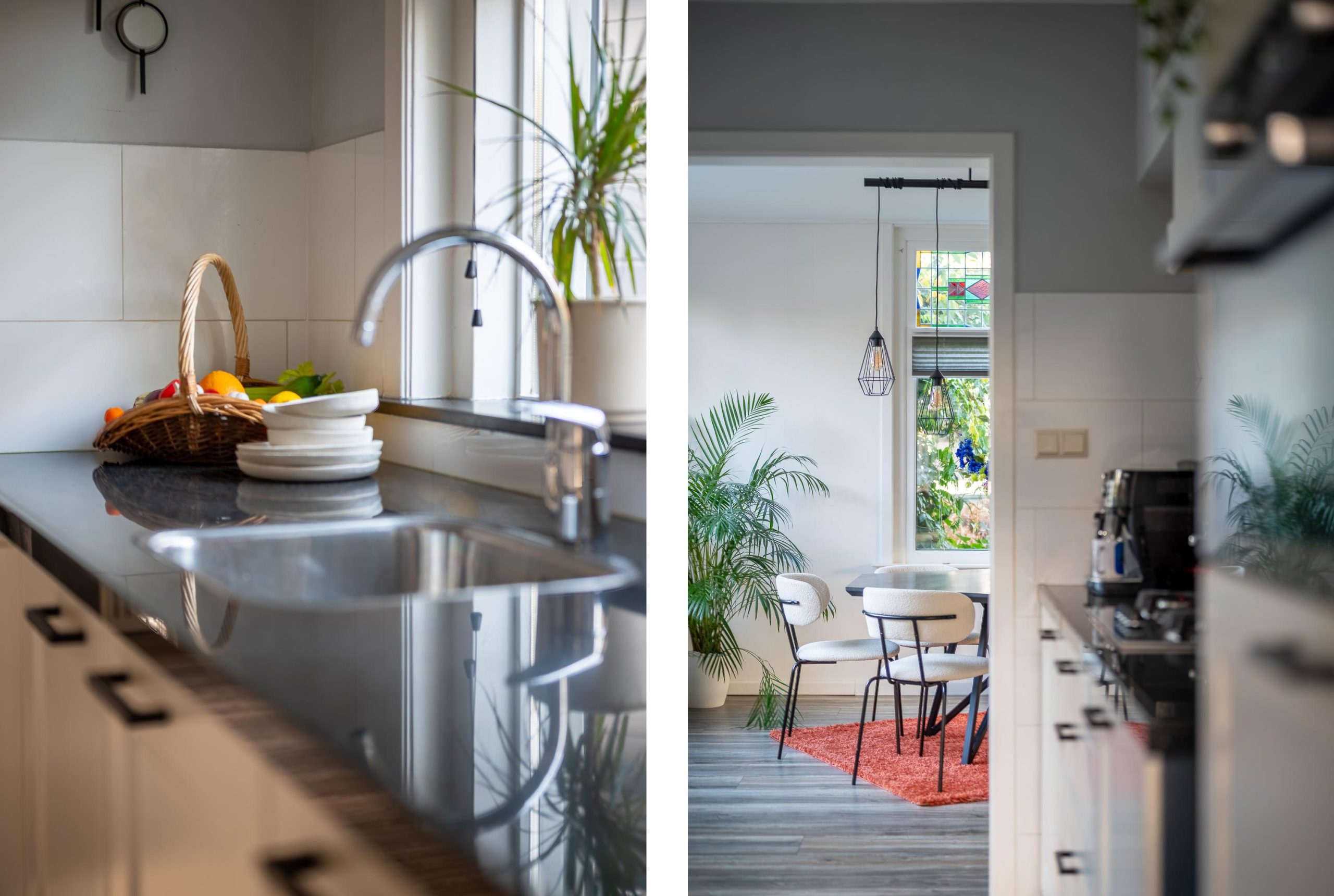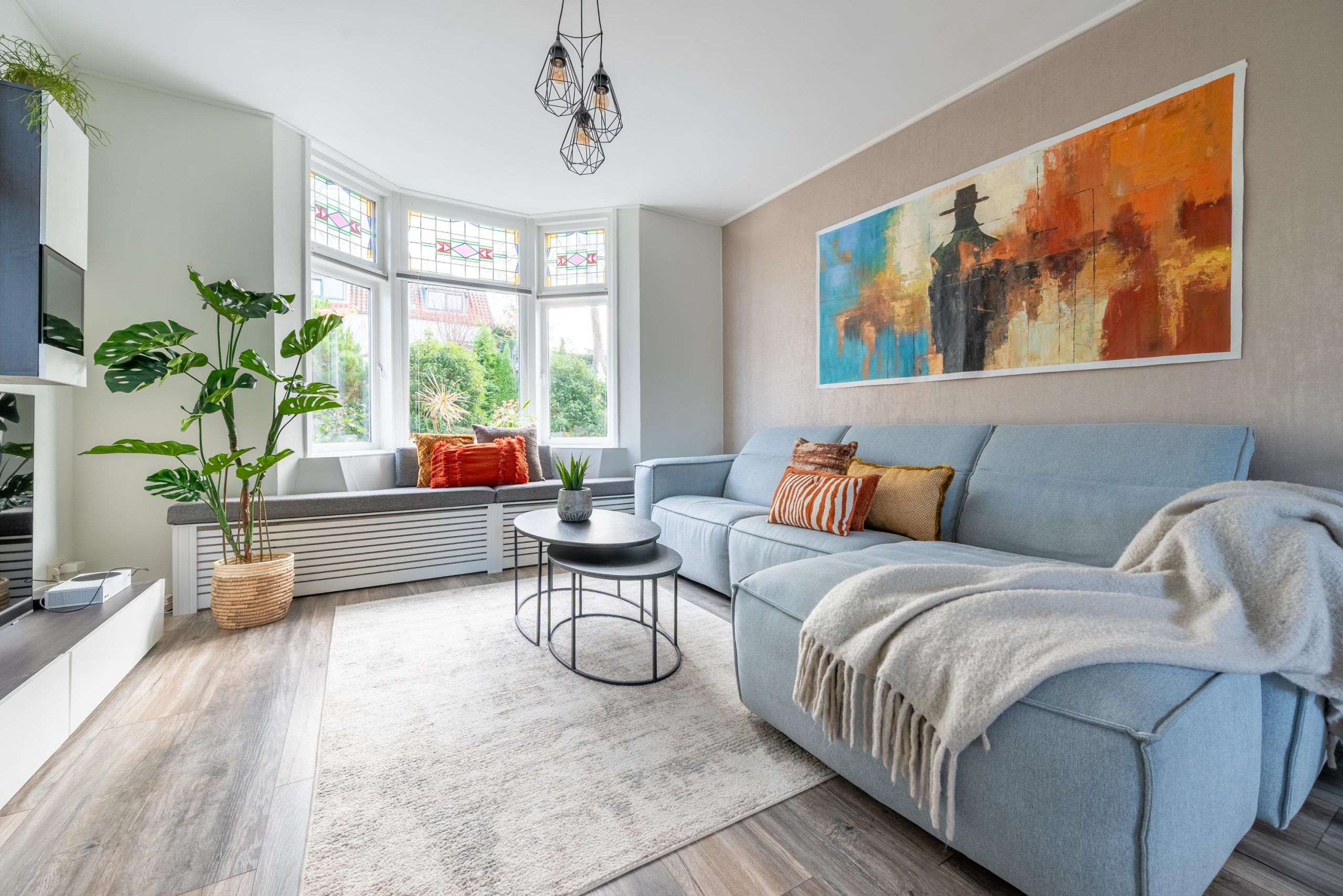 De woonkamer ademt jaren ’30-charme, maar is met zorg gemoderniseerd. In de erker is het heerlijk zitten met een kop koffie, terwijl de elektrische haard zorgt voor extra warmte en gezelligheid. De lichtbruine laminaatvloer vormt een rustige basis voor het geheel. De landelijke keuken in zachte beige tinten is ruim en praktisch, met een granieten werkblad en alle benodigde inbouwapparatuur zoals o.a. een gaskookplaat, combi-oven, vaatwasser, koelkast en aparte vriezer. Vanuit hier kijk je fijn uit op de achtertuin. Op de eerste verdieping ligt de masterbedroom, een lichte en comfortabele ruimte met twee inloopkasten. Daarnaast zijn er twee (werk)kamers. Via de overloop is een airco aangesloten die de verdieping van extra comfort voorziet. Ook is er toegang tot de vliering voor extra bergruimte. De badkamer is luxe uitgevoerd met een dubbele inloopdouche, een stijlvol dubbel wastafelmeubel en een ligbad.