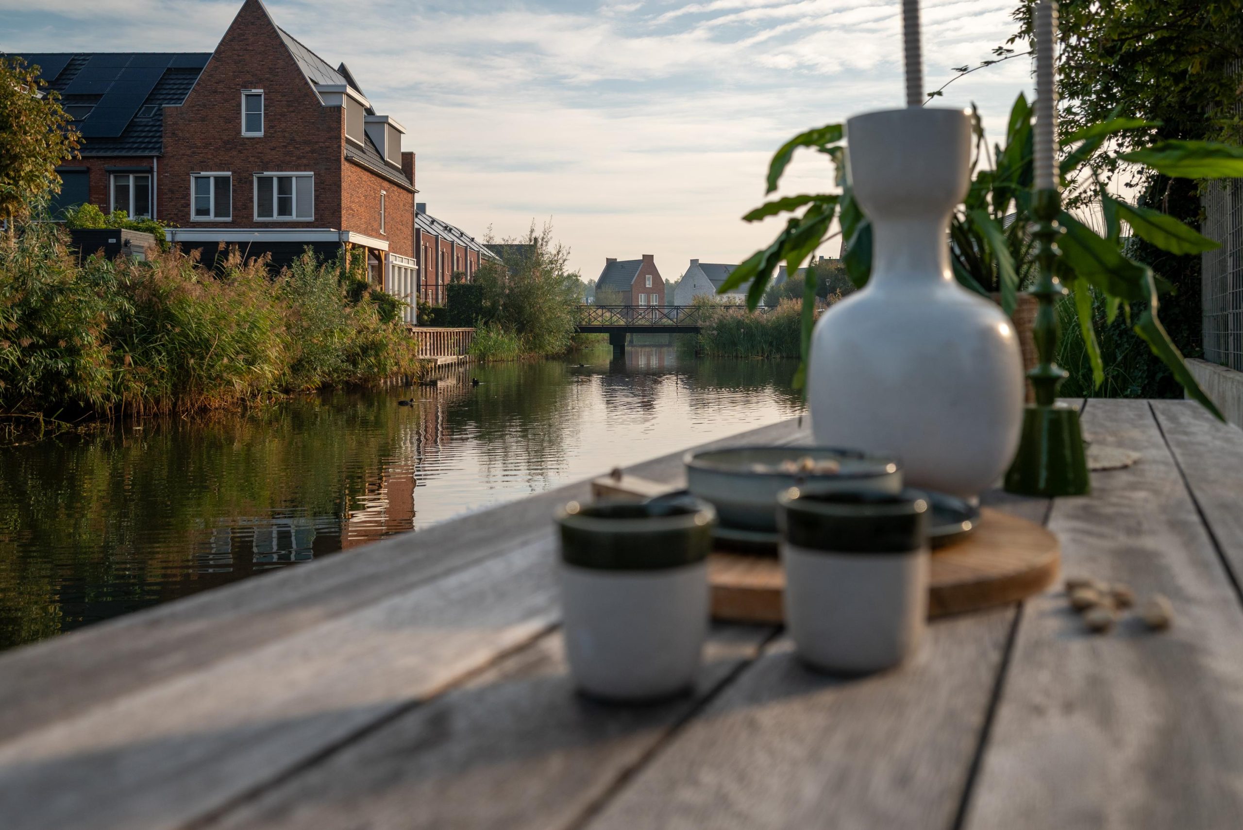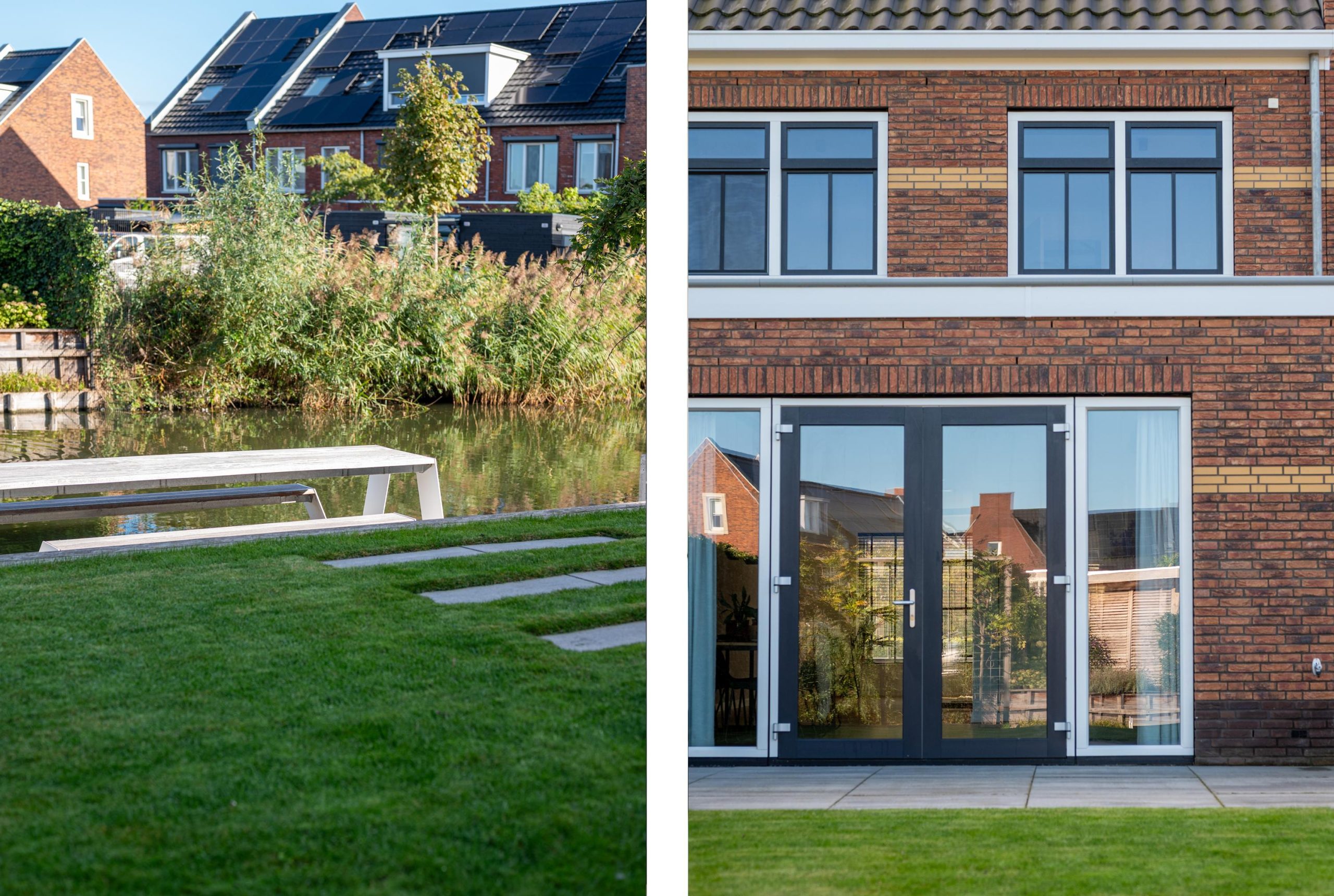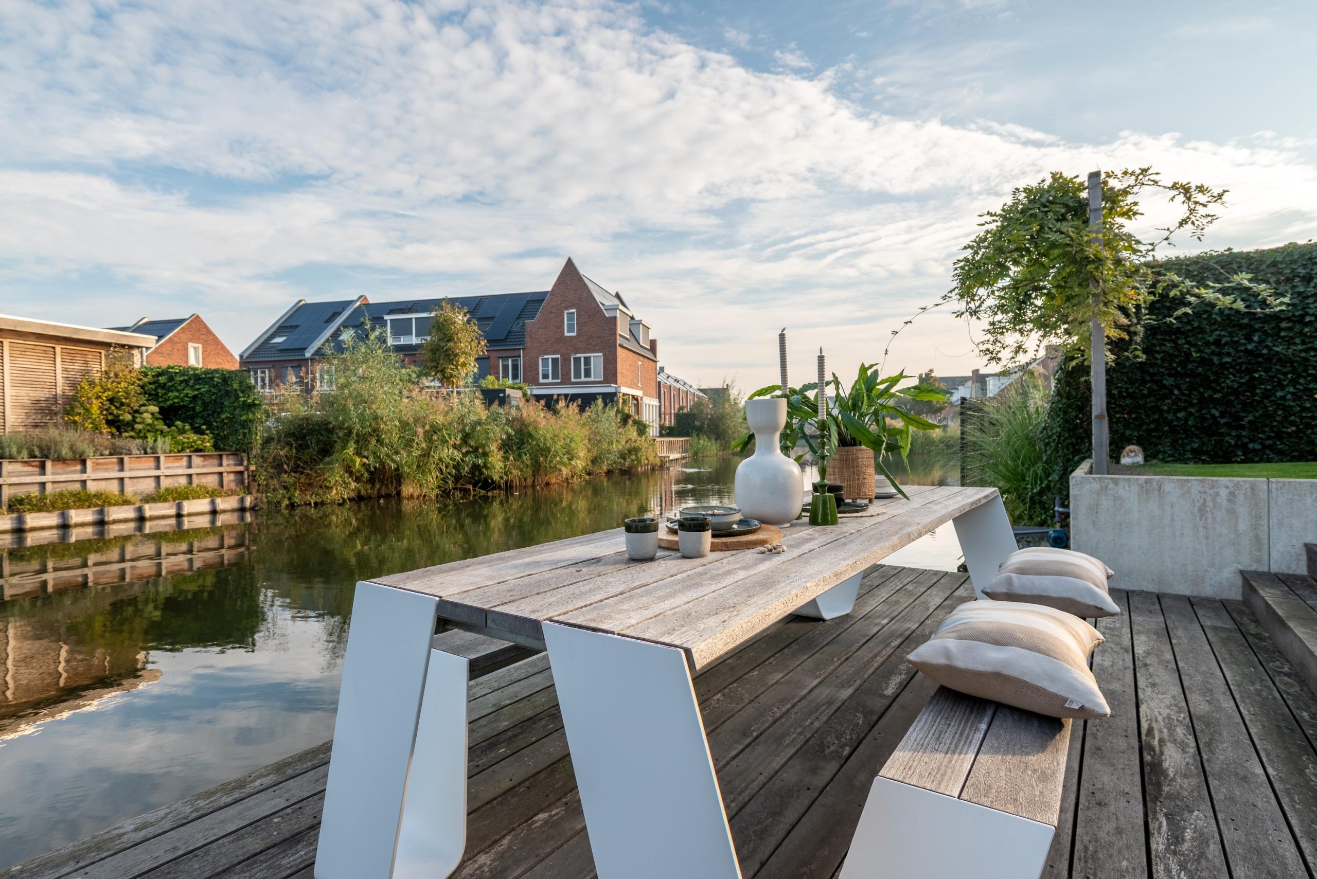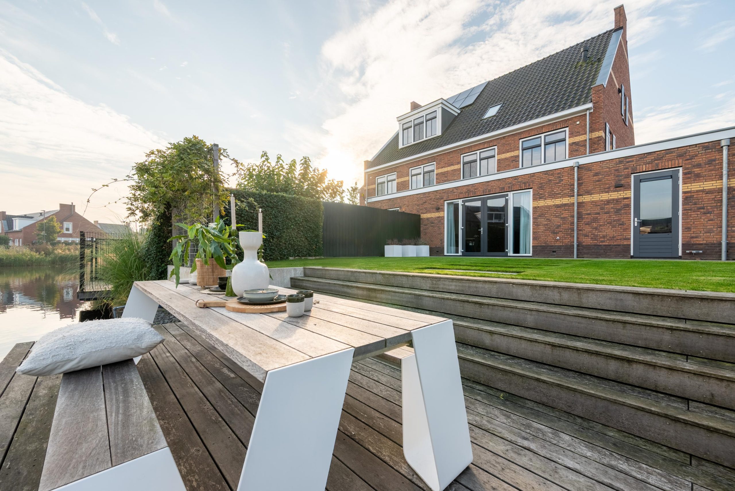 En dan de achtertuin: direct gelegen aan het water, ruim opgezet en modern ingericht. Hier geniet je van de vrijheid en rust. ’s Ochtends met een kop koffie in de zon, ’s avonds tijdens een lange zomeravond buiten.