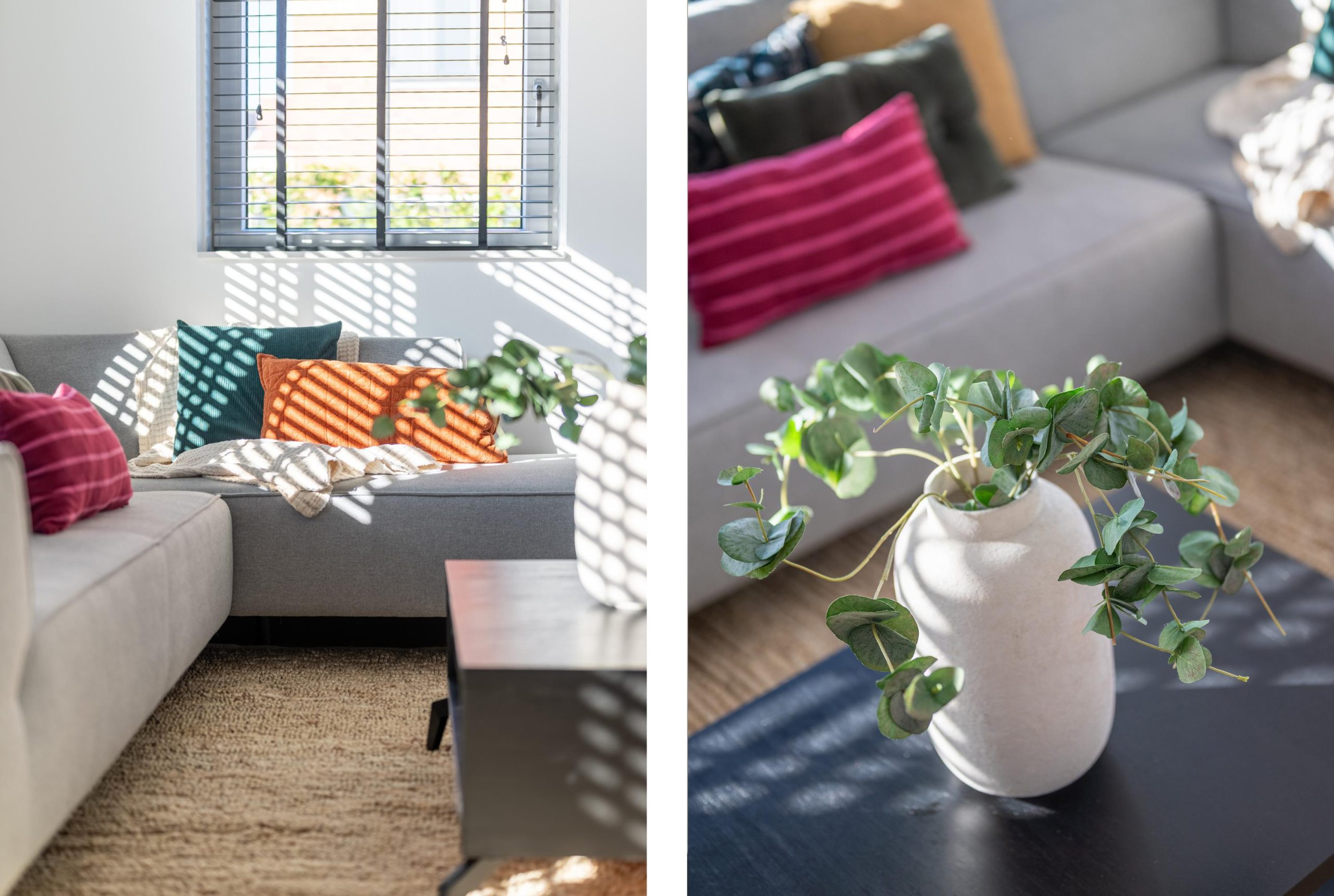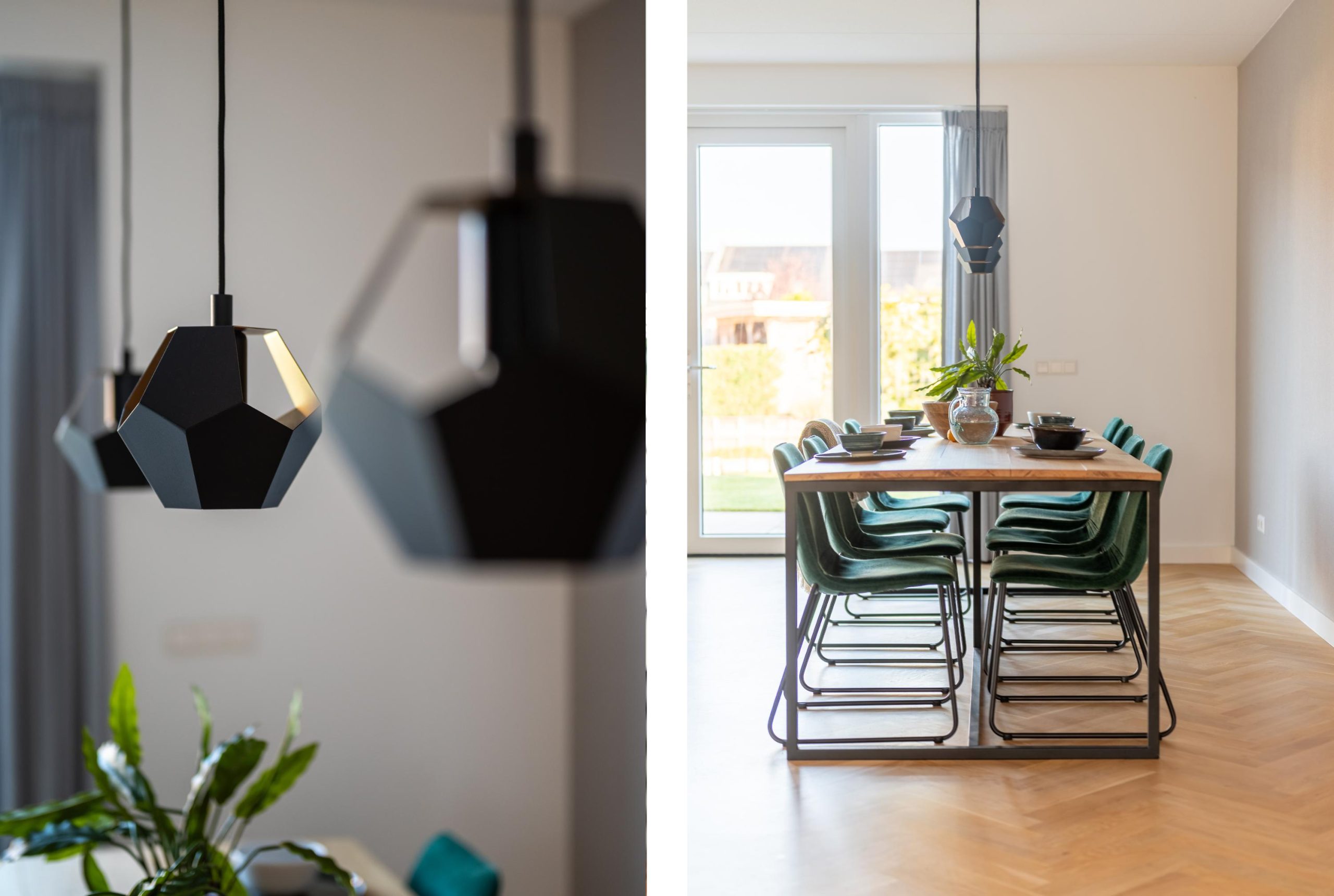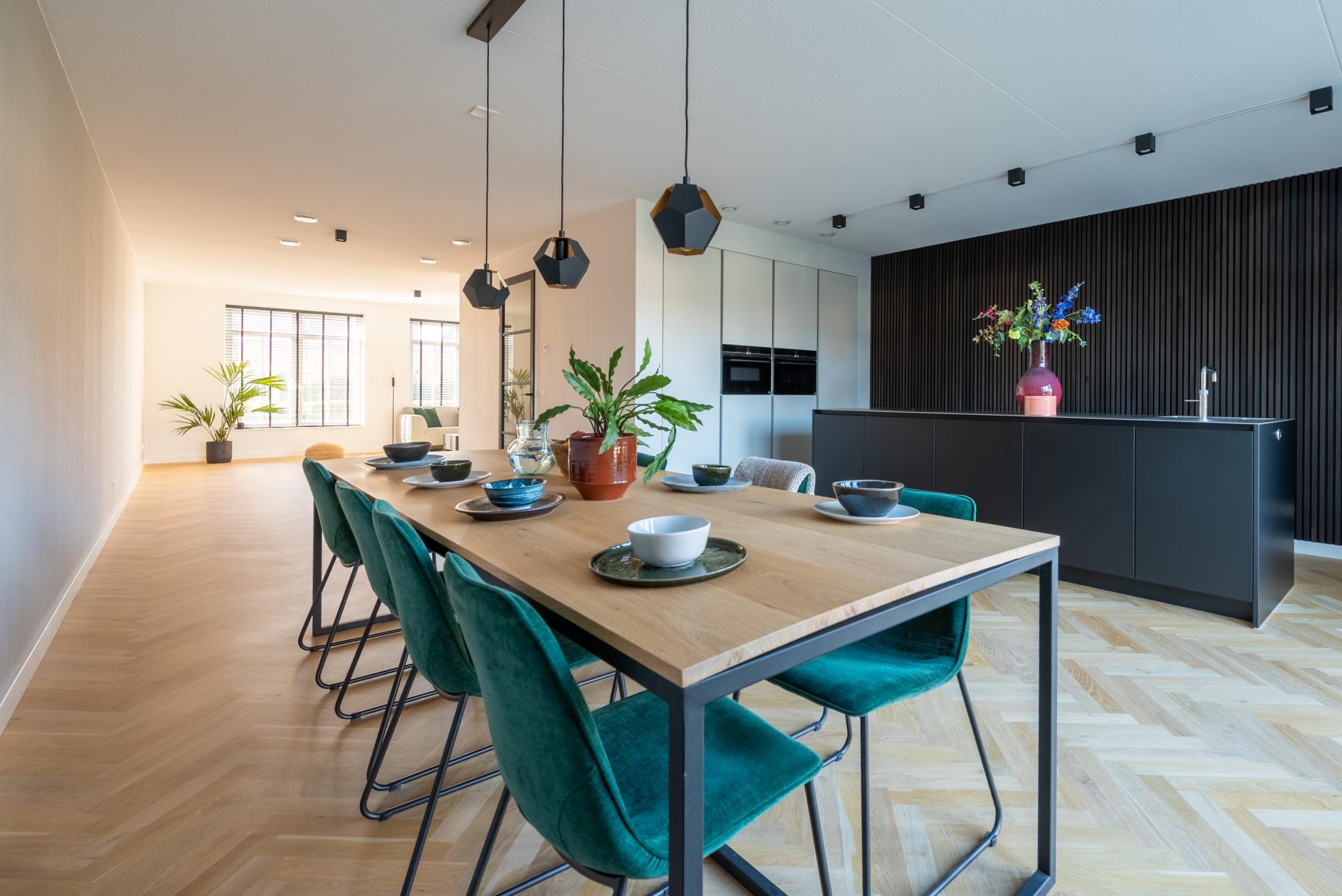 Binnen wacht een woonkamer die je meteen omarmt. Het zonnetje valt door de grote ramen naar binnen en geeft de ruimte een warme, uitnodigende sfeer. Er is volop plek voor een fijne zithoek waar je tot rust komt en voor een lange tafel waar het gezin samenkomt of vrienden aanschuiven voor een gezellige avond.