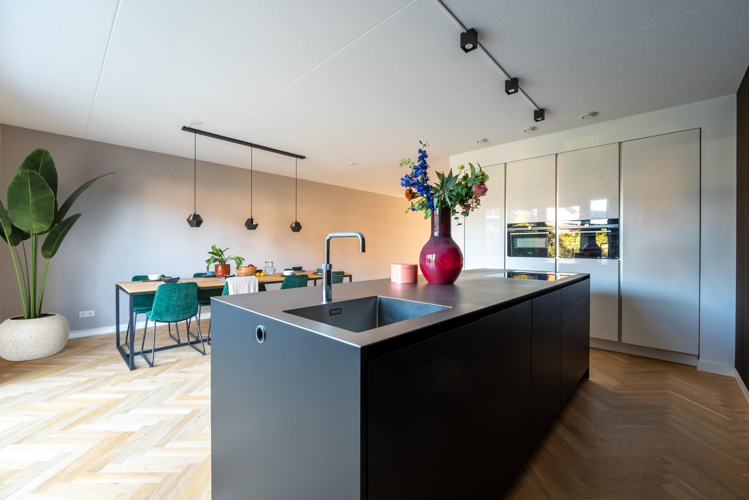 De woonkeuken is het kloppend hart van het huis. Uitgevoerd door Poggenpohl en voorzien van alle luxe die je kunt wensen, vormt het kook- en spoeleiland het middelpunt. Hier kook je met plezier, terwijl je contact houdt met iedereen om je heen. Gasten schuiven makkelijk aan voor een drankje, kinderen maken huiswerk aan tafel, koken en samenzijn gaan hier moeiteloos samen.