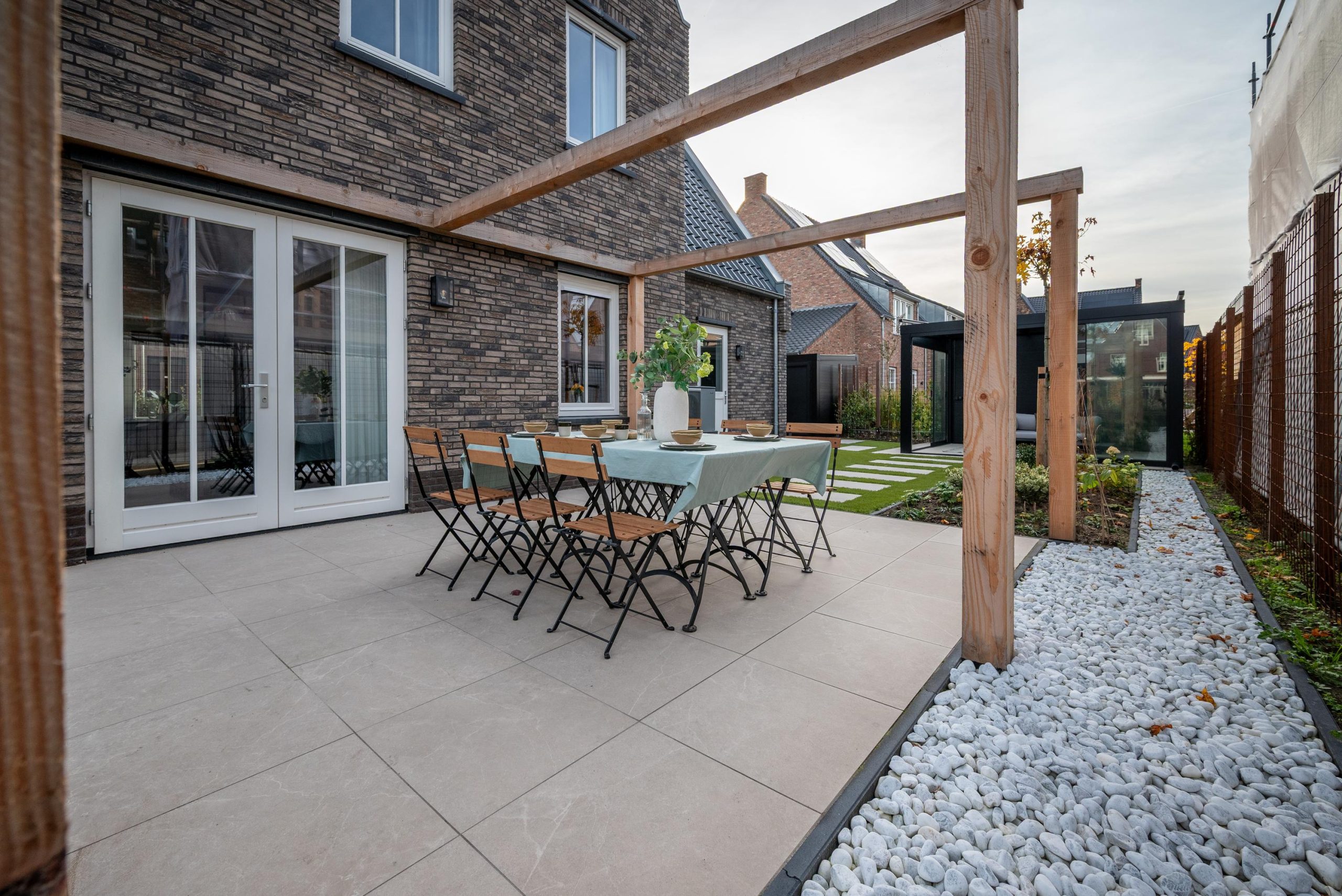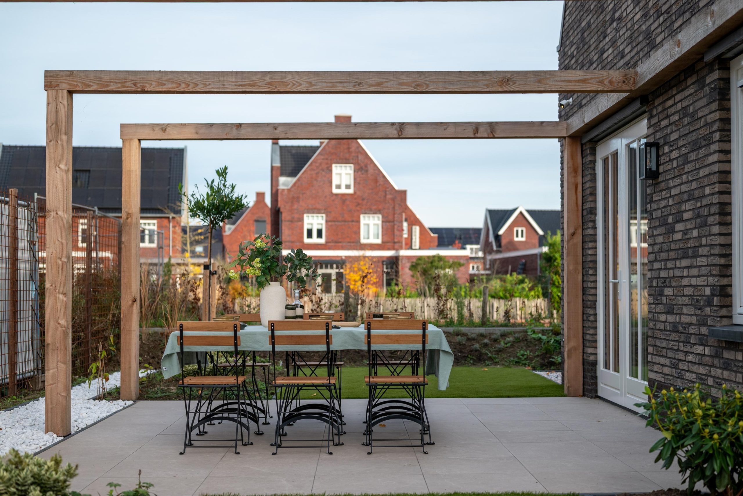 Buiten is het minstens zo verzorgd als binnen. De tuin is volledig ontworpen en net nieuw aangelegd, met aandacht voor groen, zitplekken, comfort én een stijlvolle pergola die het terras extra sfeer geeft. In het tuinhuis zit je het hele jaar door lekker buiten; zomers onder de overkapping en in het najaar achter de glazen schuifpui. Verder is de tuin uitgerust met een berging, een handige fietsencarport en een poort naar de oprit, waar ruimte genoeg is voor zeker twee auto’s.