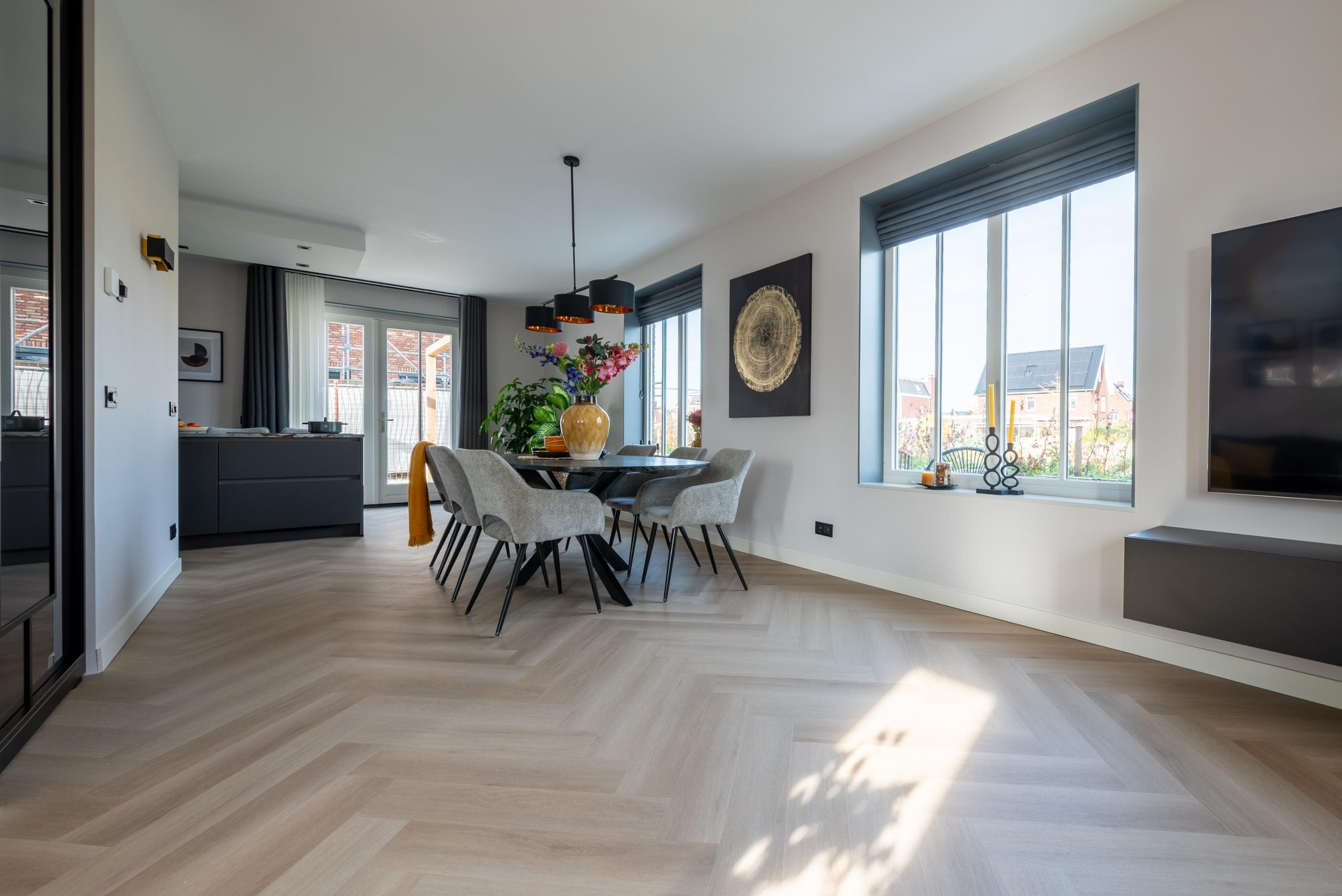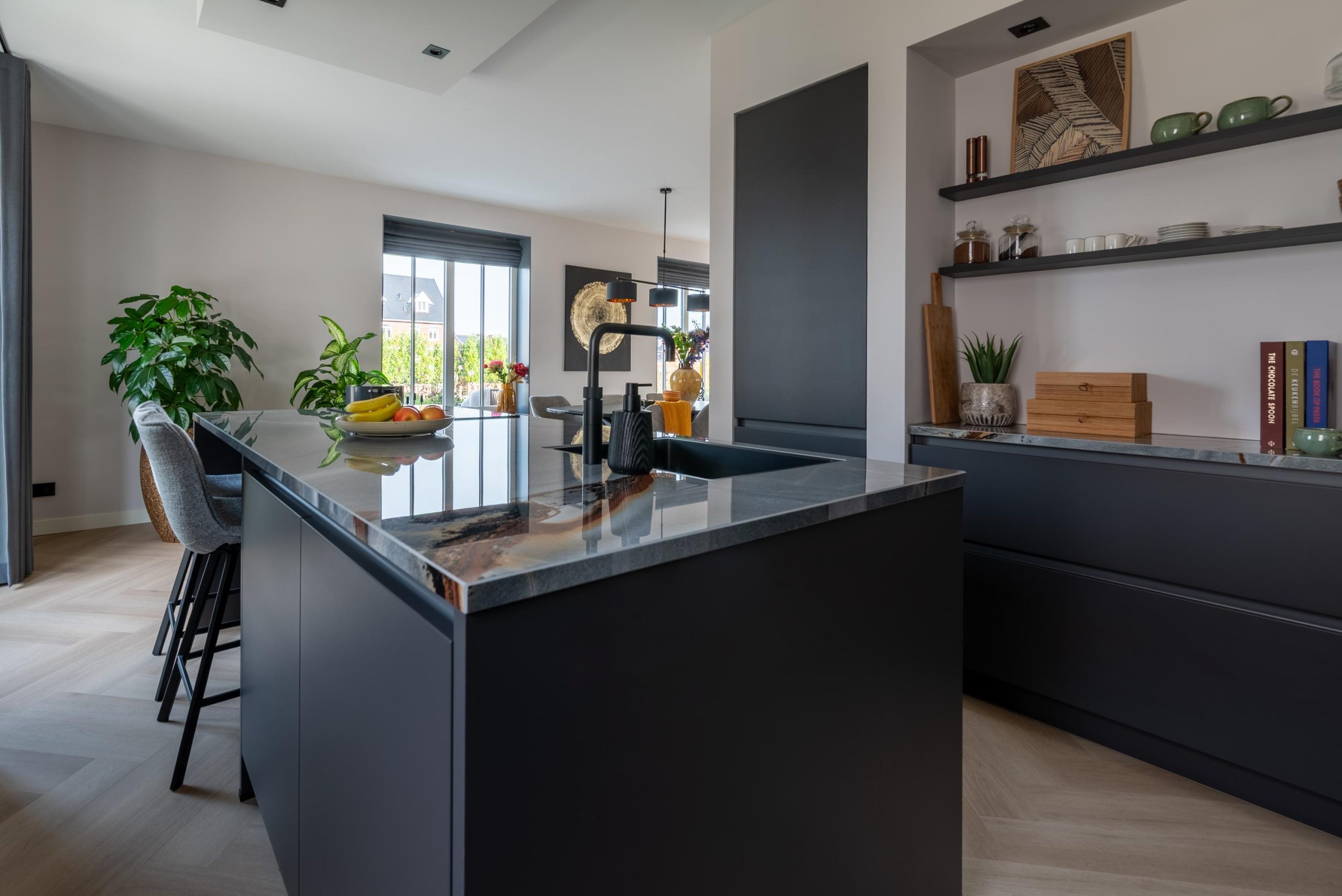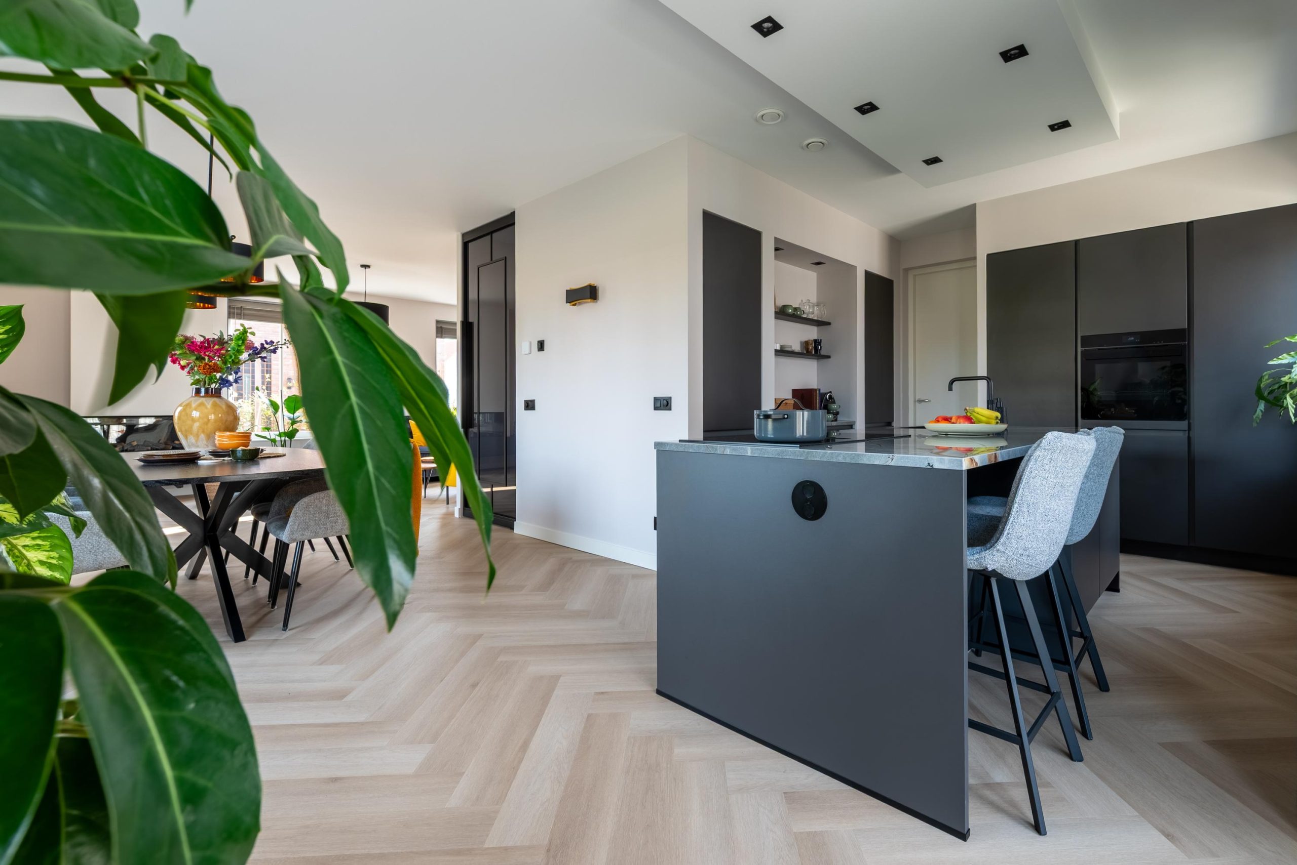 Binnen word je verwelkomd door een eyecatcher van een stalen deur en merk je meteen hoeveel aandacht er in het huis is gestoken. Over alles is nagedacht: maatwerk kasten, strakke lijnen en een rustige, warme stijl die in iedere ruimte terugkomt en jou de ideale basis geven om hier je thuis van te maken. De begane grond is helemaal compleet met openslaande deuren naar de tuin, een moderne keuken met kookeiland, de bijkeuken en de extra (slaap)kamer met badkamer. Deze ruimtes maken het huis niet alleen luxe, maar ook onwijs praktisch in het dagelijks leven.