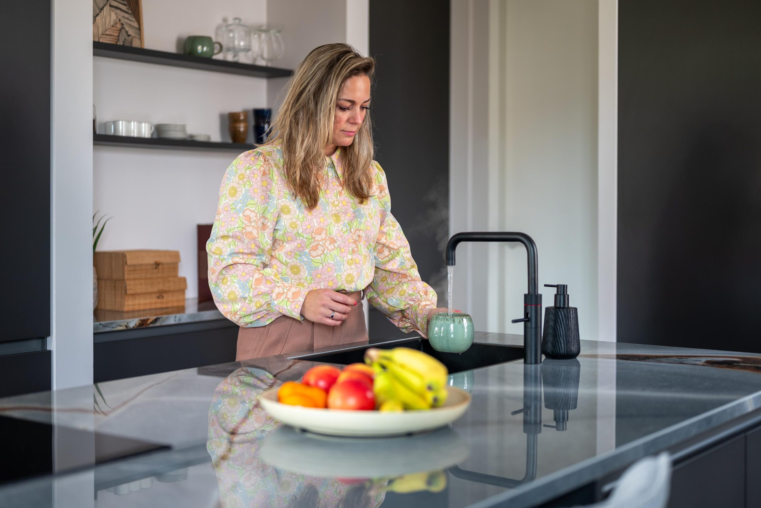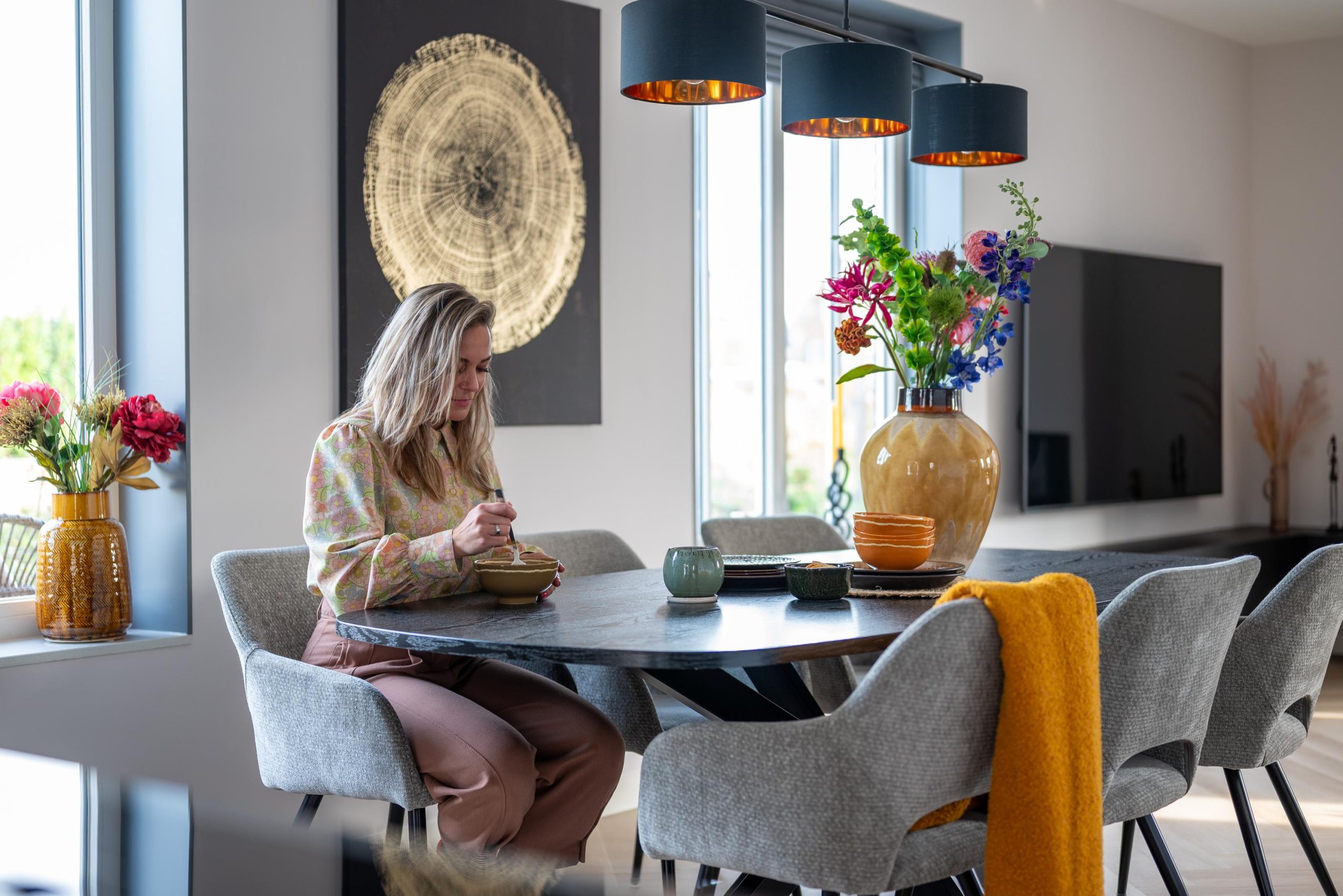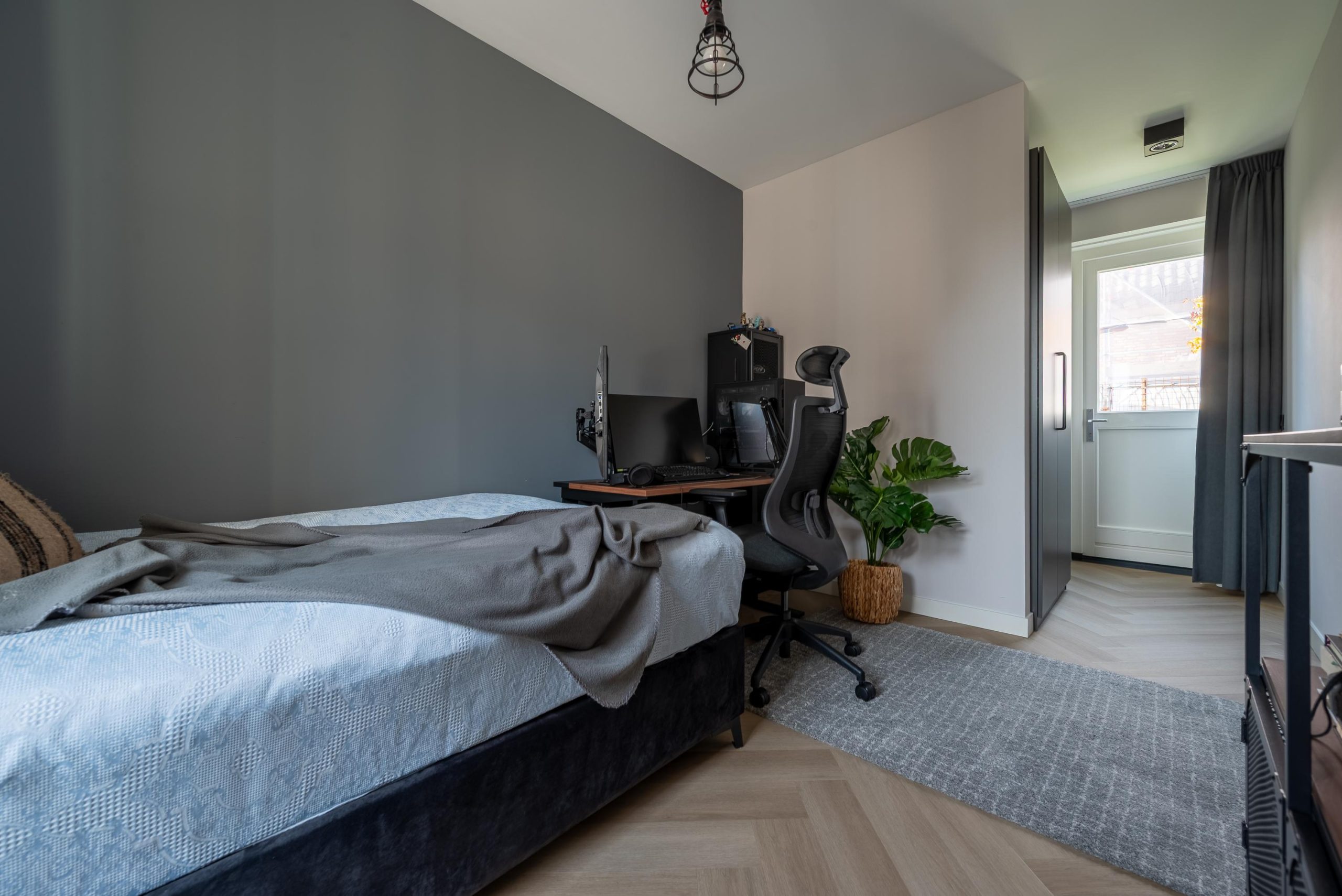 Binnen word je verwelkomd door een eyecatcher van een stalen deur en merk je meteen hoeveel aandacht er in het huis is gestoken. Over alles is nagedacht: maatwerk kasten, strakke lijnen en een rustige, warme stijl die in iedere ruimte terugkomt en jou de ideale basis geven om hier je thuis van te maken. De begane grond is helemaal compleet met openslaande deuren naar de tuin, een moderne keuken met kookeiland, de bijkeuken en de extra (slaap)kamer met badkamer. Deze ruimtes maken het huis niet alleen luxe, maar ook onwijs praktisch in het dagelijks leven.
