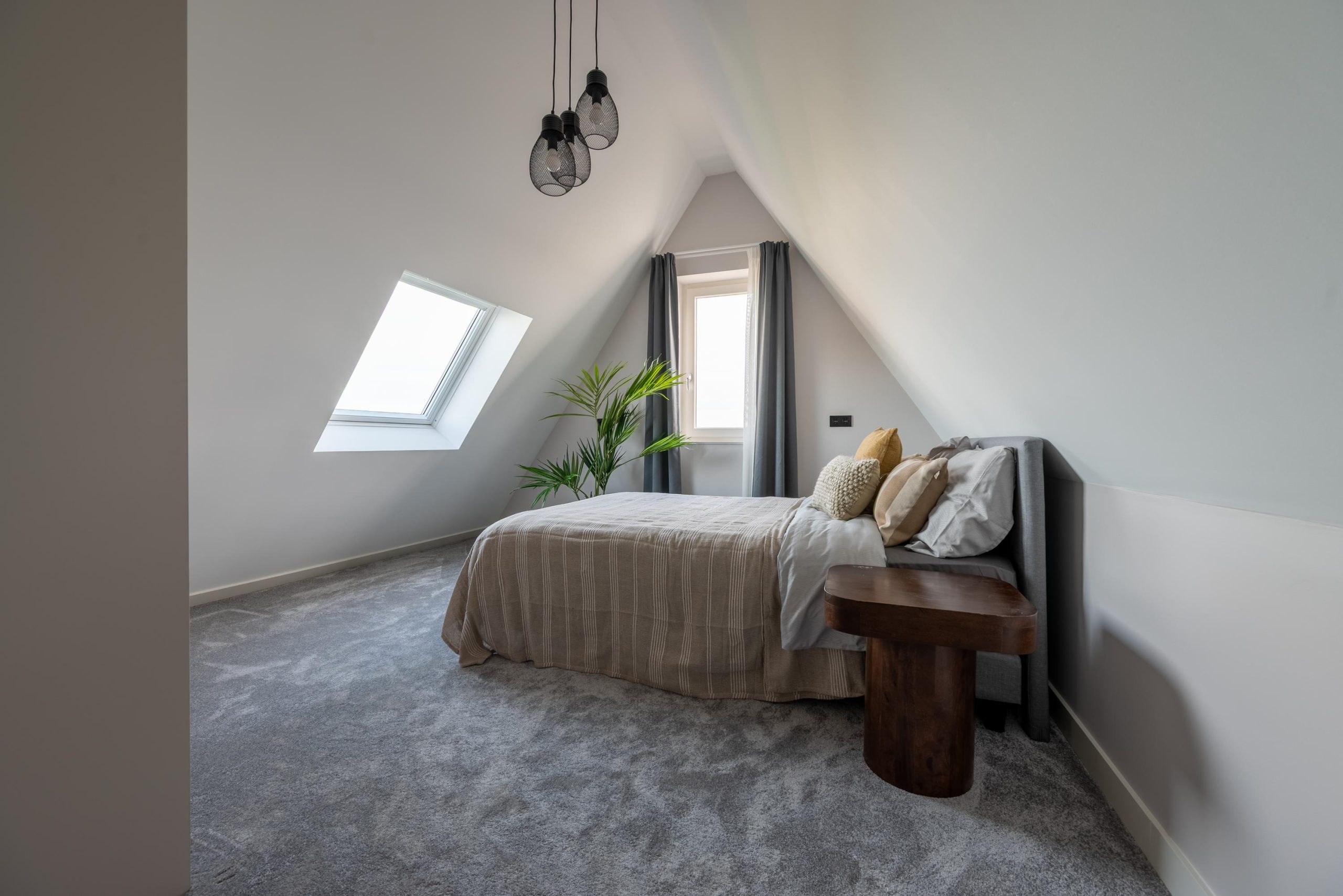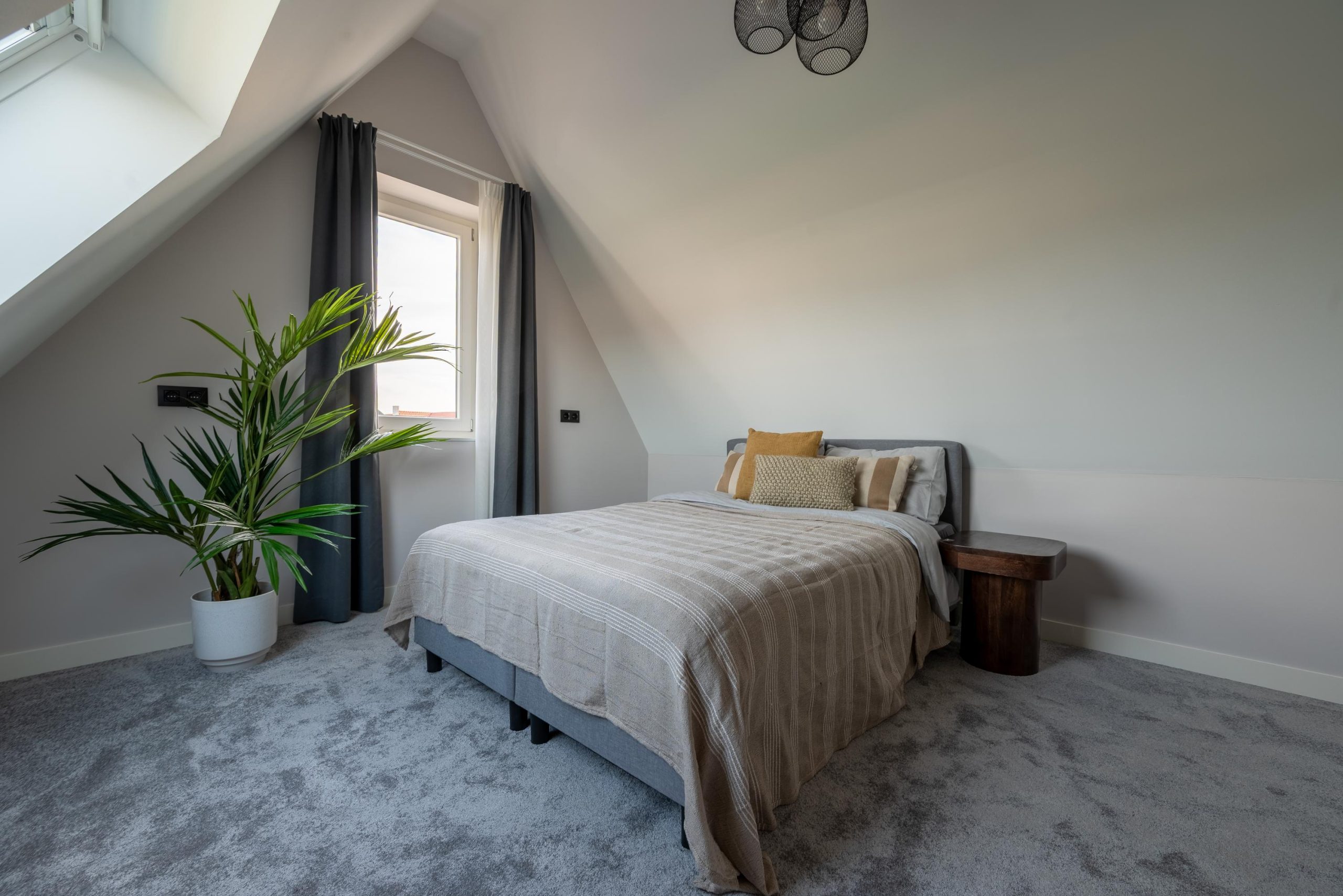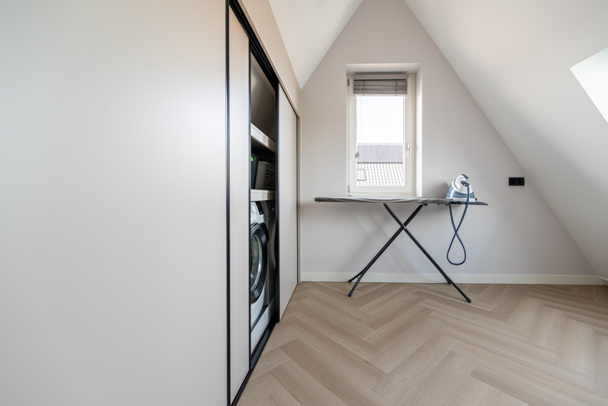 Op de eerste verdieping vind je drie ruime slaapkamers, waarvan twee met een royale walk in closet. Zo is er op de hele verdieping verrassend veel kastruimte en ook nog eens een badkamer die uitnodigt om uitgebreid te ontspannen. De tweede verdieping is een volwaardige extra woonlaag met twee fijne kamers. Eén daarvan is een fijne waskamer: wasmachine, droger en wasgoed zijn hier verdekt, maar praktisch opgesteld. Daarnaast blijft er genoeg ruimte over voor logees, een tienerkamer of een rustige werkplek onder het schuine dak.