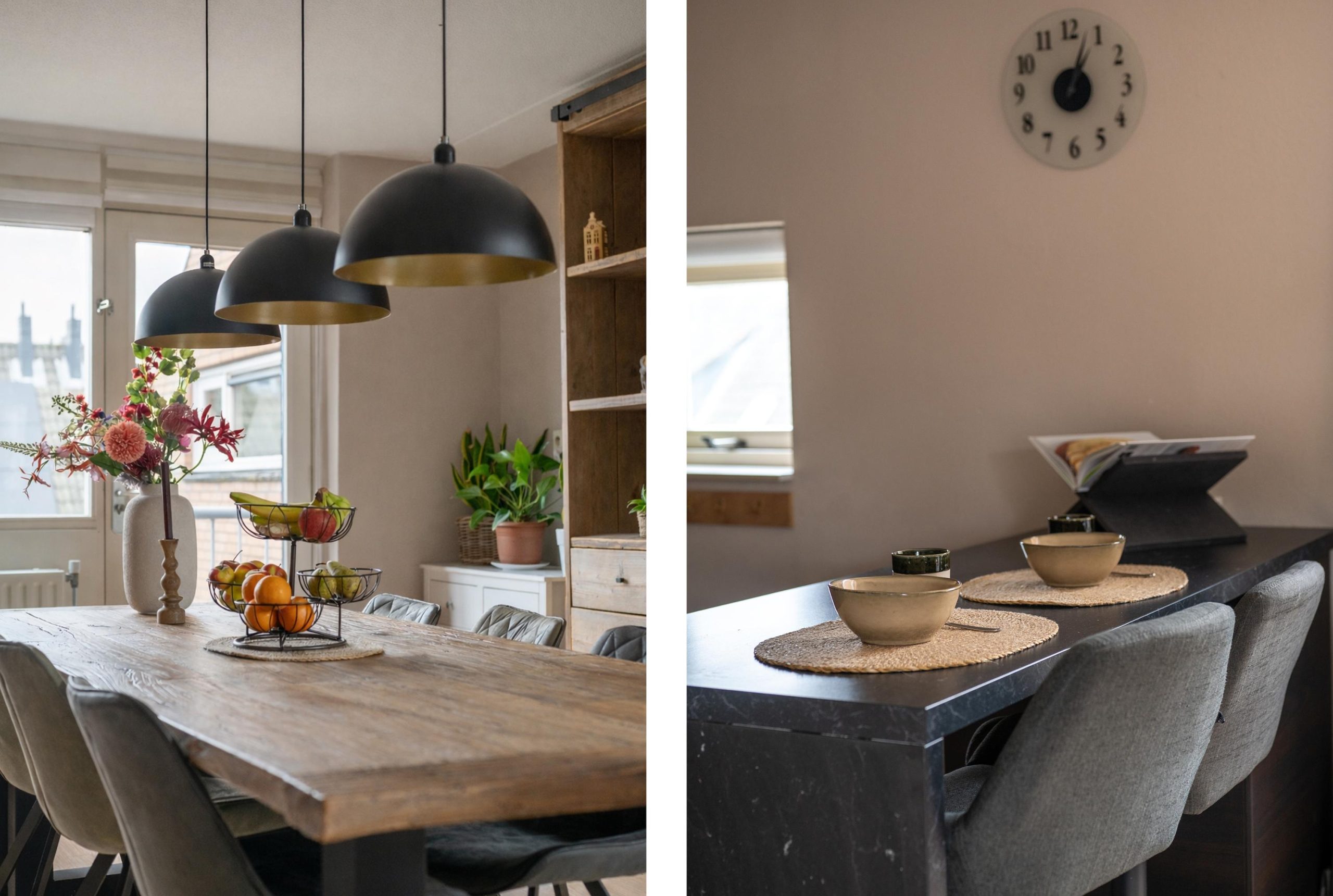 De woonkamer is heerlijk ruim en licht, echt zo’n plek waar de dag vanzelf wat langzamer gaat. Door de grote ramen valt het daglicht mooi naar binnen en voelt de ruimte open en prettig aan. Hier is alle ruimte om samen lang te tafelen, op de bank neer te ploffen of juist even rustig je eigen moment te pakken met een kop koffie. Doordat de keuken in open verbinding staat met de woonkamer, blijf je altijd met elkaar in contact. Terwijl er wordt gekookt, loopt het gesprek gewoon door en schuift iedereen vanzelf aan.