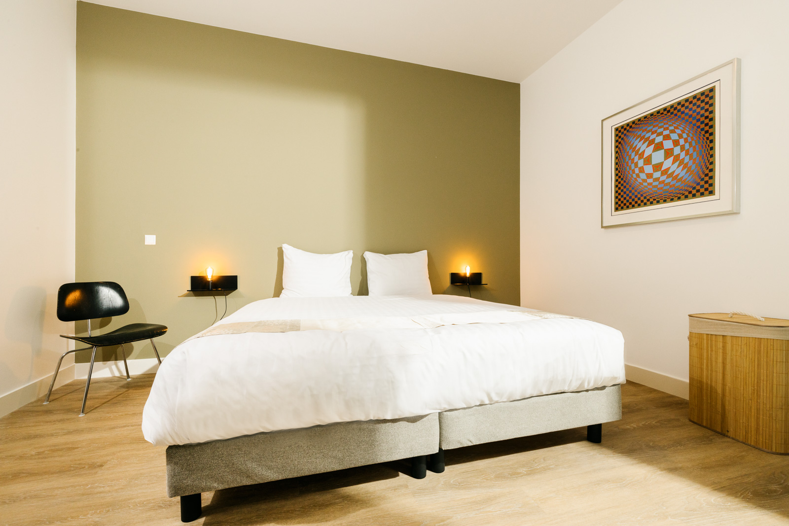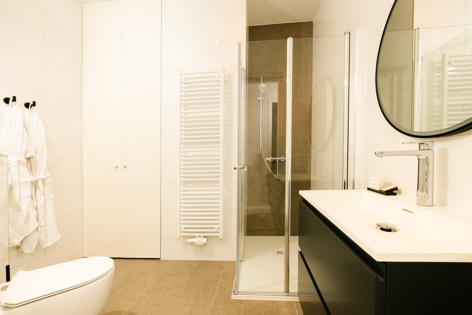Het appartement heeft één slaapkamer. Ook is er airconditioning. De moderne badkamer is ruim en heeft fraai wastafelkom, een stort- en handdouche en design radiator. Ook vind je hier de aansluiting voor de wasmachine.