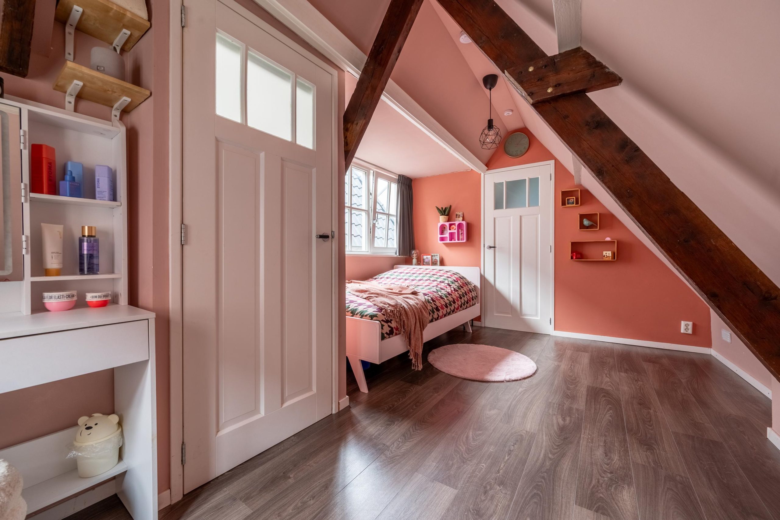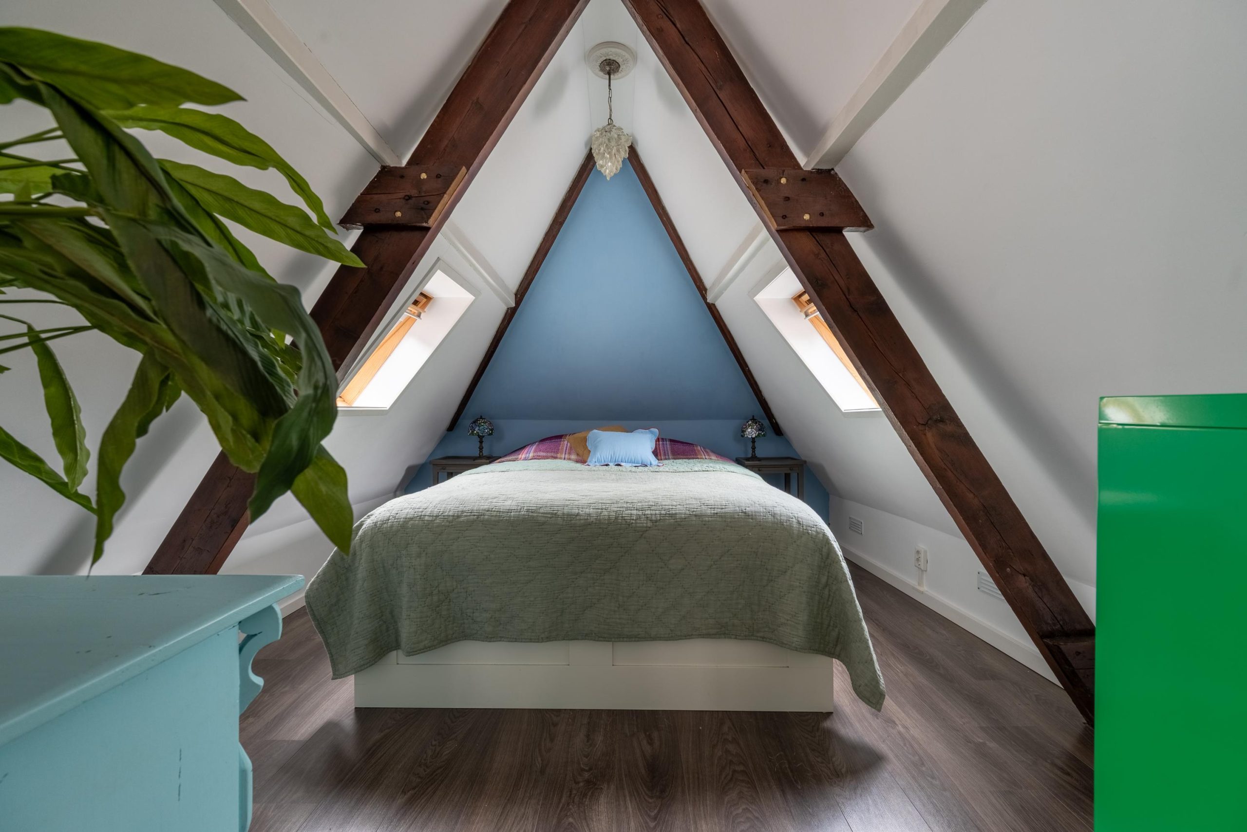 Verder vindt je veel authentieke details terug in deze woning, zoals houten balken op zolder en een karakteristieke voorgevel.