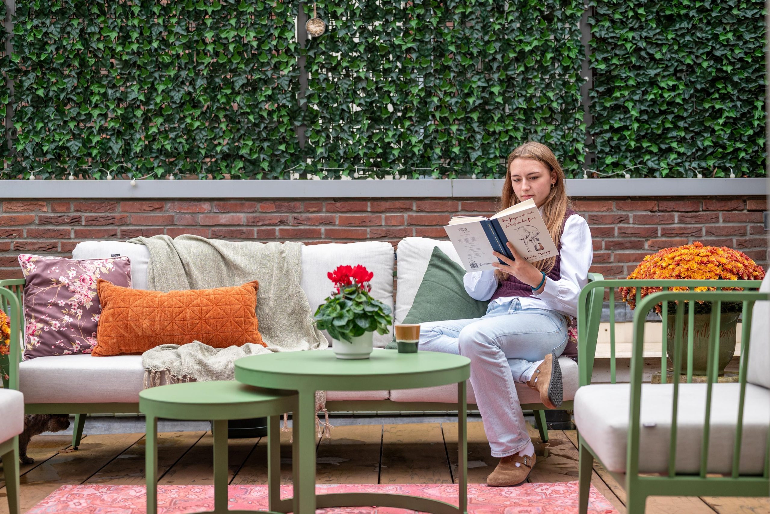 Sla de deuren open en voilà: je eigen dakterras van maar liefst 17m2! Dit heerlijk rustige plekje biedt genoeg privacy om in alle rust op een zachte winterdag een kopje glühwein te drinken onder een dekentje. Er is ruimte voor een complete tuinset en een kerstboom vol lichtjes.