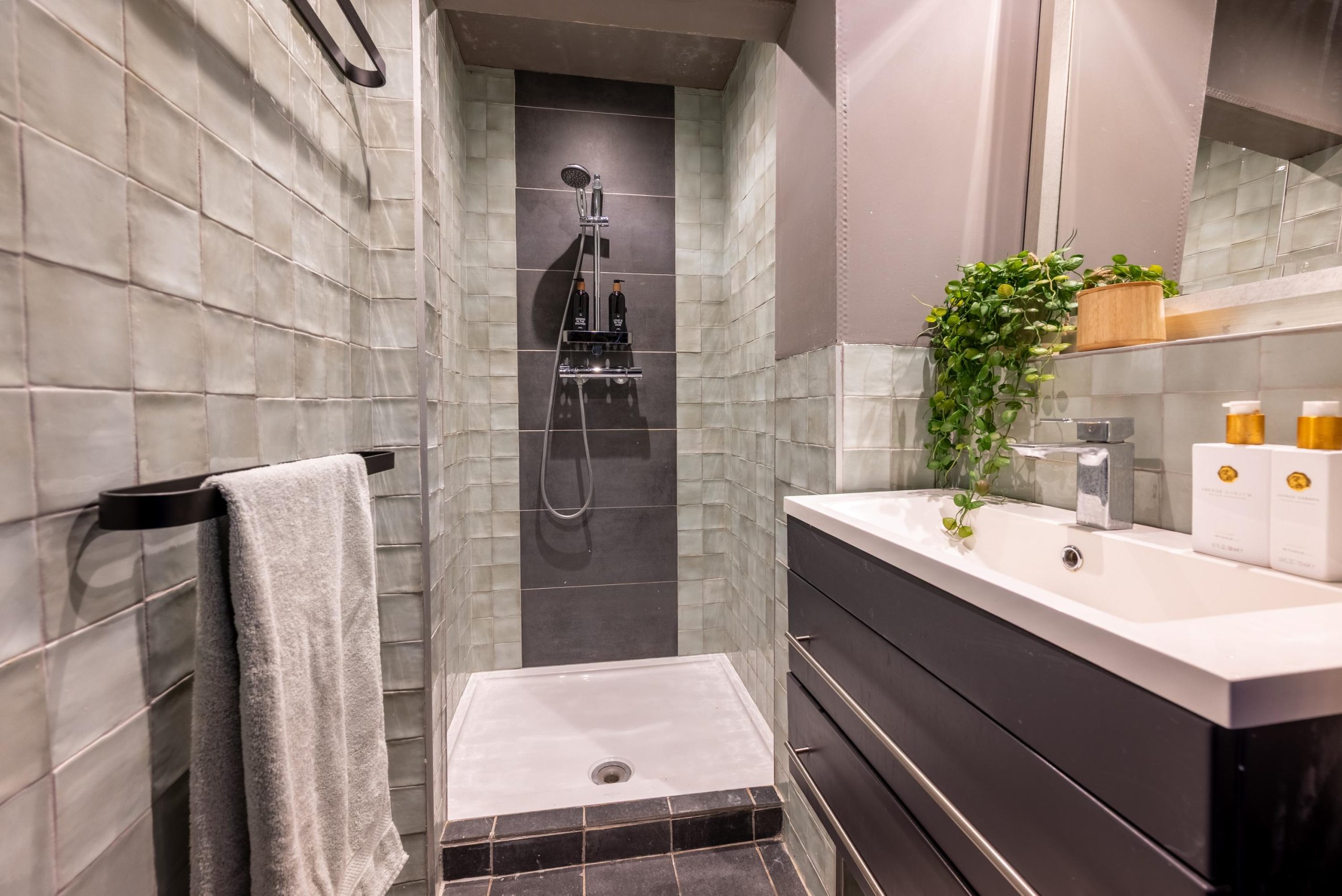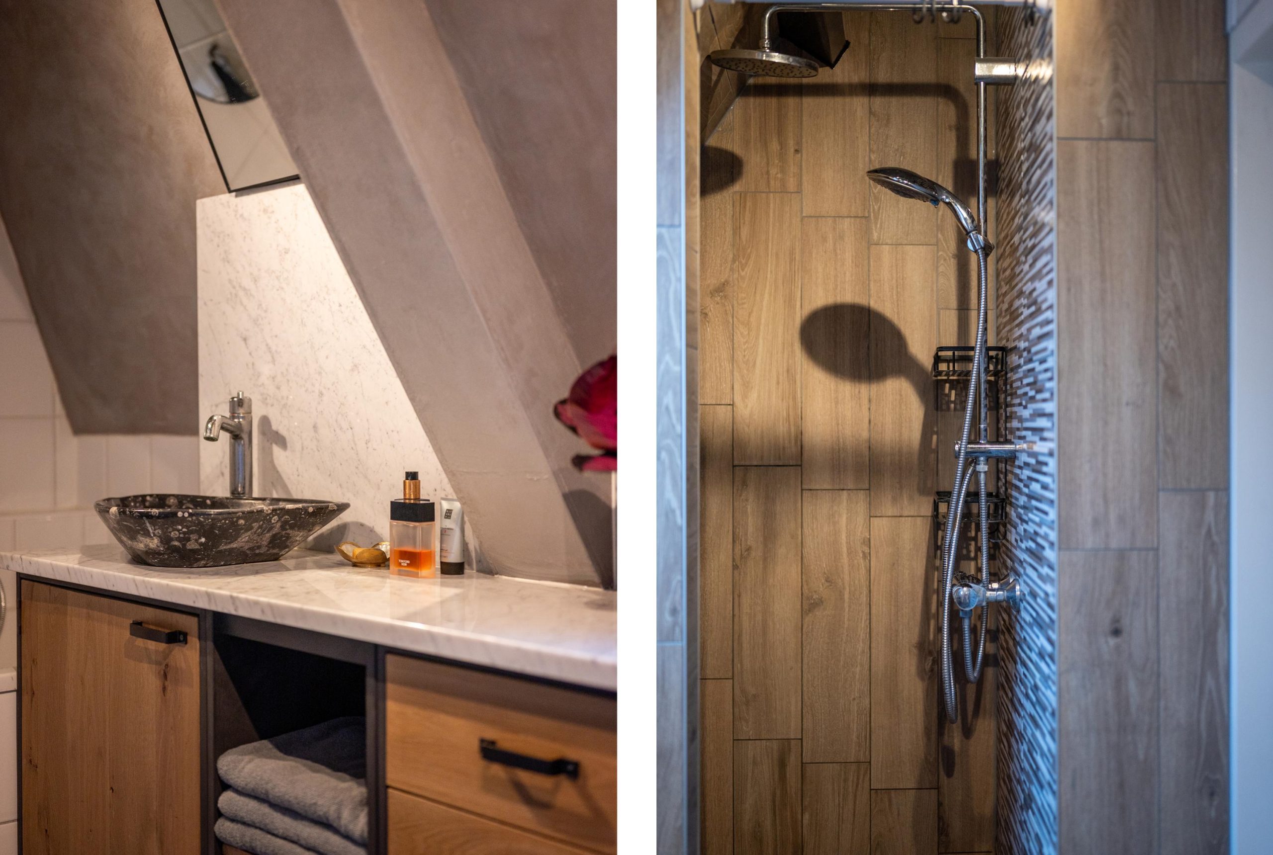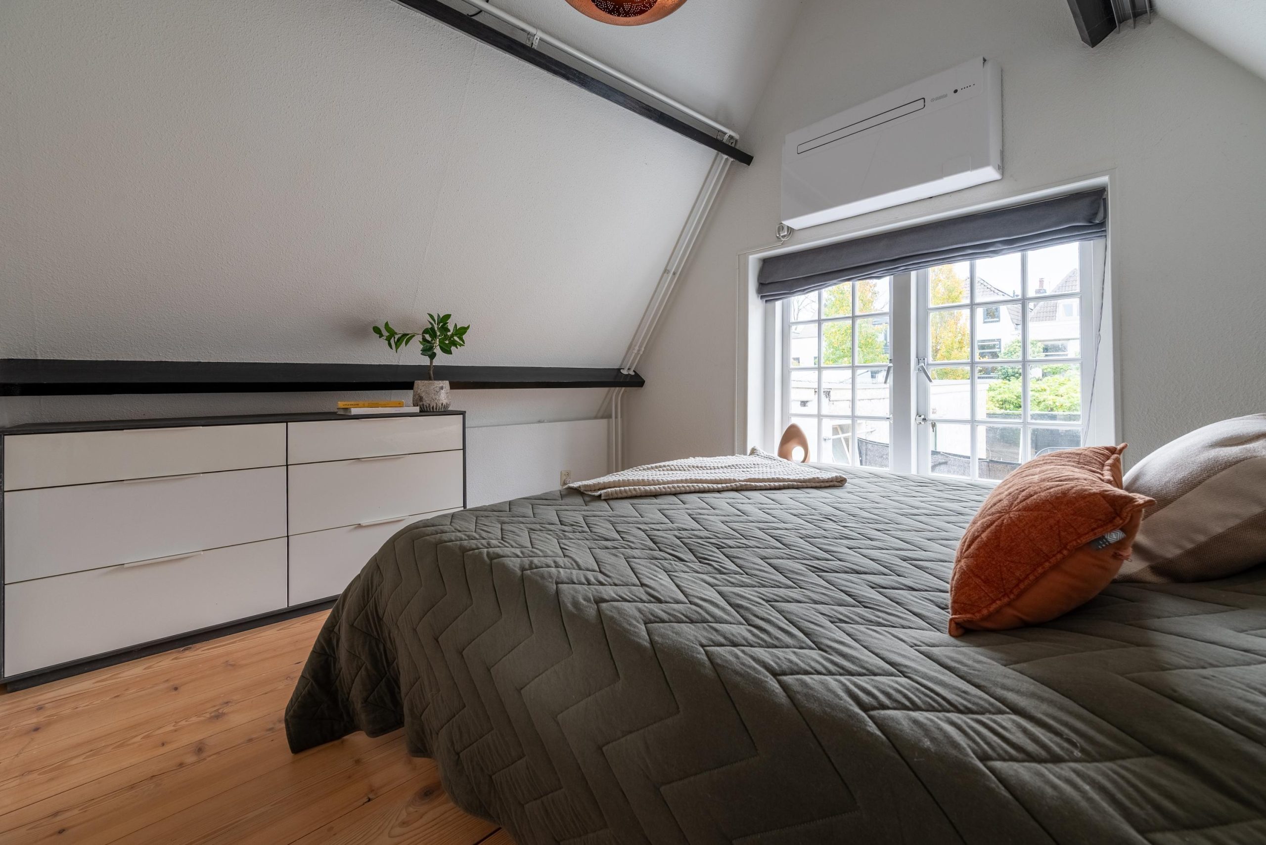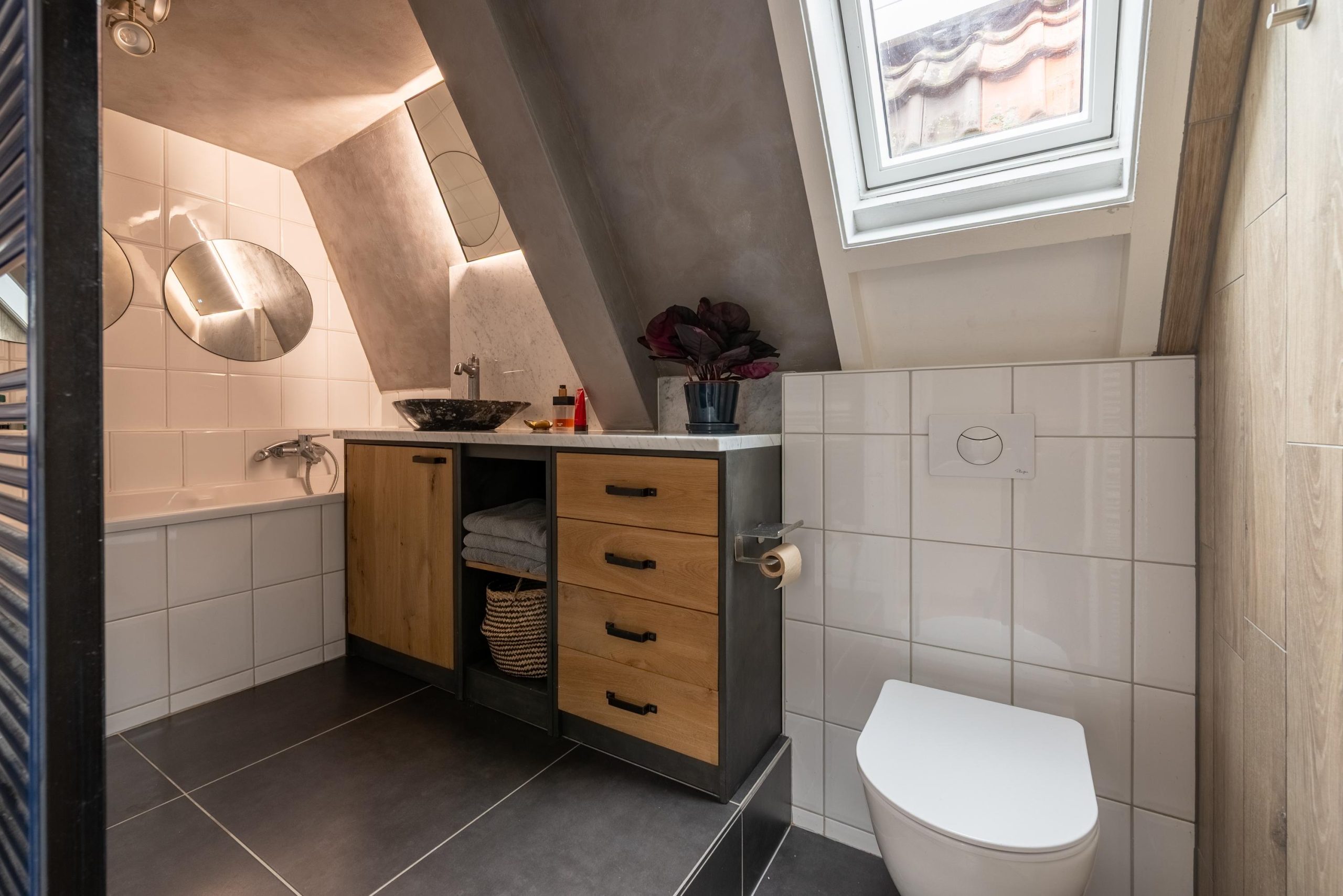 Boven vind je twee slaapkamers met elk hun eigen sfeer. De tweede is extra ruim: plek voor bureau of make-uptafel en, als je wilt, te splitsen in twee aparte kamers. De badkamer is je dagelijkse moment van rust: inloopdouche, ligbad, natuurlijke materialen en zacht daglicht via het dakraam.
