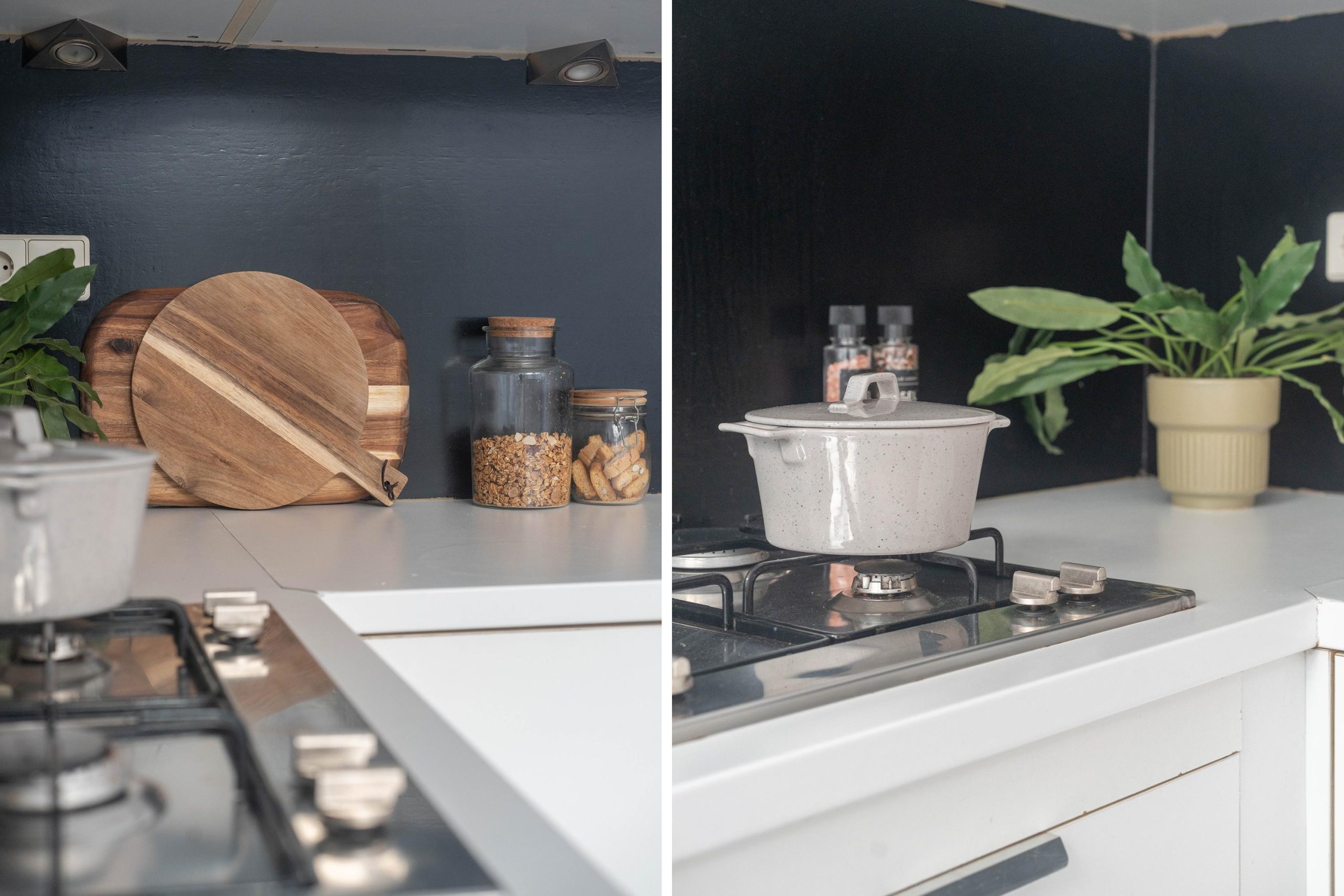 Aan de voorzijde ligt de open woonkamer met keuken: een praktische én gezellige plek waar alles samenkomt. Er is ruimte genoeg voor een comfortabele zithoek en een knusse eethoek. De open indeling maakt dat je tijdens het koken altijd betrokken blijft bij het gezelschap, ideaal voor wie houdt van gezelligheid.