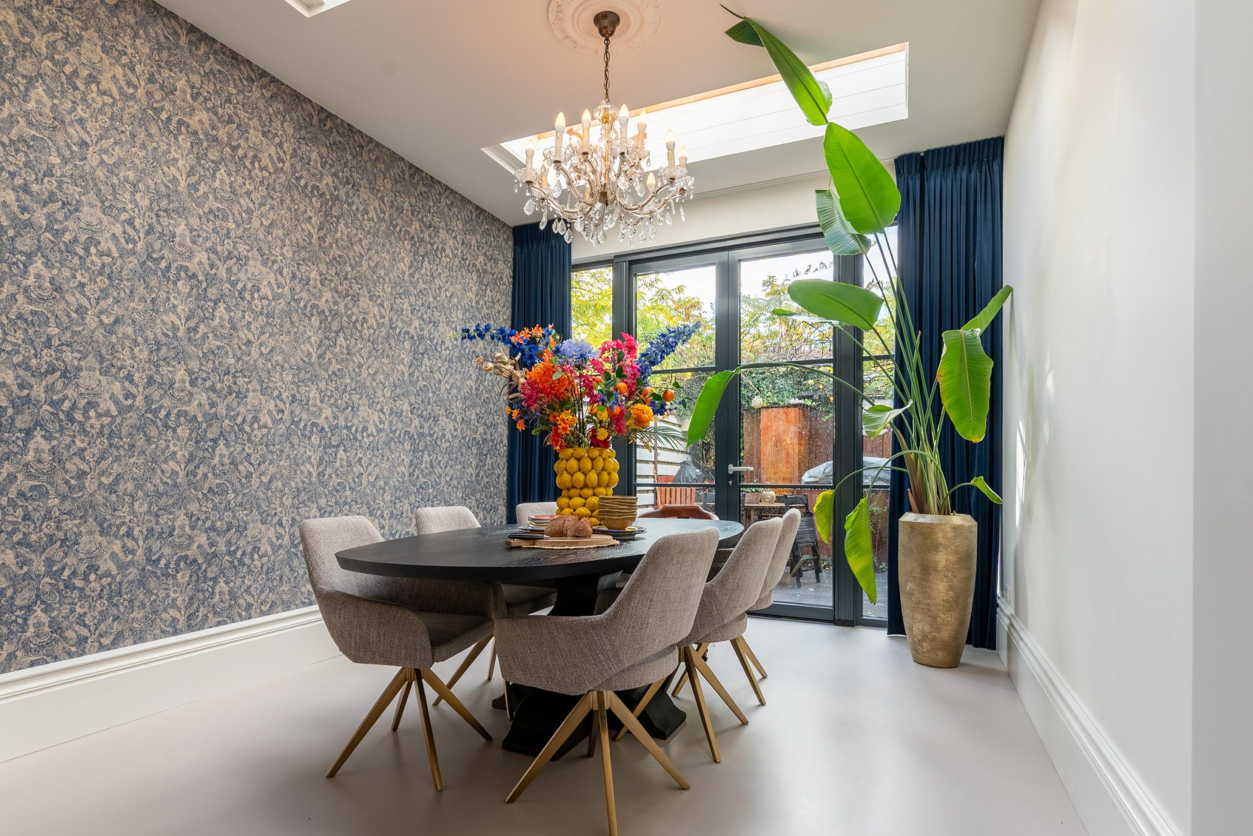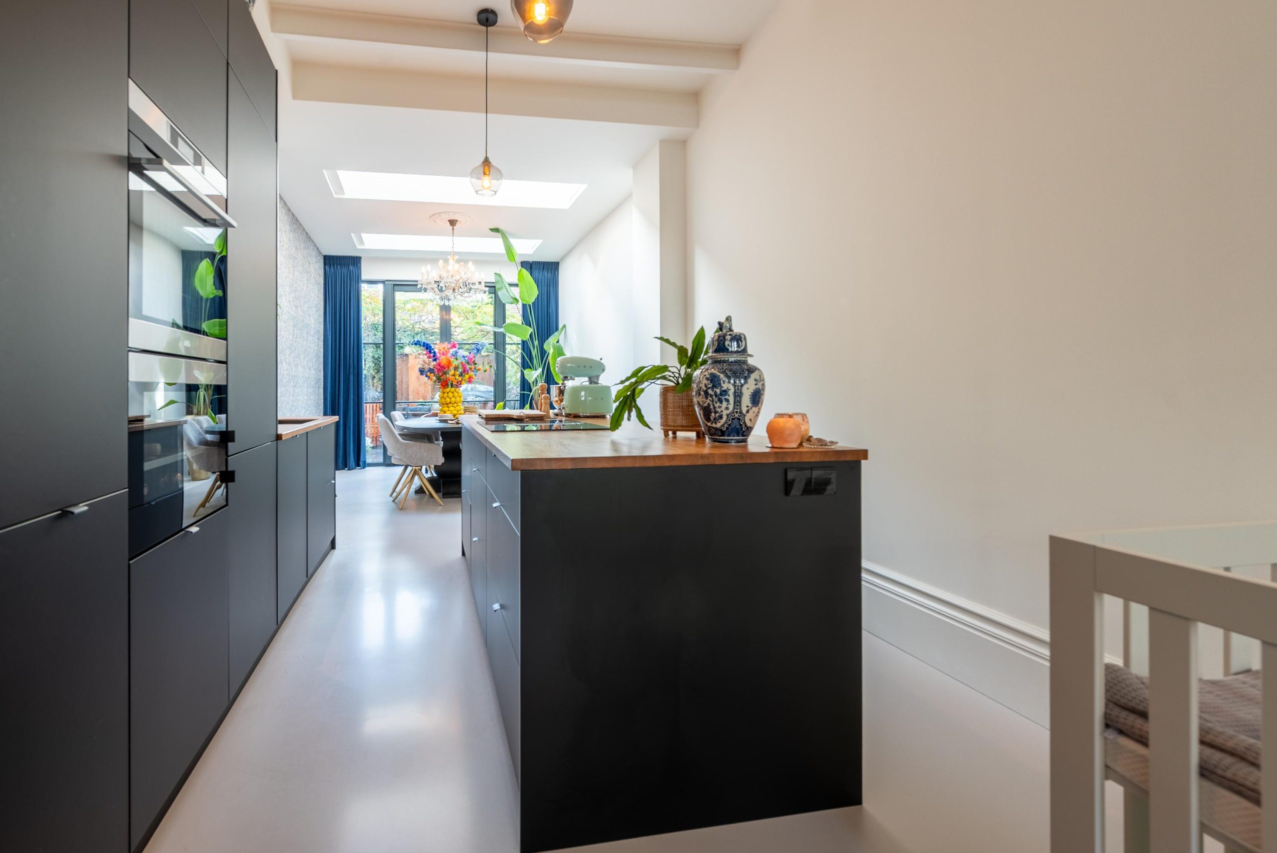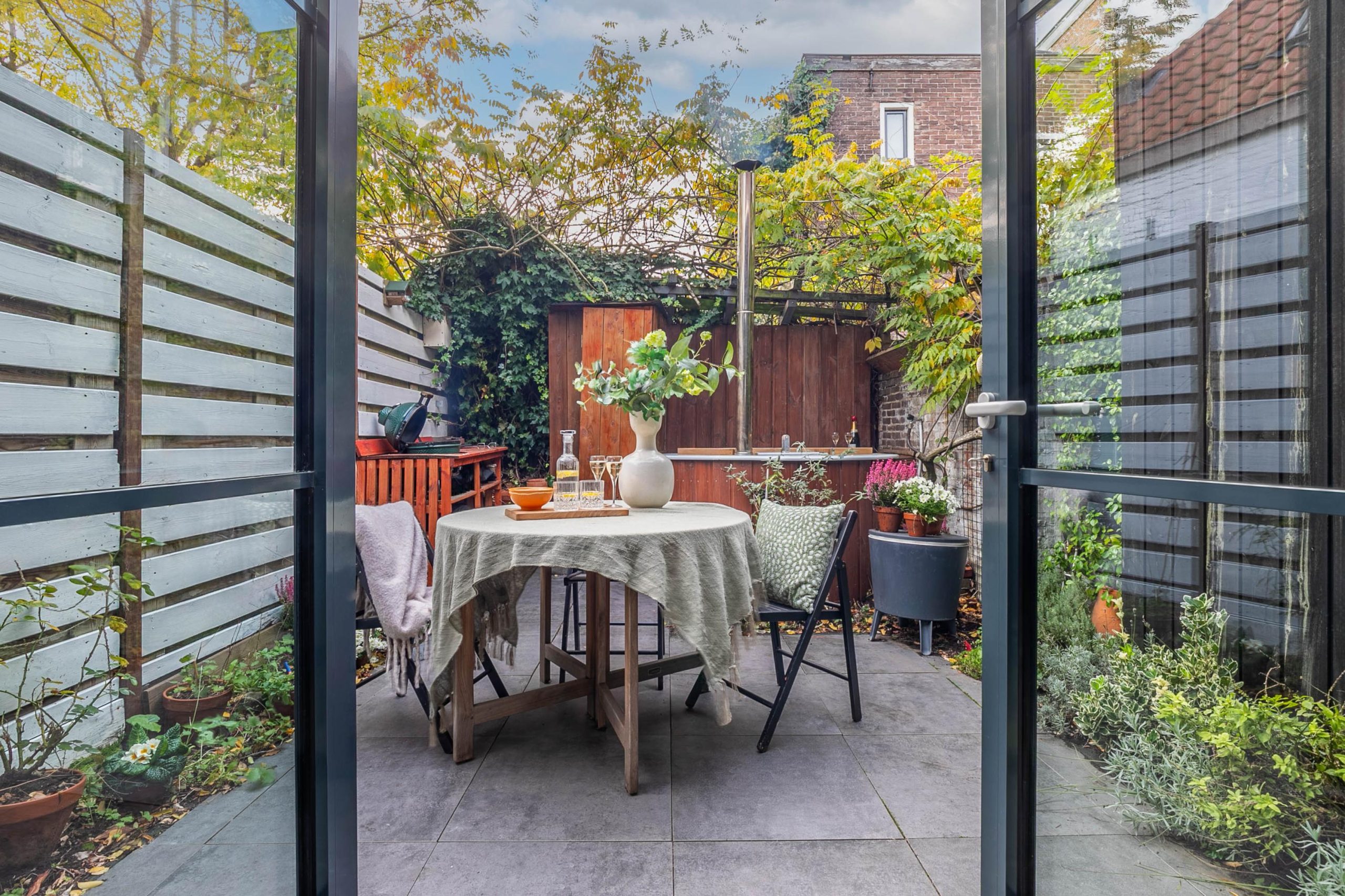 Beneden draait alles om licht, sfeer en samen zijn. De woonkamer loopt door in de uitbouw (2022), waar het daglicht zowel via de glazen pui als van boven naar binnen valt. Zet de openslaande deuren open en je stapt zo de stadstuin in: een groene oase van rust midden in de stad. Op zomerse dagen zit je hier prettig buiten met een glas op tafel, iets op de grill en goed gezelschap erbij.