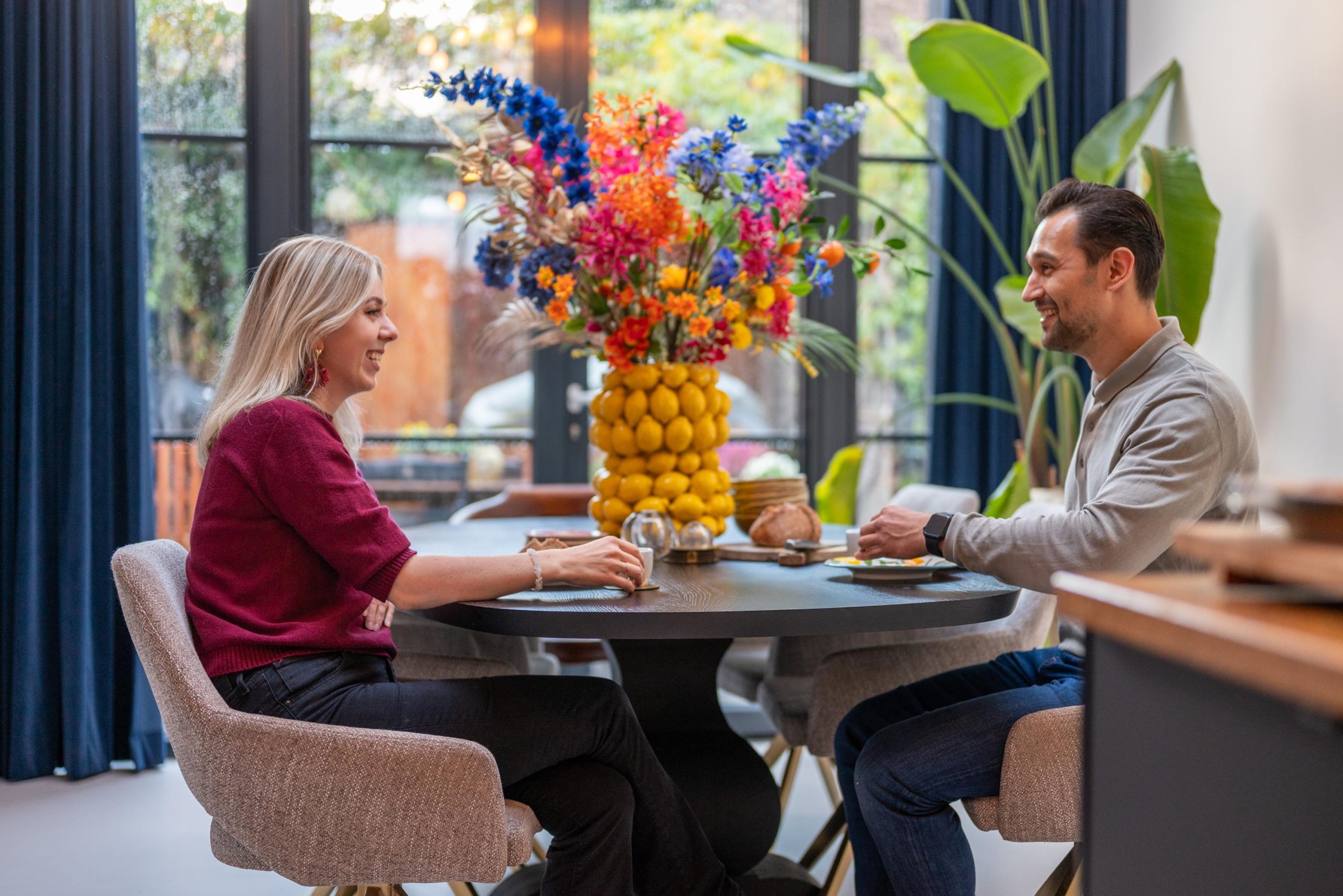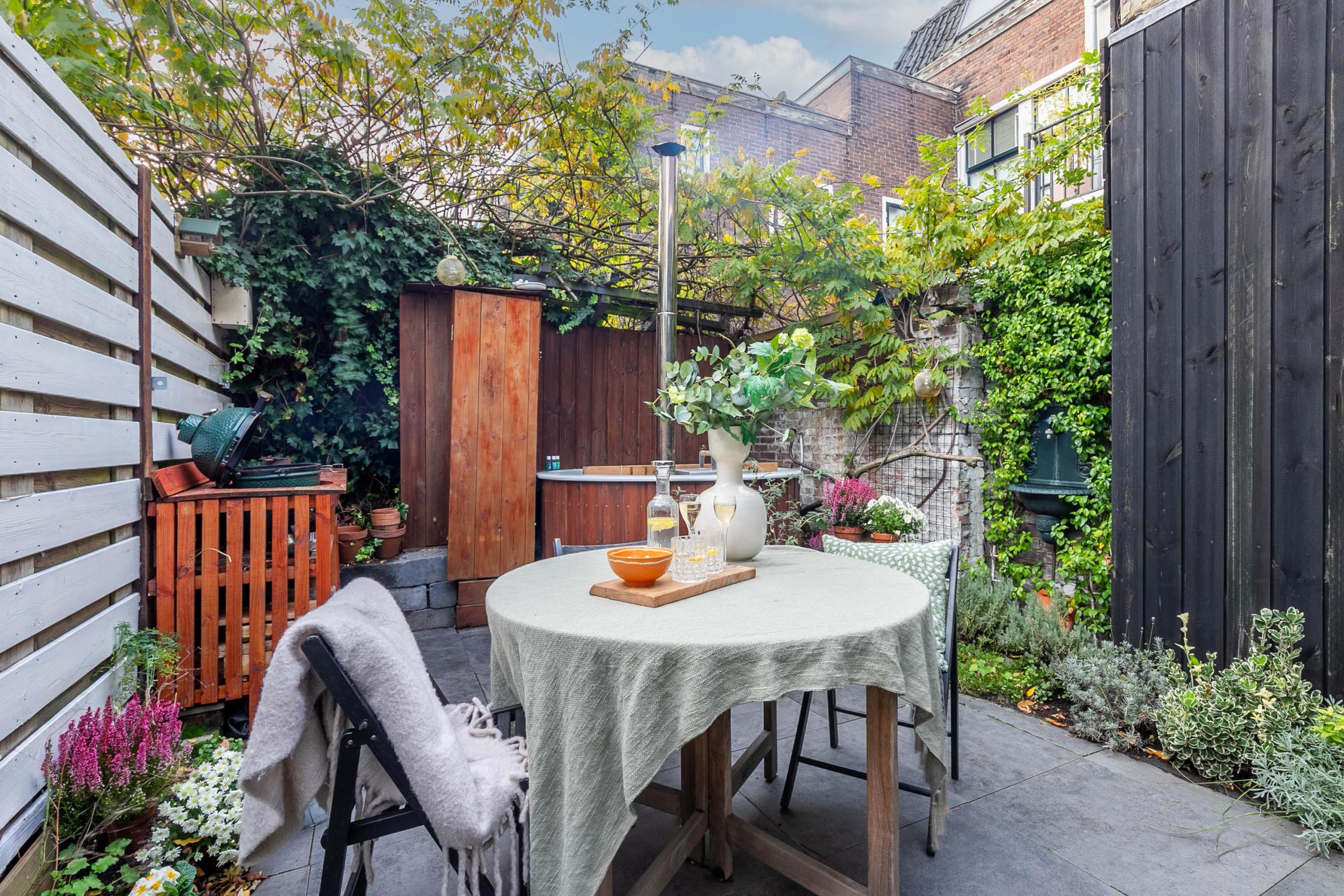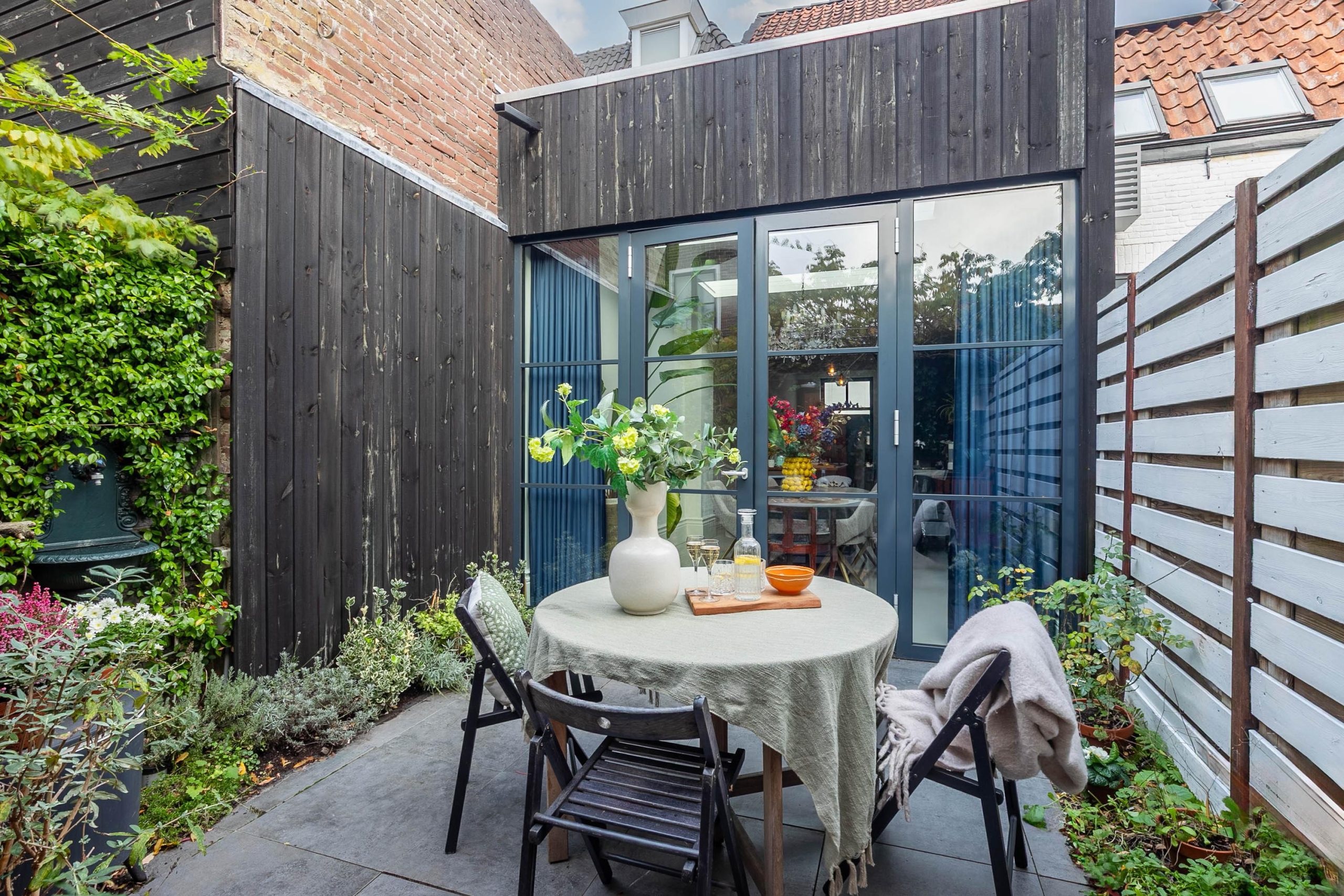 Beneden draait alles om licht, sfeer en samen zijn. De woonkamer loopt door in de uitbouw (2022), waar het daglicht zowel via de glazen pui als van boven naar binnen valt. Zet de openslaande deuren open en je stapt zo de stadstuin in: een groene oase van rust midden in de stad. Op zomerse dagen zit je hier prettig buiten met een glas op tafel, iets op de grill en goed gezelschap erbij.