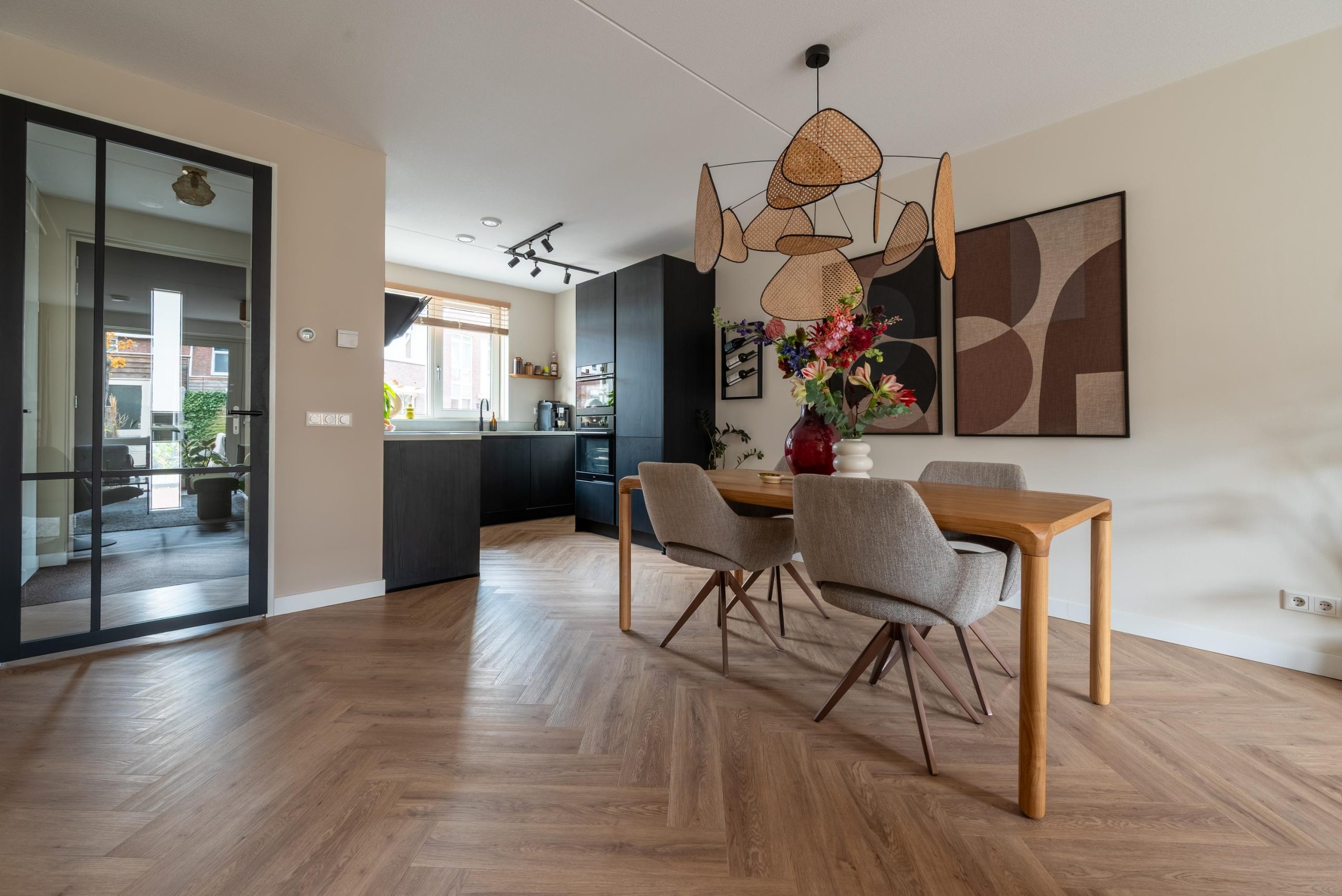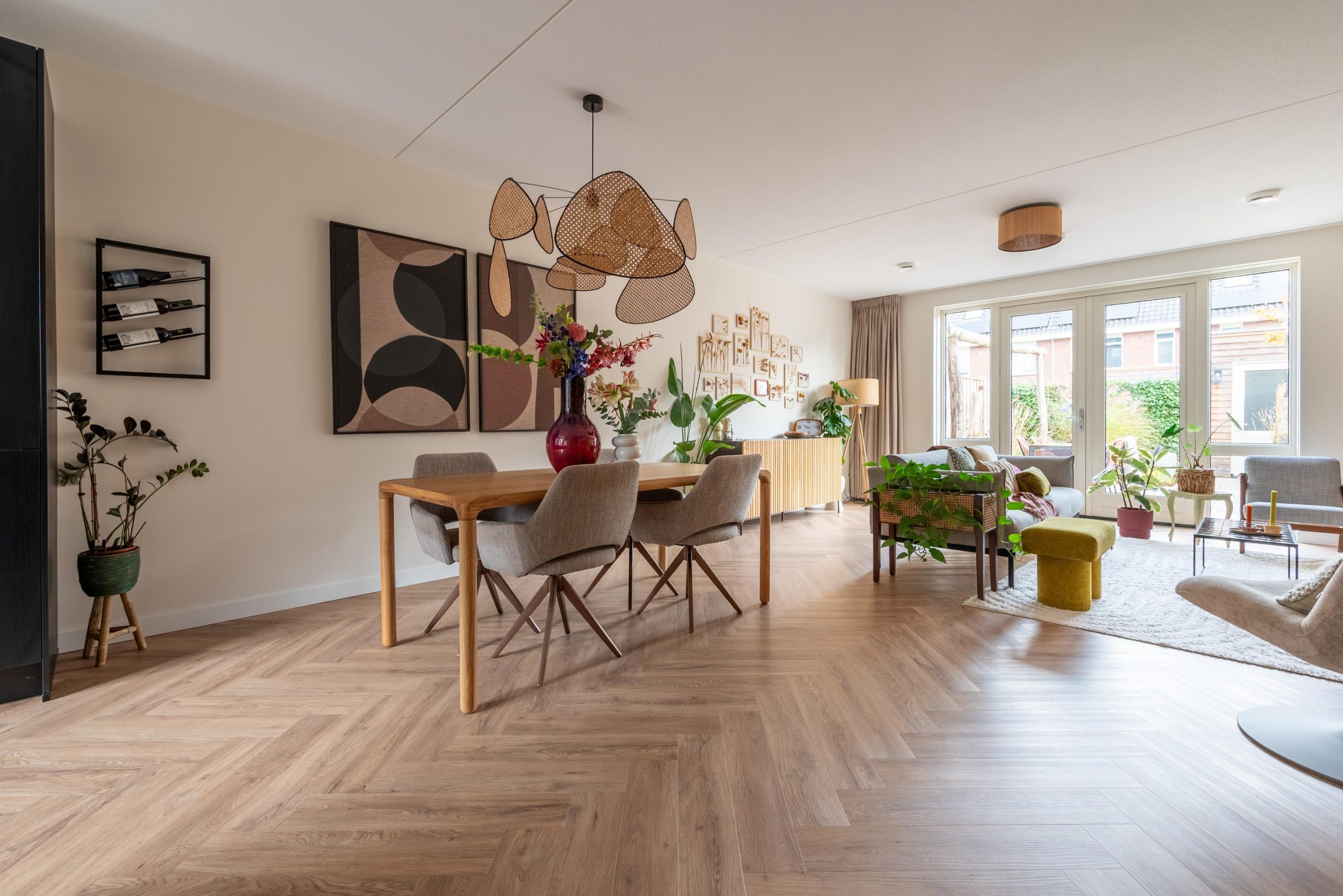 Aan de Suzanna van Oostdijkstraat 16 stap je een woning binnen die meteen iets bijzonders heeft. Het zachte licht valt door de grote ramen naar binnen en de kleuren in de woonkamer geven precies dat warme gevoel waar je misschien al een tijd naar op zoek bent. Je hangt je jas op, loopt de woonkamer in en voelt het meteen. Dit is zo’n huis waar je langzaam tot rust komt, terwijl het tegelijkertijd ruimte geeft aan een levendig gezinsleven.