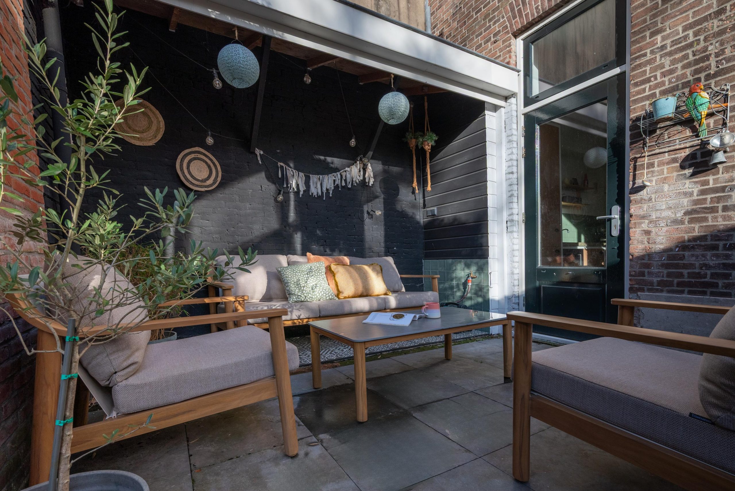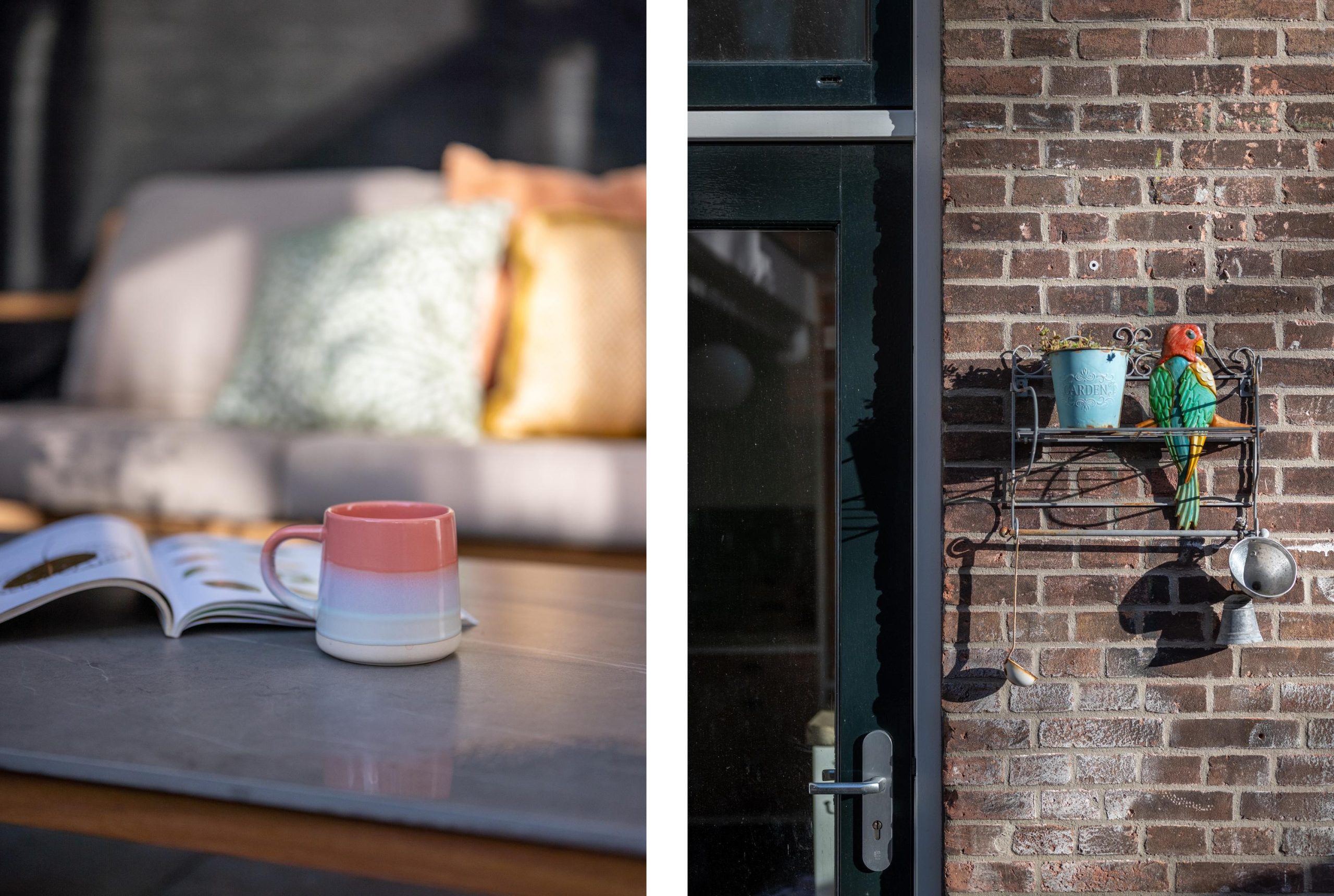 De achtertuin is een heerlijke plek om te leven en te genieten, te loungen of te barbecueën, alles kan. Bij een regenbui is alles veilig op te bergen in de schuur.
