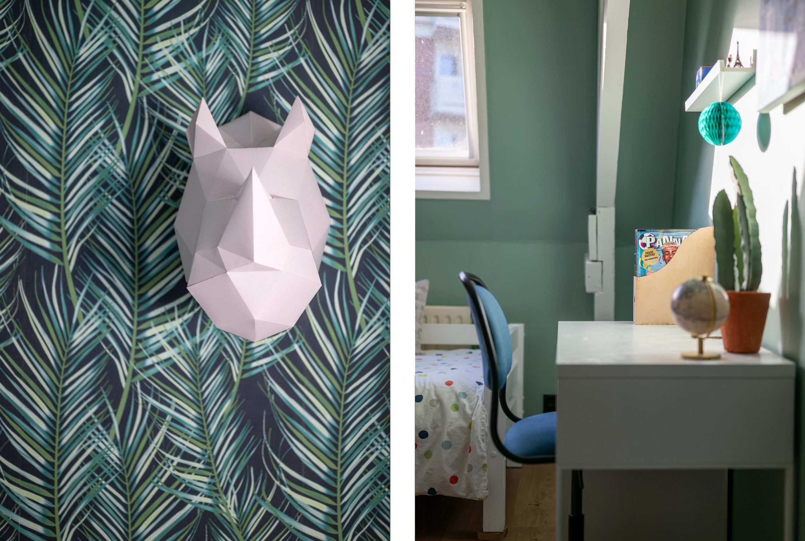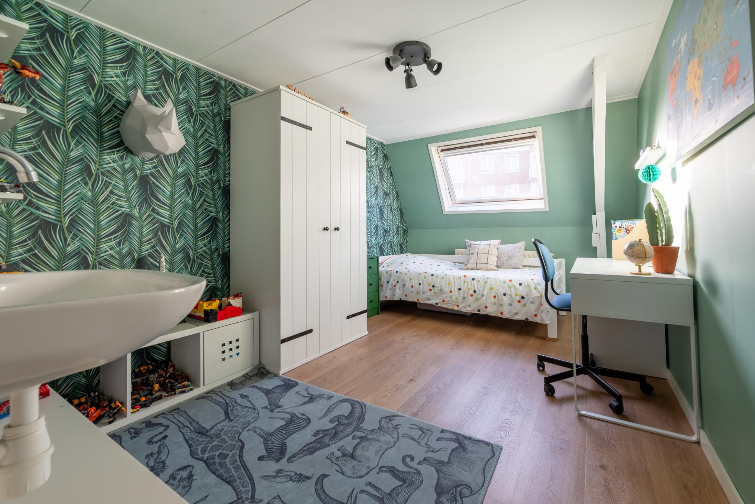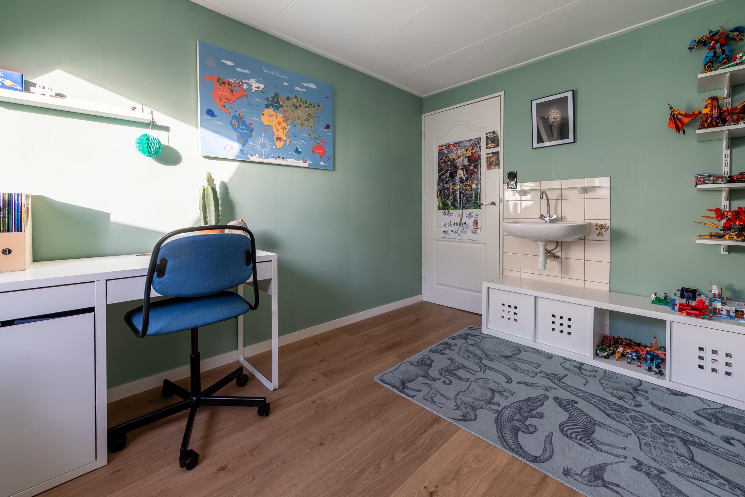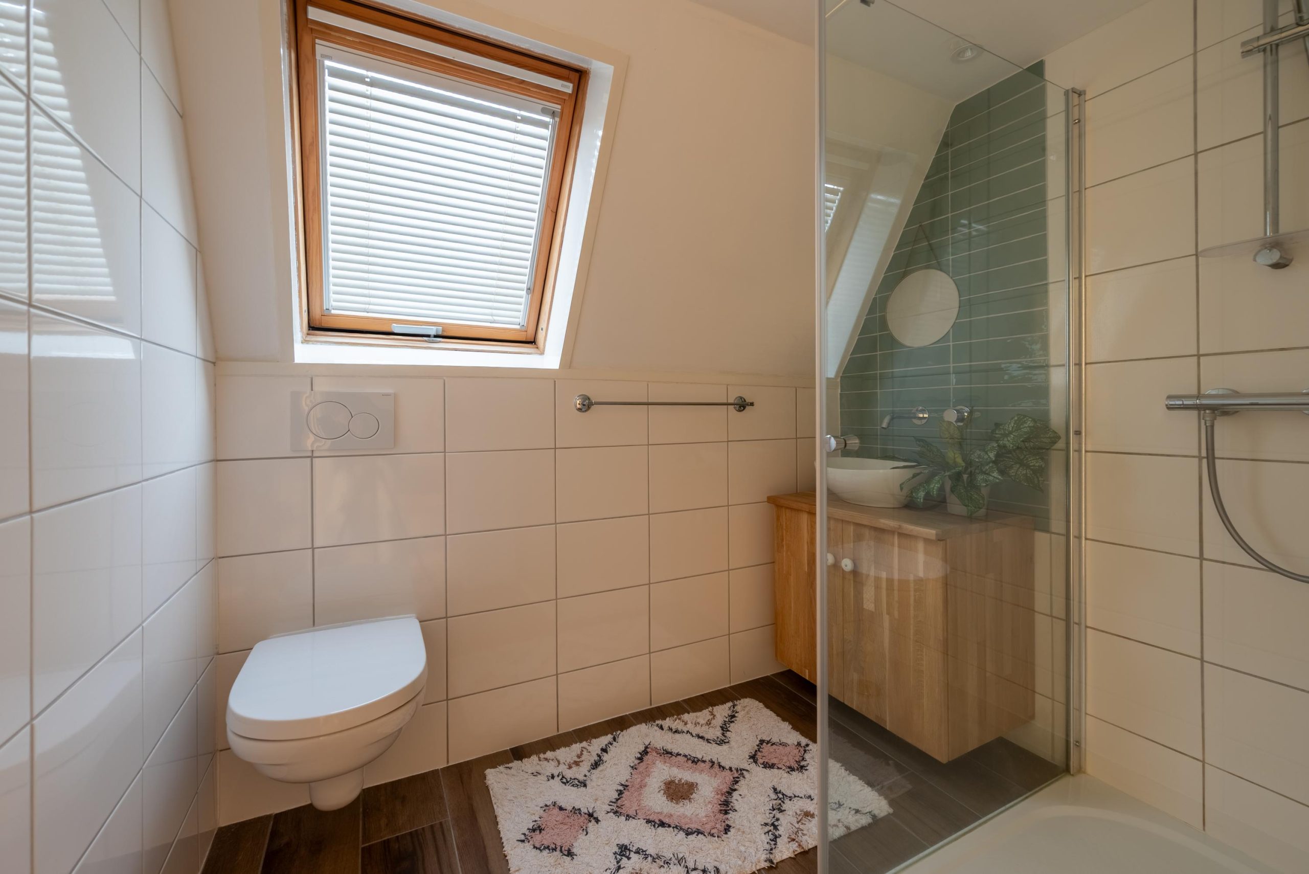 Op de eerste verdieping vind je de masterbedroom met een lichte laminaatvloer, shutters en een ruime kastenwand. Daarnaast is er een werkkamer en een creatieve hobbyruimte. Op deze verdieping is de badkamer met ligbad en inloopdouche. De tweede verdieping is het domein van de kinderen, met nog twee slaapkamers, een grote open logeerruimte en een eigen badkamer met douche en toilet.