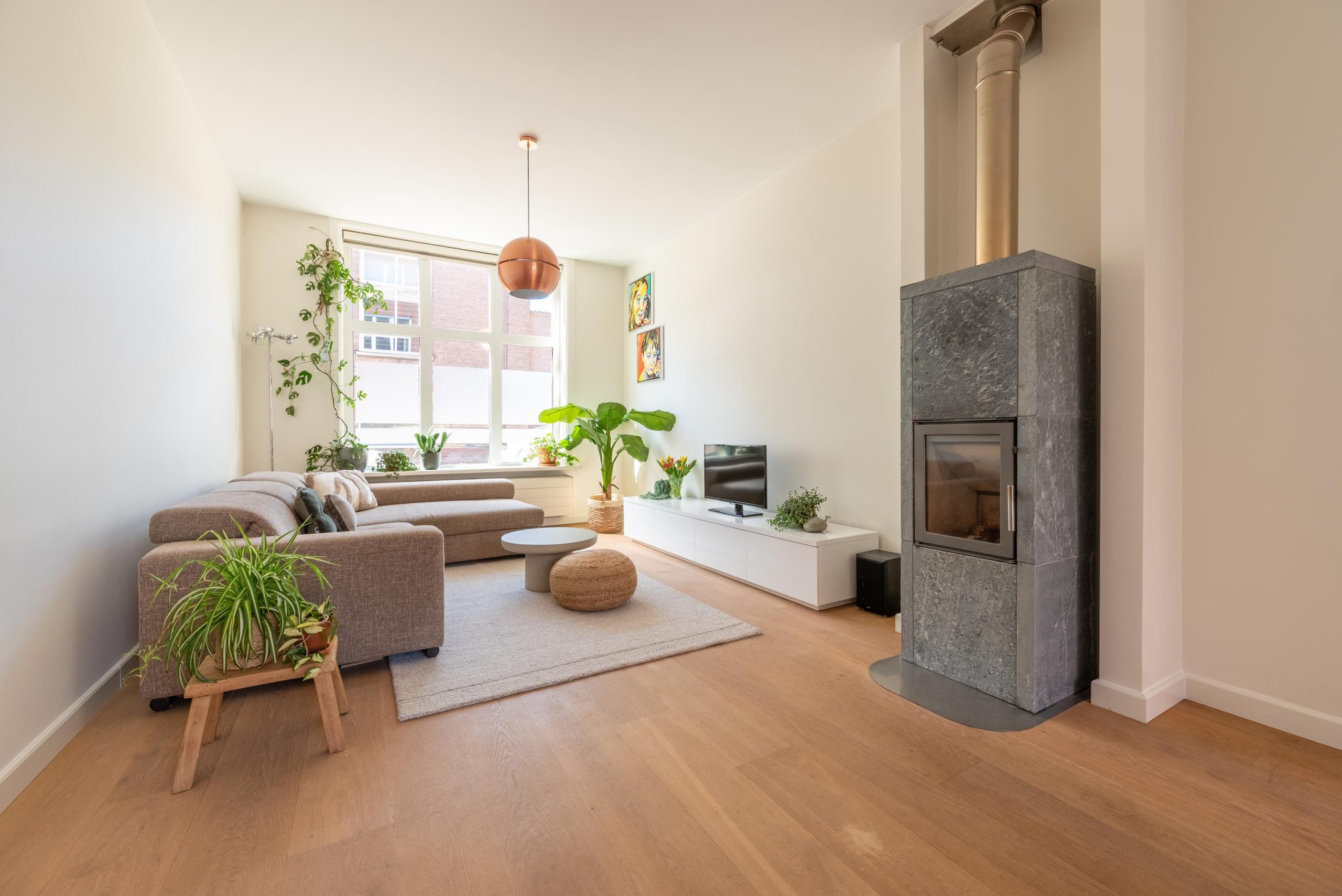 Achter de gevel schuilt een verrassend ruime stadswoning. Hoge plafonds, houten vloeren en zichtbare balken maken iedere ruimte weer uniek, met ook elk zijn eigen sfeer. Van de woonkamer met houtkachel tot de royale bovenverdiepingen met volop mogelijkheden.