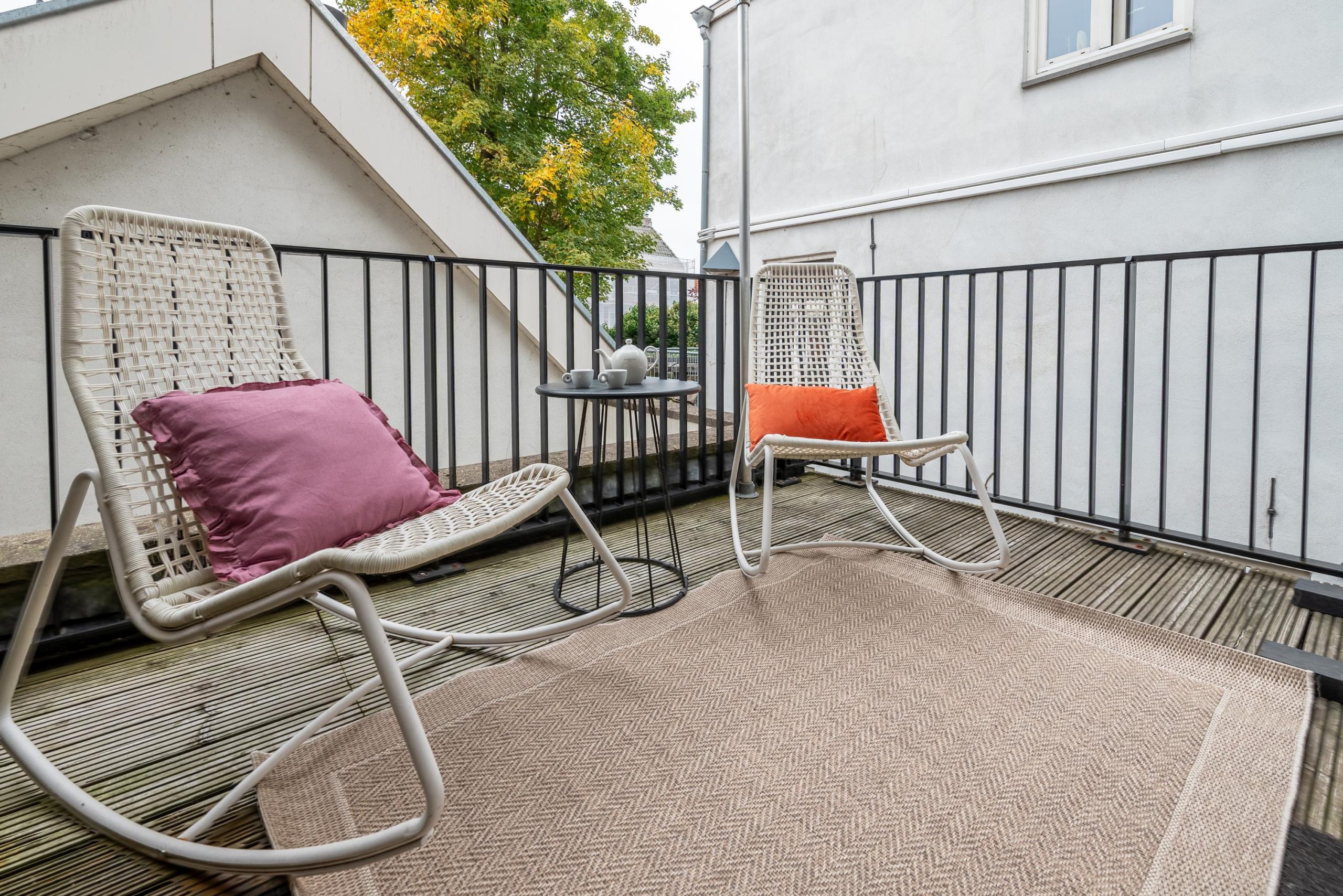 En dan het terras. Een plek waar de tijd even stil lijkt te staan. Zet een stoel neer, leg een plaid over je benen en luister naar de geluiden van de stad op de achtergrond. In de zomer zit je hier heerlijk beschut en geniet je van dat gevoel dat je midden in de binnenstad woont, maar toch je eigen rustige plekje hebt.