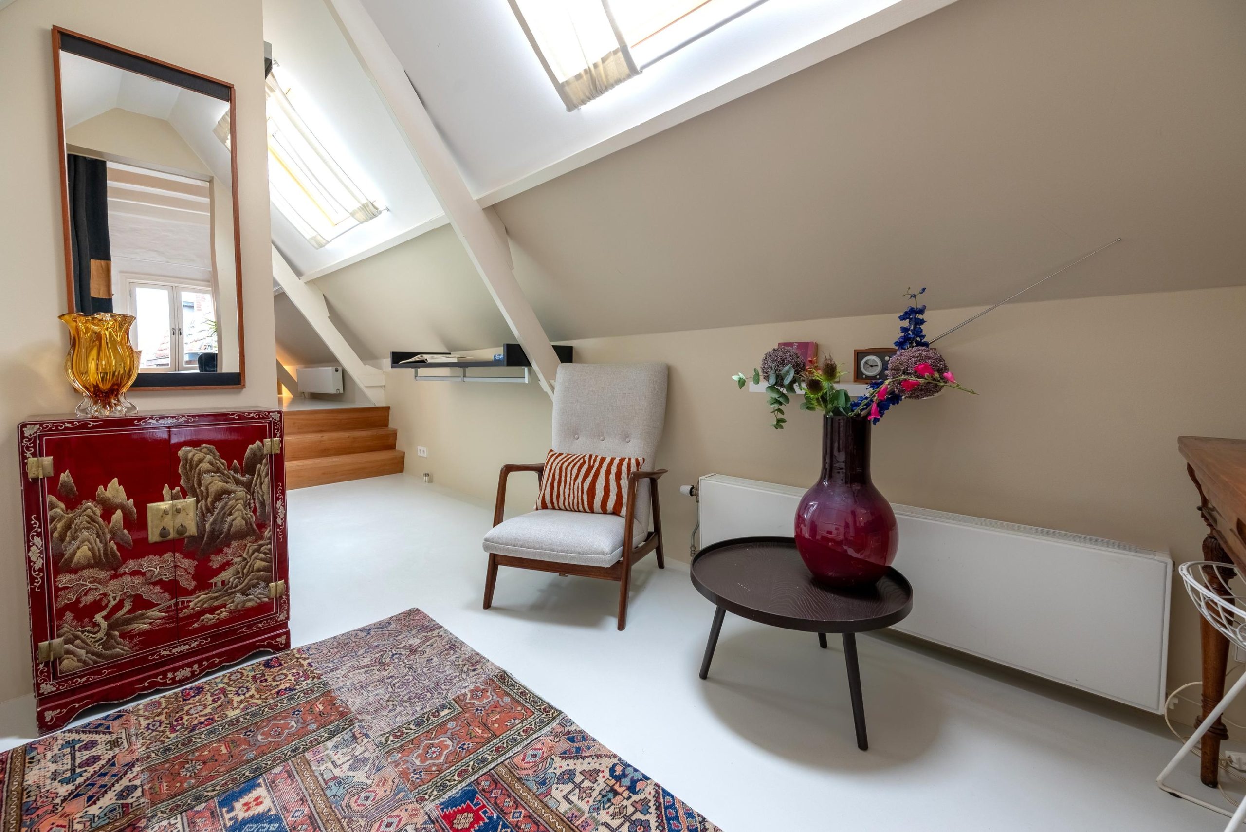 Morgen haal je koffie om de hoek, struin je door de straatjes en eindig je weer hier, op je eigen plek. Weessteeg 22b is geen standaard appartement, maar een plek waar wonen voelt als leven in de stad op jouw tempo. Compact en sfeervol, met een indeling die verrassend goed werkt.