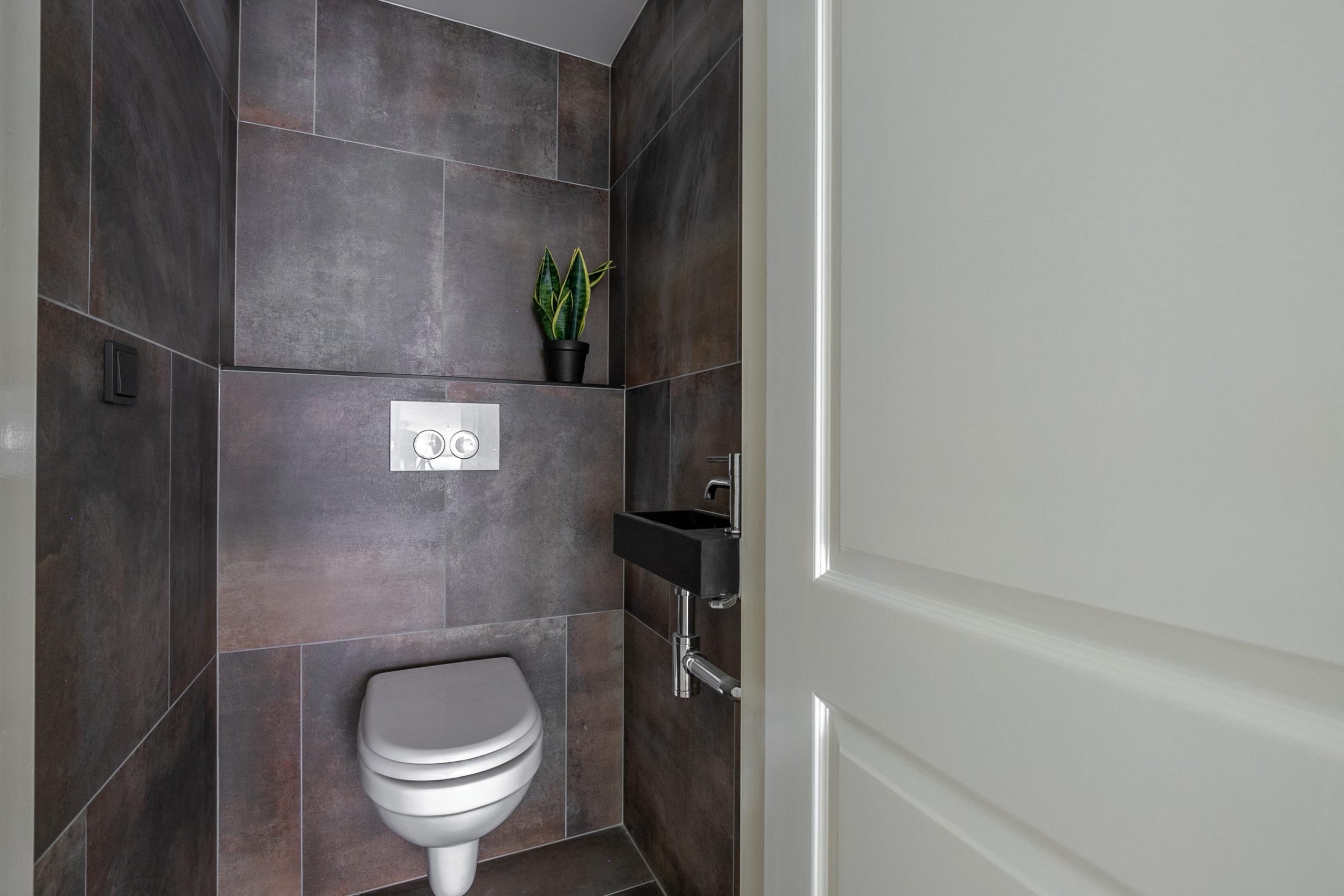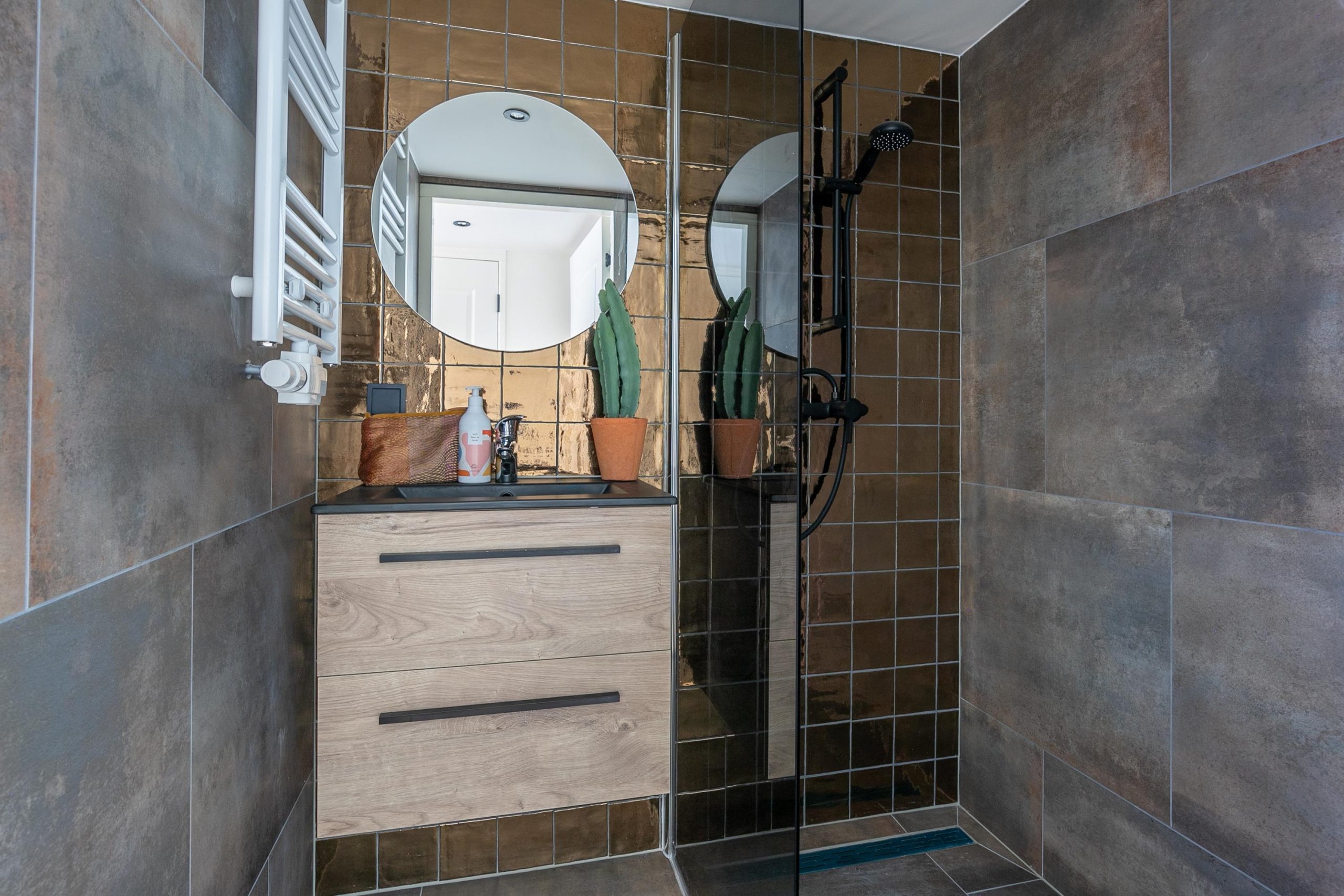 De moderne en sfeervolle badkamer is voorzien van een inloopdouche en een wastafelmeubel. De sfeervolle wand- en vloertegels maken het helemaal af. Daarnaast is er een separaat toilet. De wasmachine plaats je gemakkelijk in de aparte technische ruimte.
