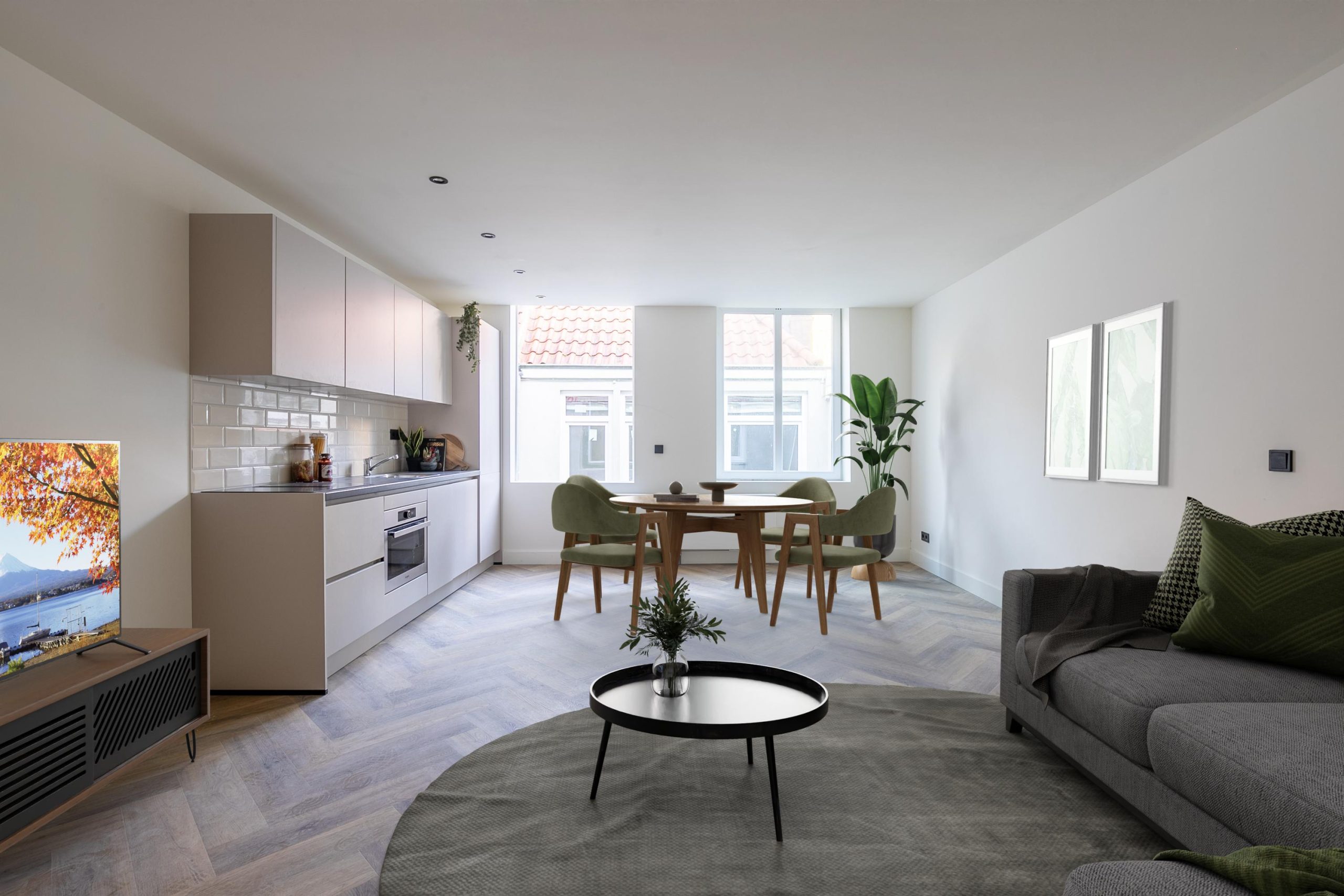 Het volledig vernieuwde appartement is virtueel ingericht met AI-bemeubeling zodat je direct ziet hoe sfeervol het kan worden.