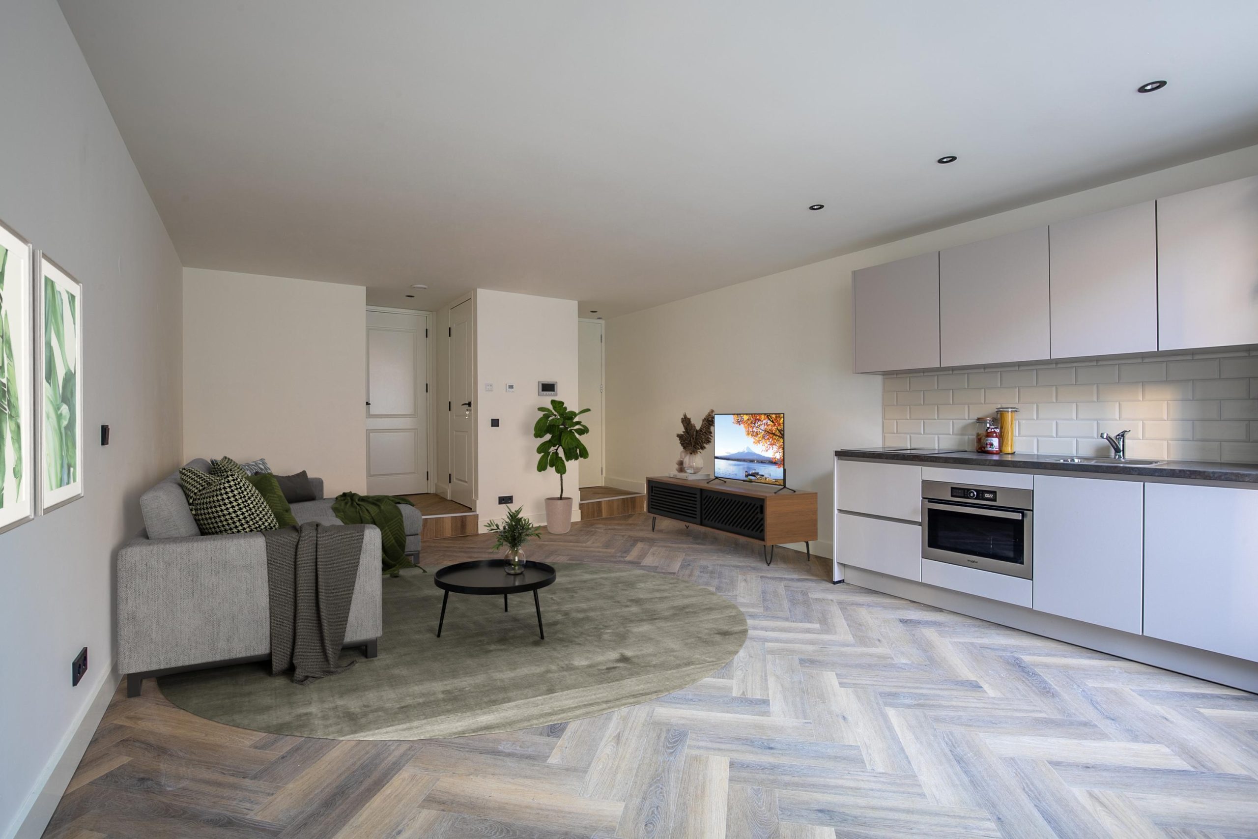 Via een opgang van 30 cm kom je de studio in. De lichte, moderne keuken is voorzien van alle gemakken die je nodig hebt, zoals een koelkast, vriezer, vaatwasser, inductiekookplaat met geïntegreerde afzuiging en een combi oven/magnetron. Een nieuw begin wacht op je. Deze woning is volledig instapklaar. Alles is tot in de puntjes verzorgd en geniet van een stijlvolle en comfortabele leefruimte.