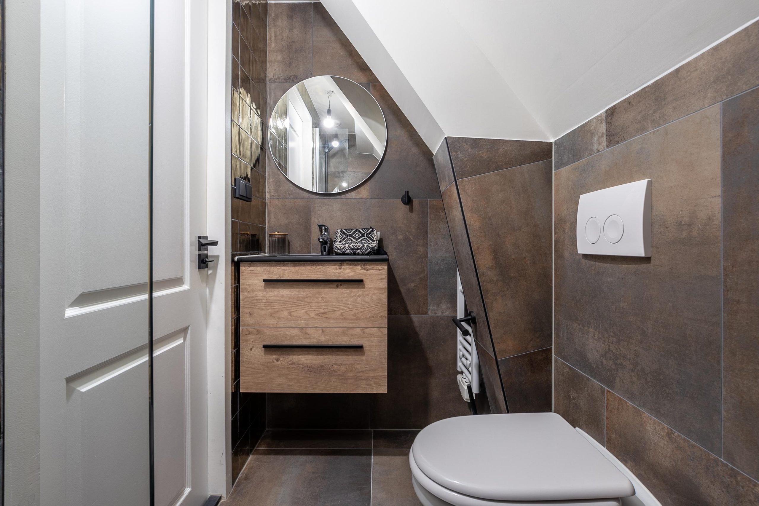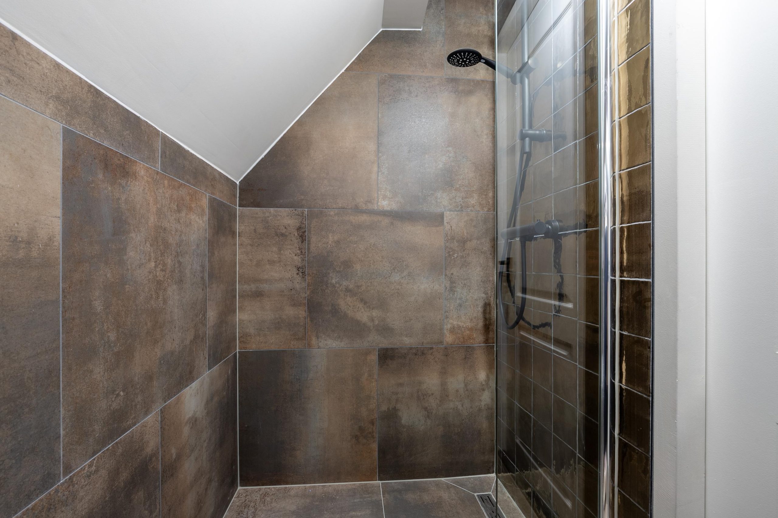 Kosten nog moeite zijn gespaard om een moderne en sfeervolle badkamer te realiseren. Mooie wand- en vloertegels zijn gecombineerd met luxe sanitair (grote douchehoek, hangend toilet en een wastafelmeubel) wat zorgt voor een harmonieuze uitstraling.