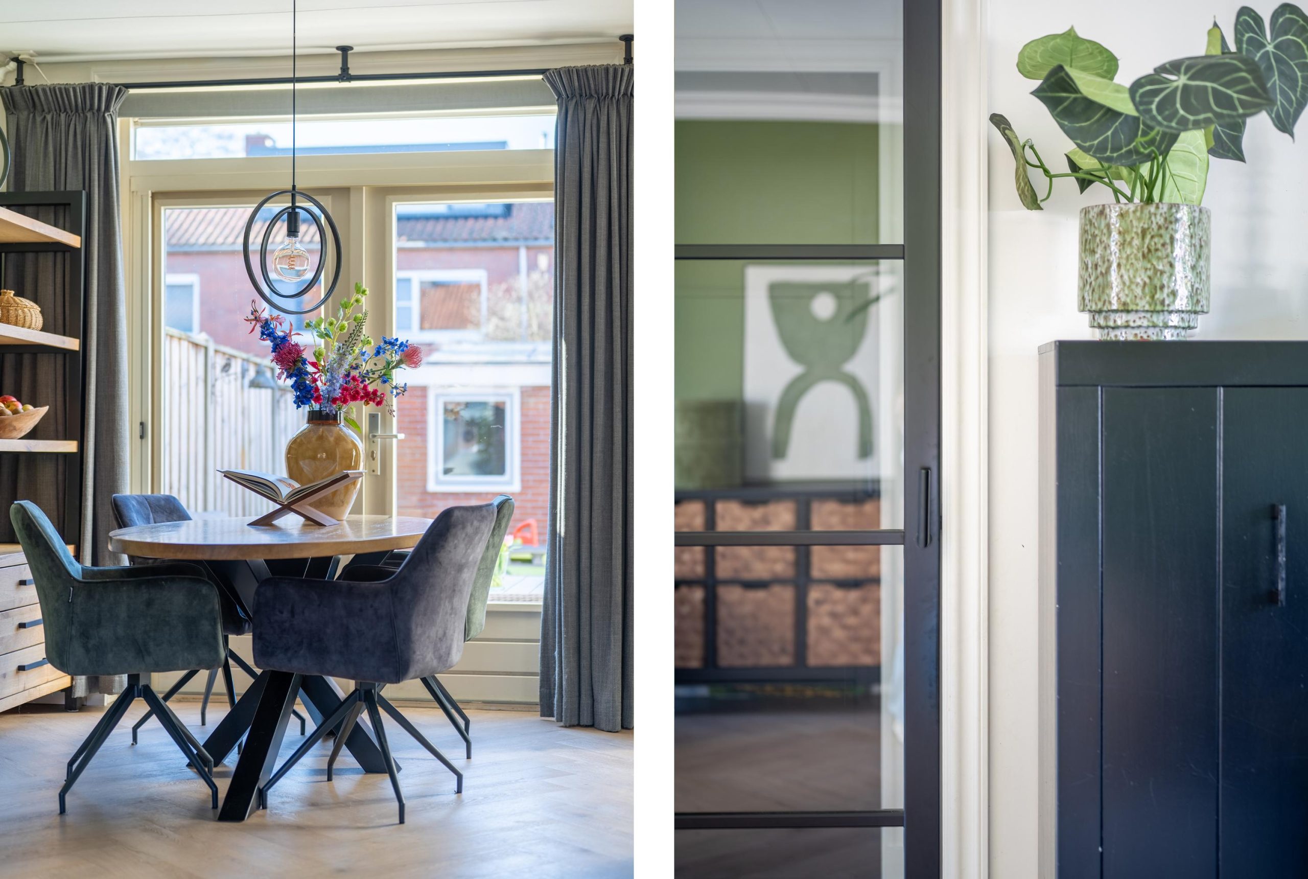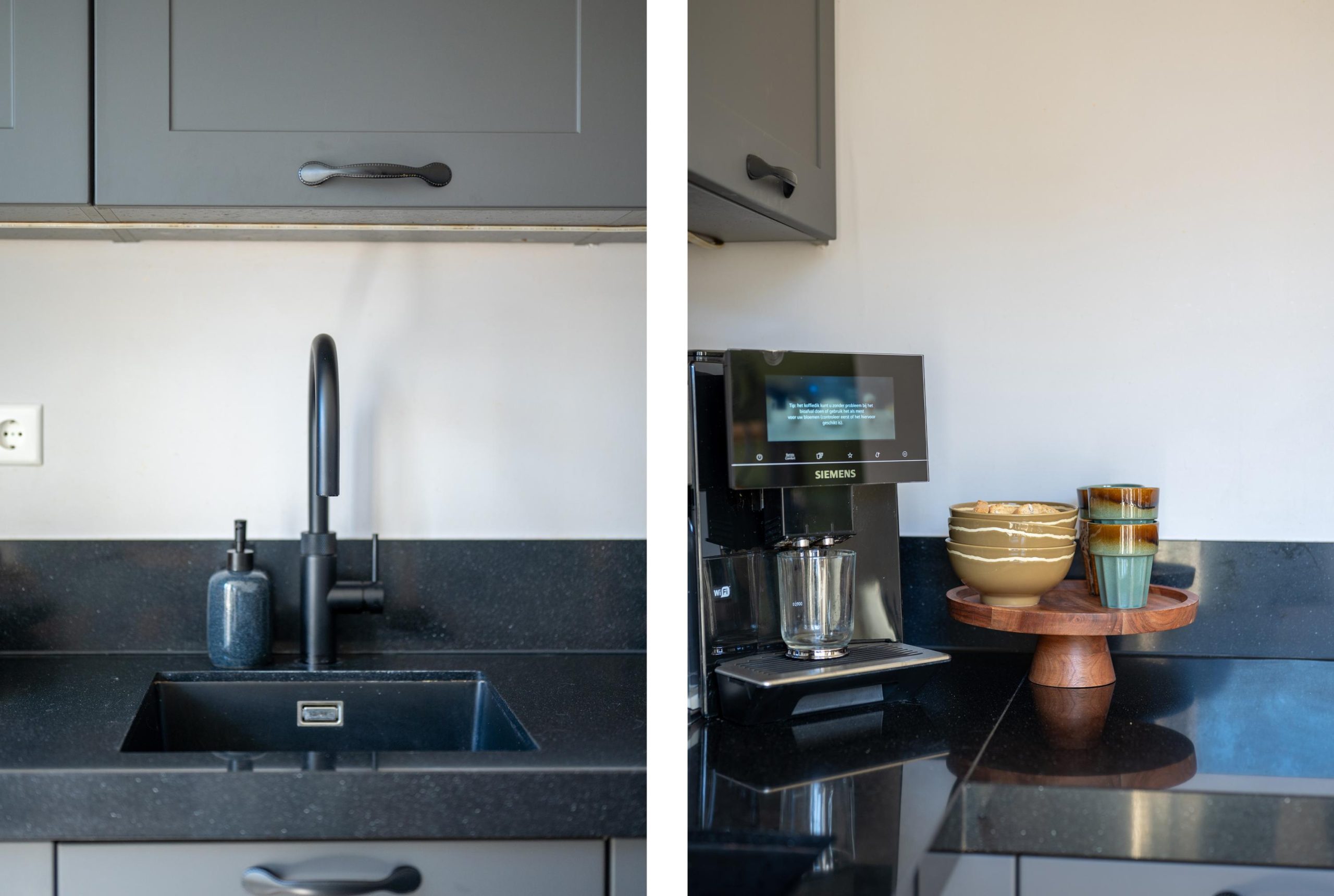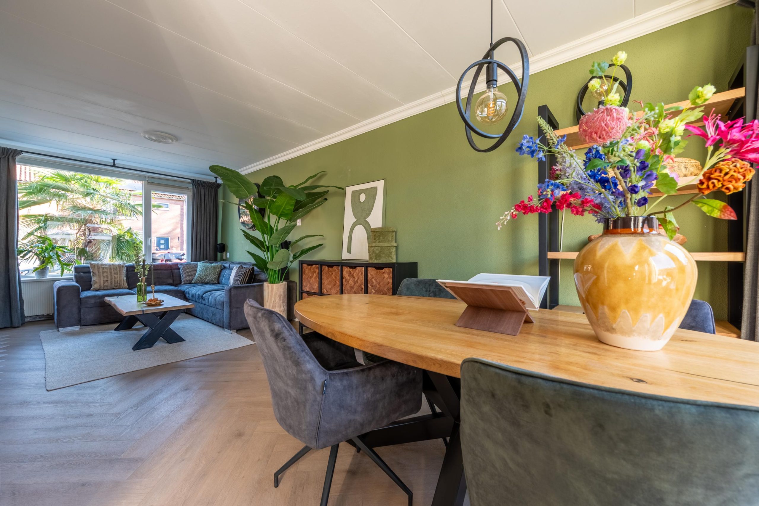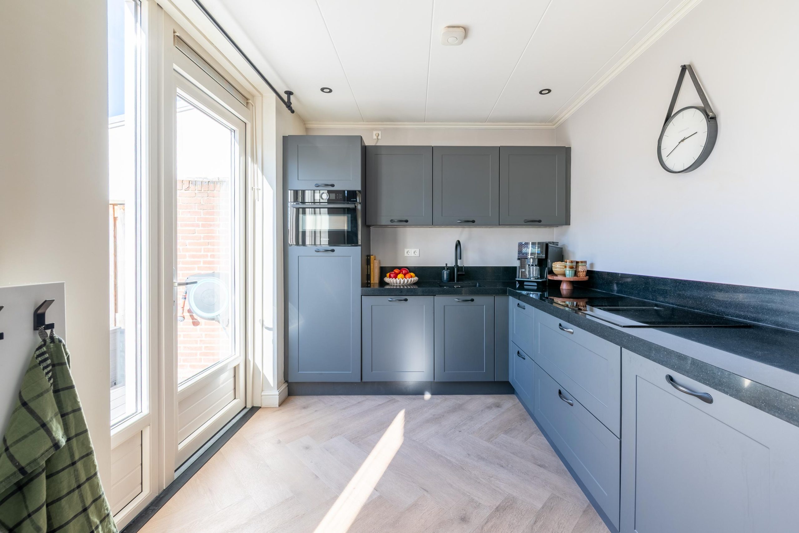 De woonkamer staat in open verbinding met de eethoek en de luxe keuken uit 2023, waardoor het geheel licht, ruim en prettig verbonden aanvoelt. Zodra je hier gaat koken, merk je meteen hoeveel comfort deze keuken te bieden heeft. Op de inductiekookplaat met geïntegreerde afzuiging bereid je met gemak de lekkerste gerechten, terwijl de afzuiging subtiel in de kookplaat is verwerkt en de open uitstraling van de ruimte behouden blijft. Ook de zelfreinigende oven draagt bij aan dat gevoel van luxe en gemak: koken is niet alleen prettig tijdens het bereiden, maar ook daarna blijft het comfort voelbaar. Geen gedoe met schoonmaken, maar gewoon nog even nagenieten van wat er op tafel staat. Met de Quooker heb je bovendien in één beweging kokend water voor thee, pasta of een snelle kop soep. Juist die praktische details maken het dagelijks gebruik hier extra fijn.