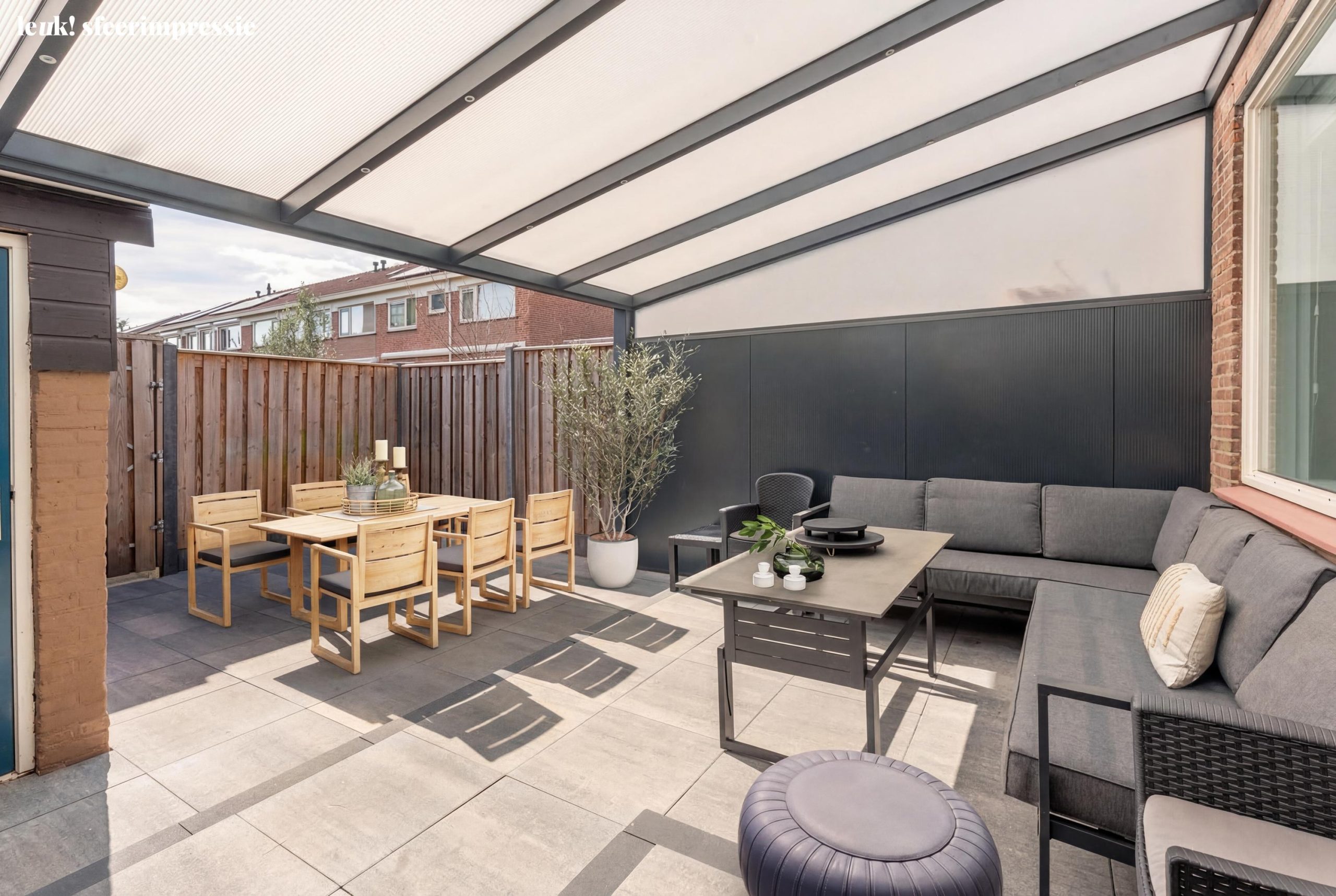 Ook buiten zit het goed. De achtertuin is verrassend ruim en biedt alle kans om er iets heel eigens van te maken. Denk aan een grote tuintafel, een groene border of een fijne plek in de zon. Achterin staat een praktische berging voor fietsen en spullen die je graag netjes opbergt.