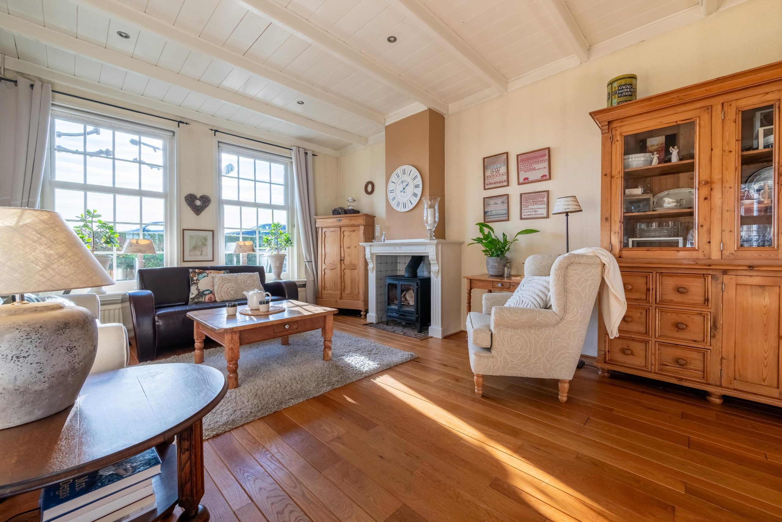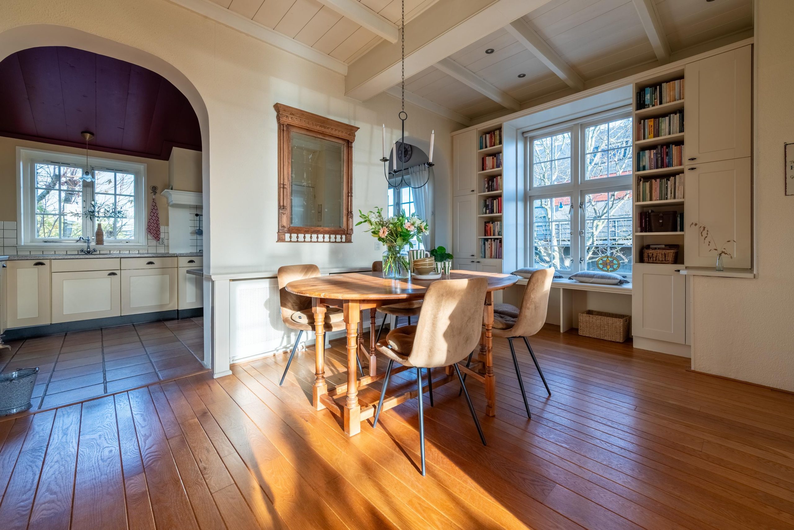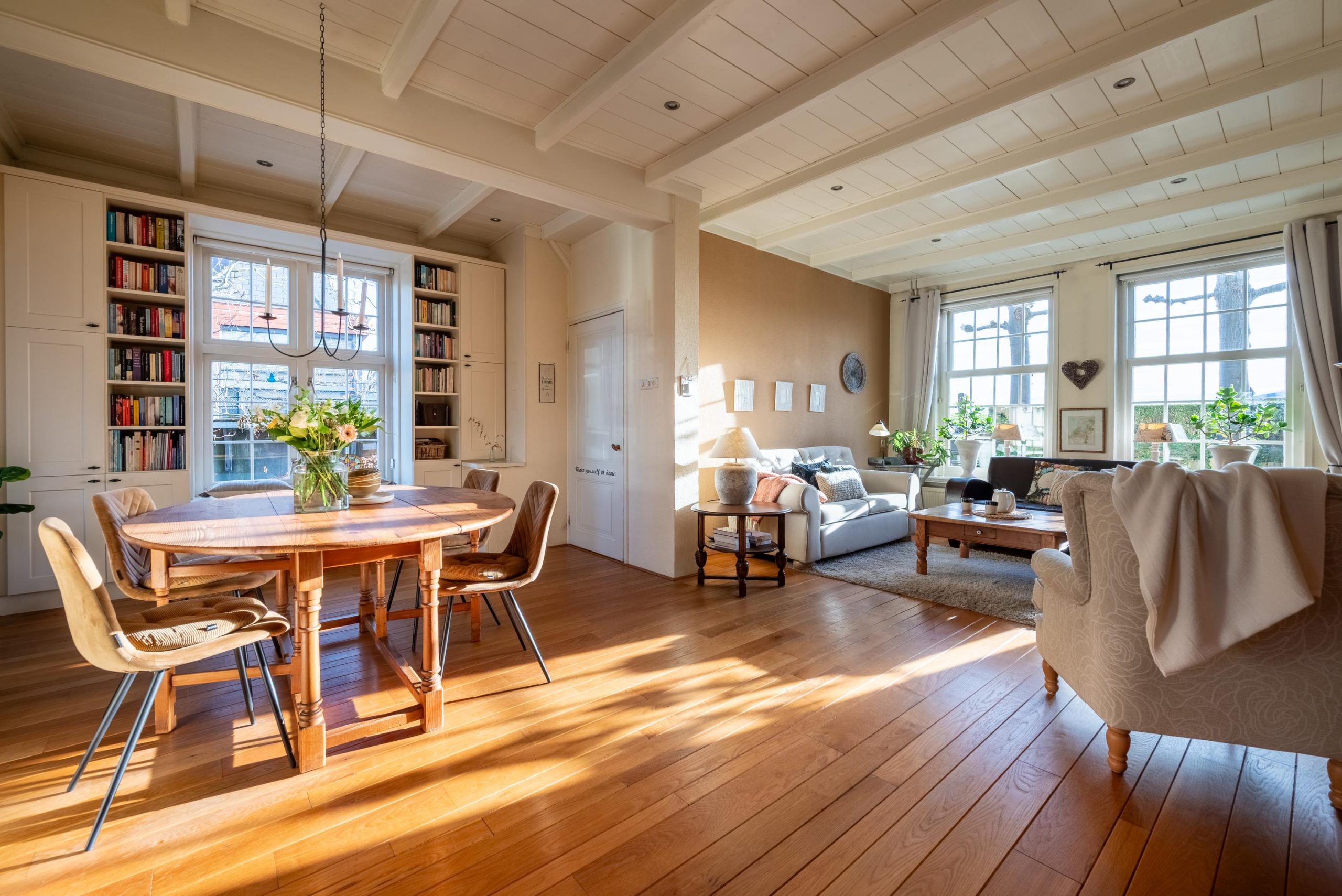 Aan de Rivierdijk 663 in Hardinxveld-Giessendam voelt elke dag als een vakantie. De woonkamer met massief eikenhouten vloer is een warm welkom. De houtkachel knispert, boeken worden verslonden en kopjes thee gedronken. De zon schijnt hier het grootste deel van de dag naar binnen en de geruite ramen zorgen voor een sfeervol lichtspel. De balken aan het plafond geven de ruimte nét dat beetje extra karakter.