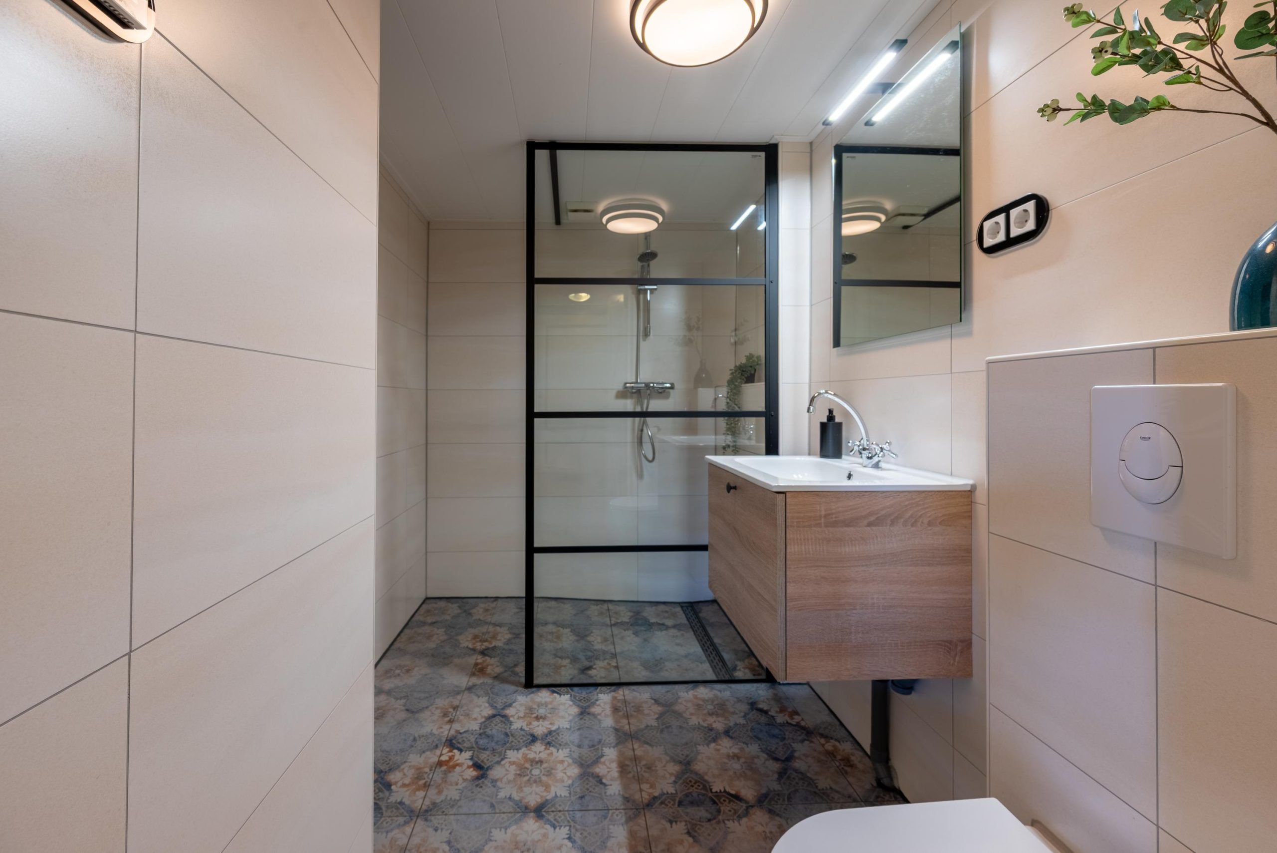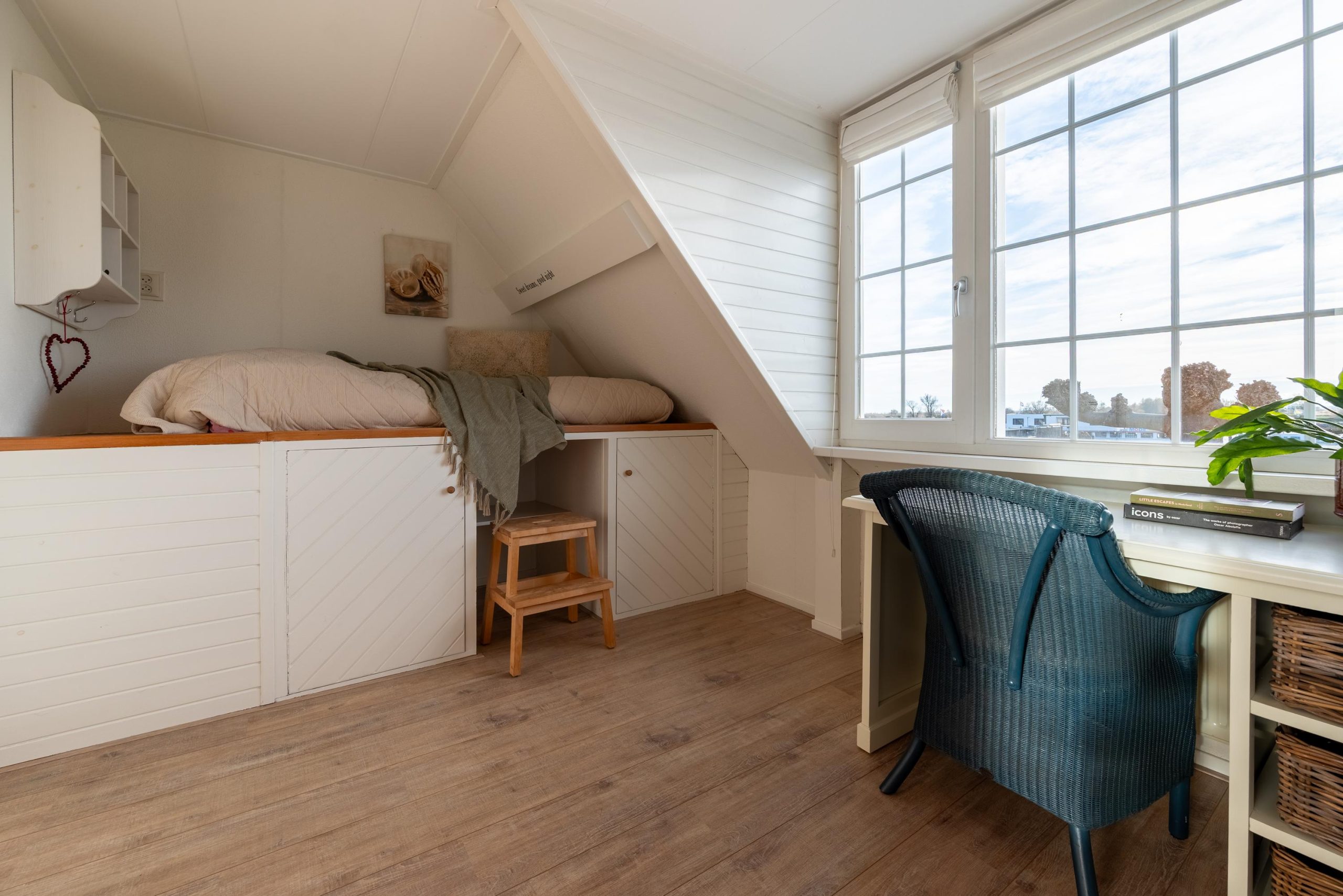 Op de eerste etage zijn drie fijne slaapkamers te vinden, met ieder hun eigen unieke sfeer. Eén met uitzicht op de tuin en in de andere twee word je wakker met uitzicht op de rivier! In beide kamers is optimaal gebruik gemaakt van de ruimte. In de ene kamer is een verhoogd bed met opslag gebouwd en in de andere kamer een slaapvliering. De badkamer met vloerverwarming bevindt zich in het souterrain. Deze is voorzien van inloopdouche, wastafelmeubel, toilet en designradiator.