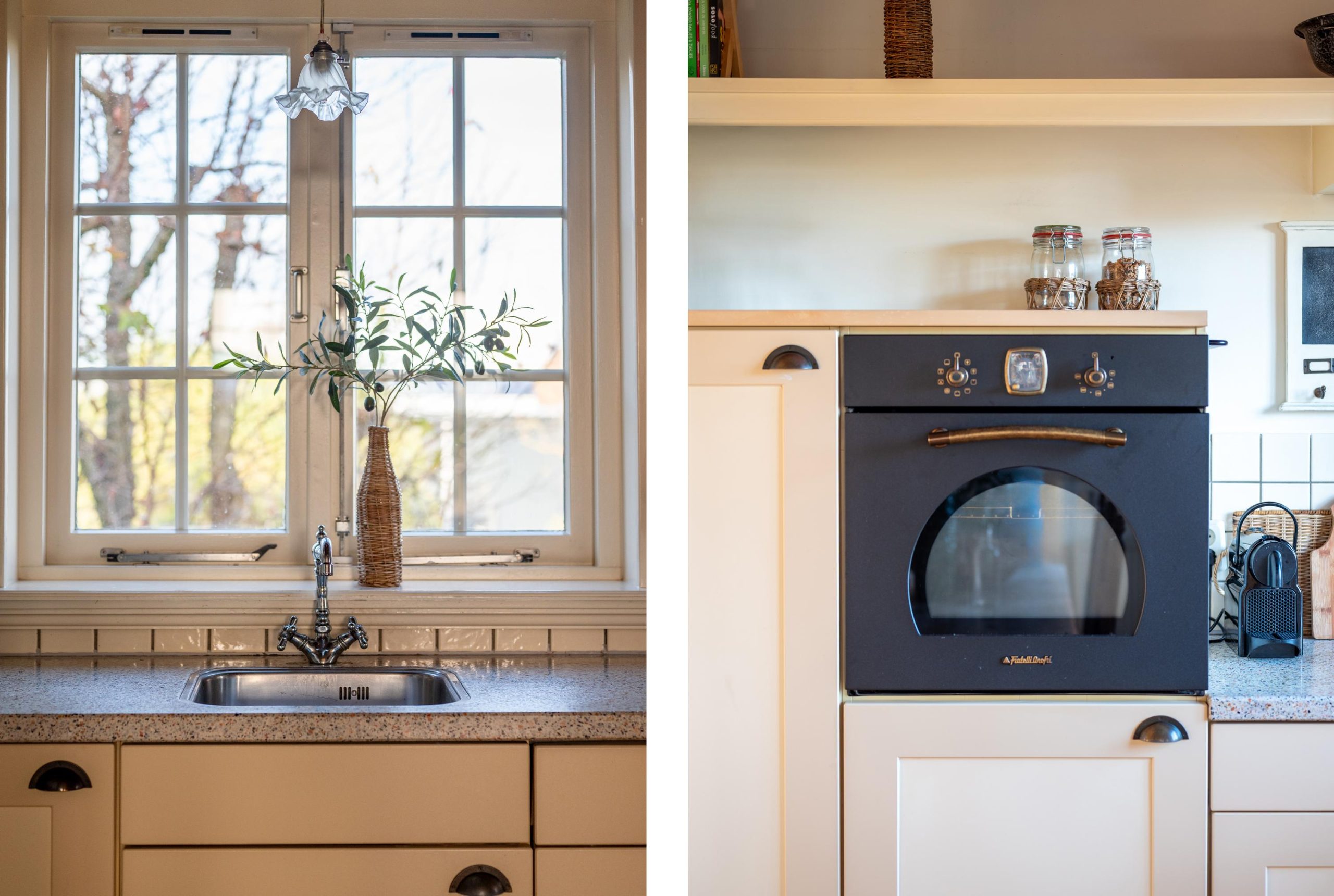 In de keuken kook je met uitzicht op de prachtige tuin, waar je ook nog eens makkelijk naartoe loopt, dankzij de trap die vanaf hier rechtstreeks naar buiten leidt. Uiteraard is de keuken van alle gemakken voorzien, zoals een oven, vaatwasser en is er kastruimte in overvloed. Ook is er genoeg ruimte voor een ruime eettafel, zodat er in het weekend met heel het gezin uitgebreid ontbeten kan worden.