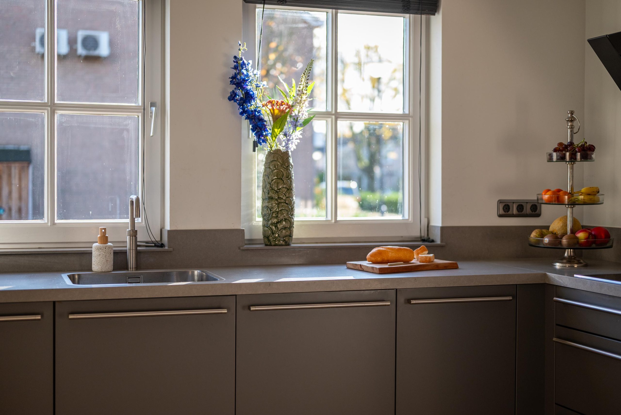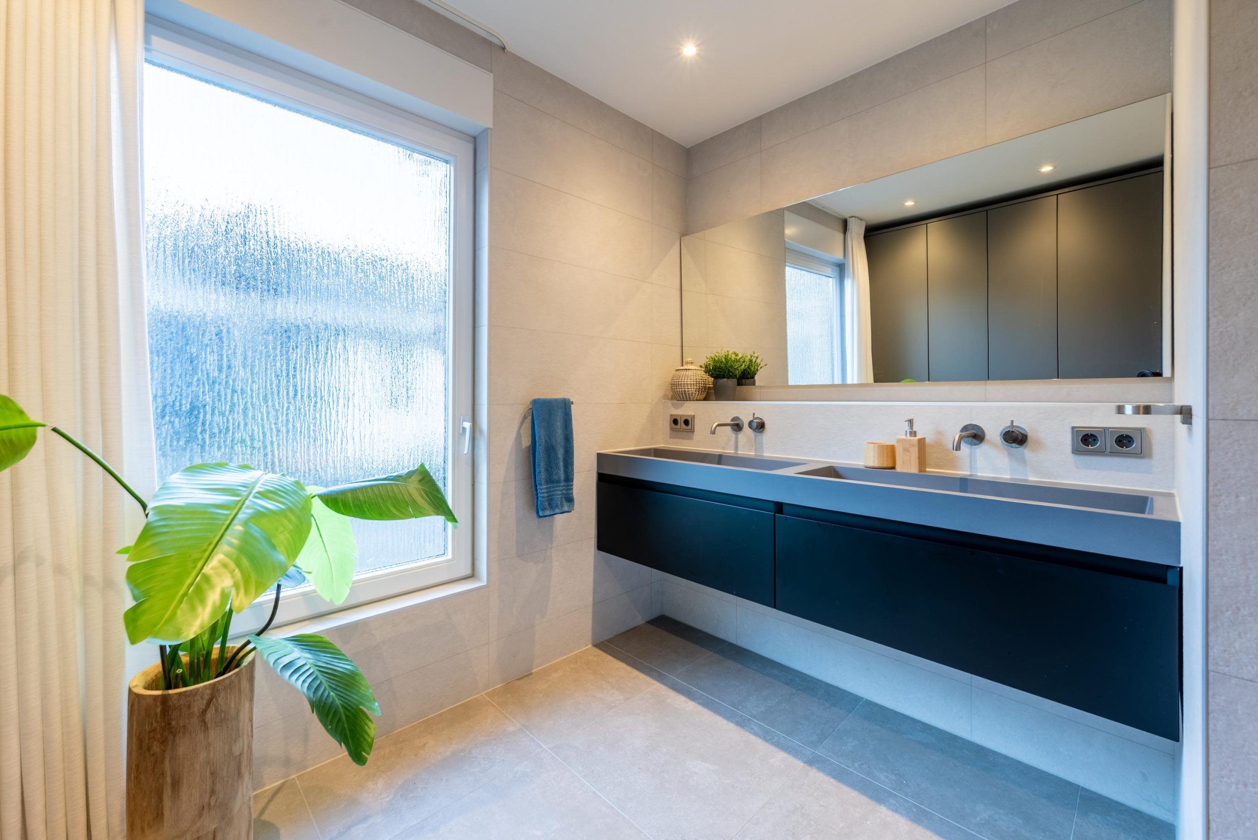 De keuken is strak afgewerkt, royaal van opzet en uitgerust met moderne inbouwapparatuur. Dit is zo’n keuken waar je graag samen kookt, een taart uit de oven haalt of met een kop koffie aan het aanrecht blijft hangen terwijl het buiten langzaam donker wordt. Ook de badkamer voelt als pure verwennerij; een echte privé spa waar je iedere dag even helemaal tot rust komt.