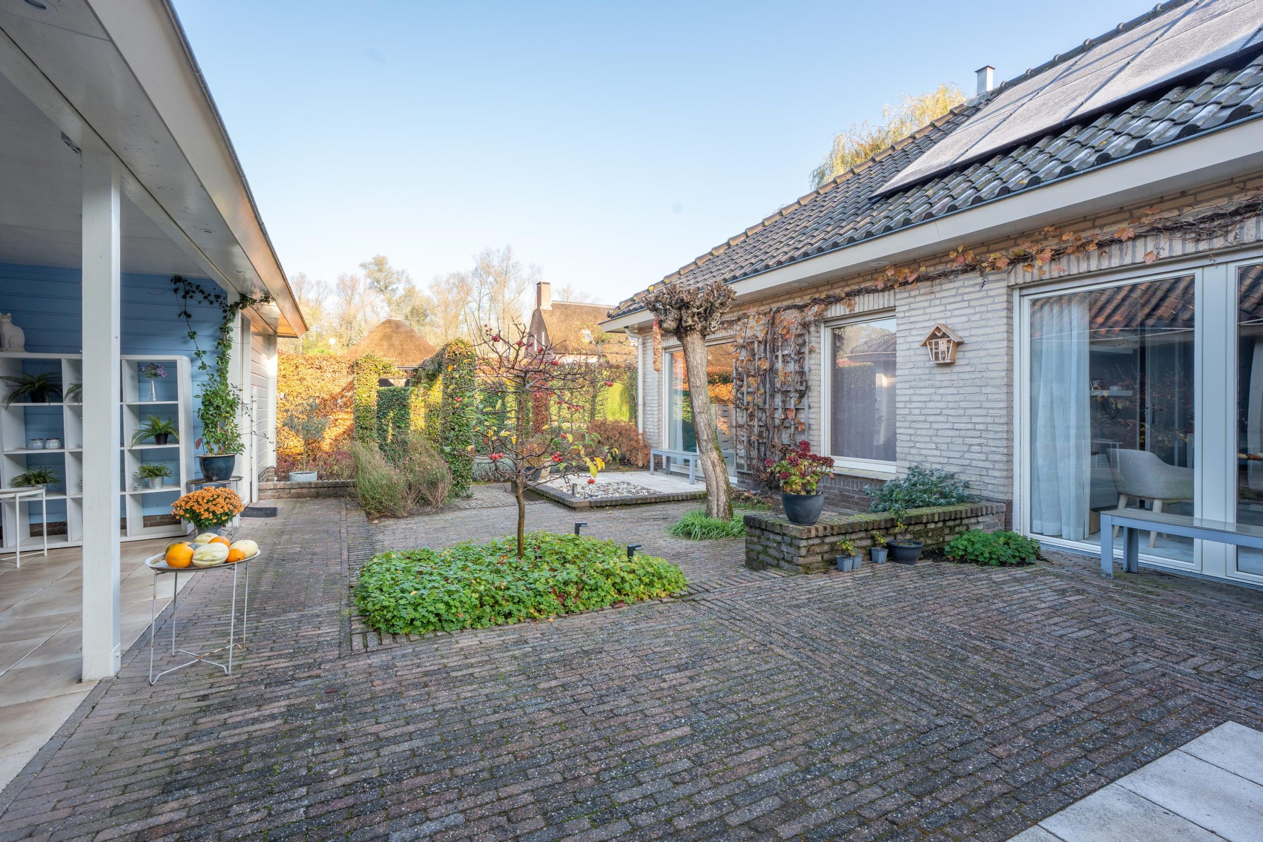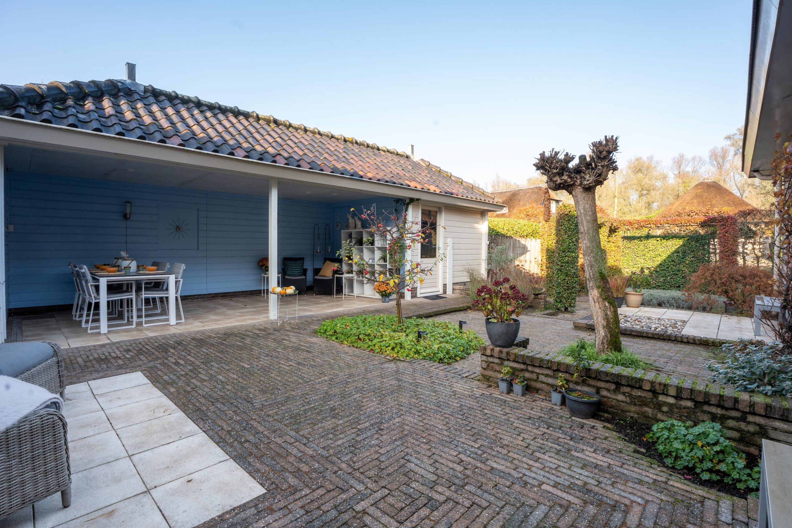 Rondom het huis ligt een tuin die echt onderdeel wordt van je dagelijks leven. Verschillende terrassen en zithoeken, een overkapping en achterin een vlonder aan het water zorgen ervoor dat je op elk moment van de dag een fijn plekje vindt. Dankzij de vrije ligging en beplanting geniet je hier van veel privacy, met alleen het geluid van fluitende vogels.