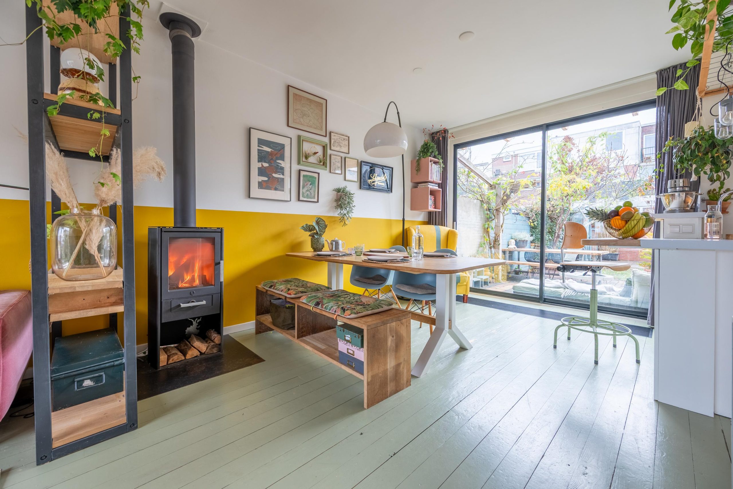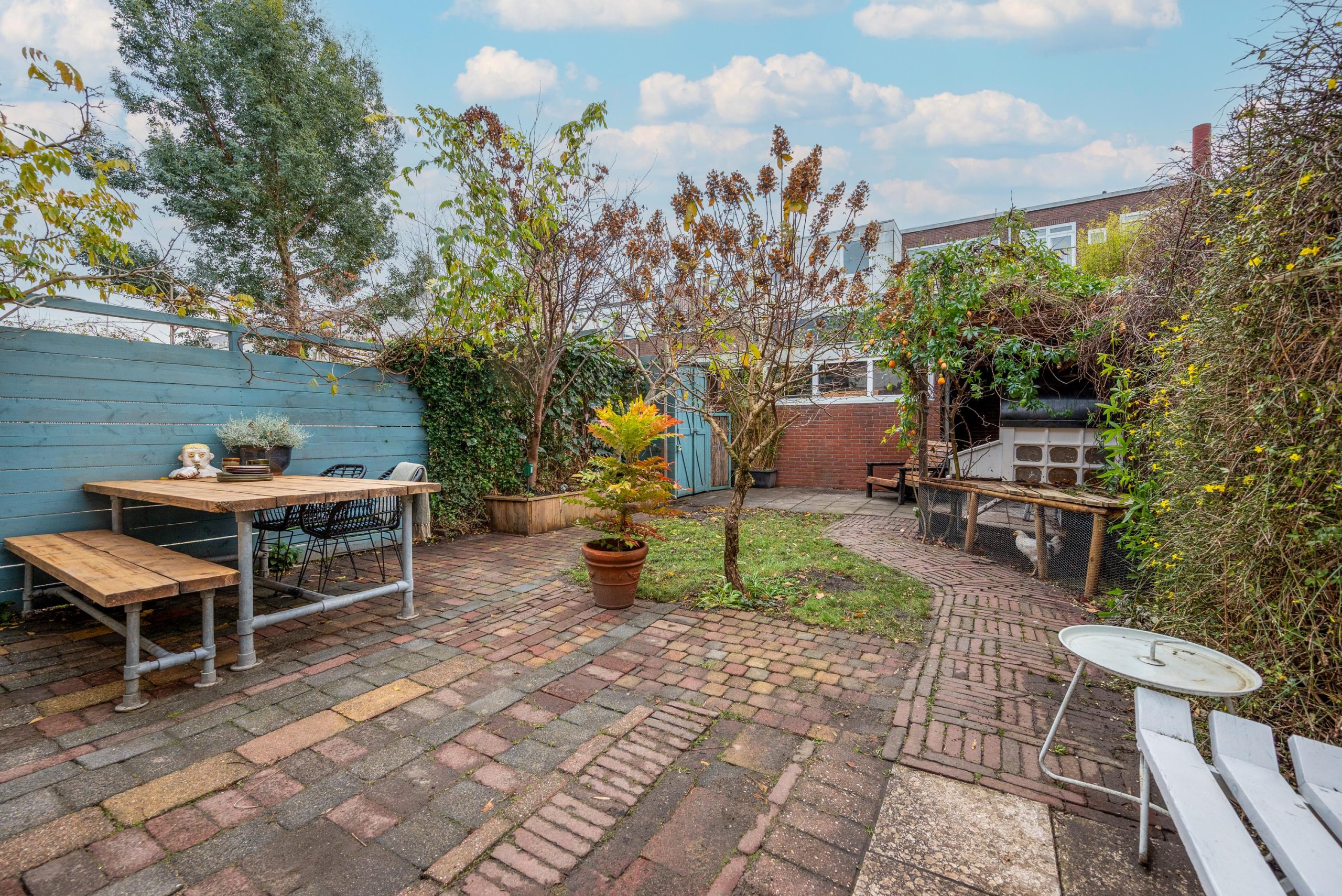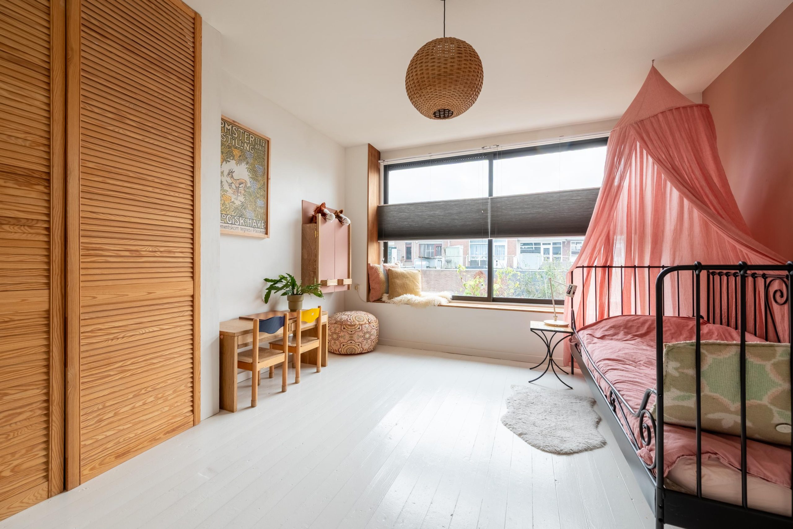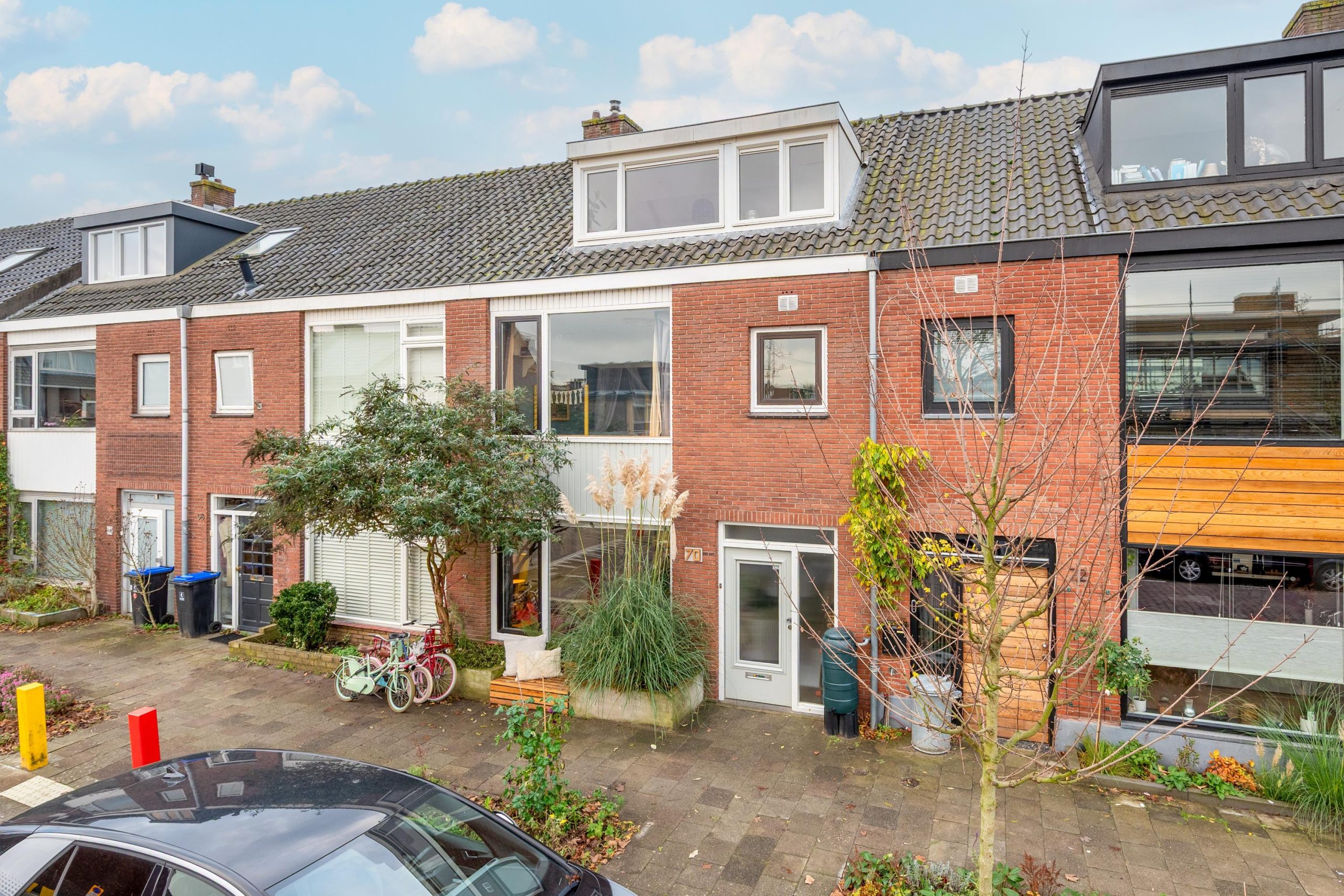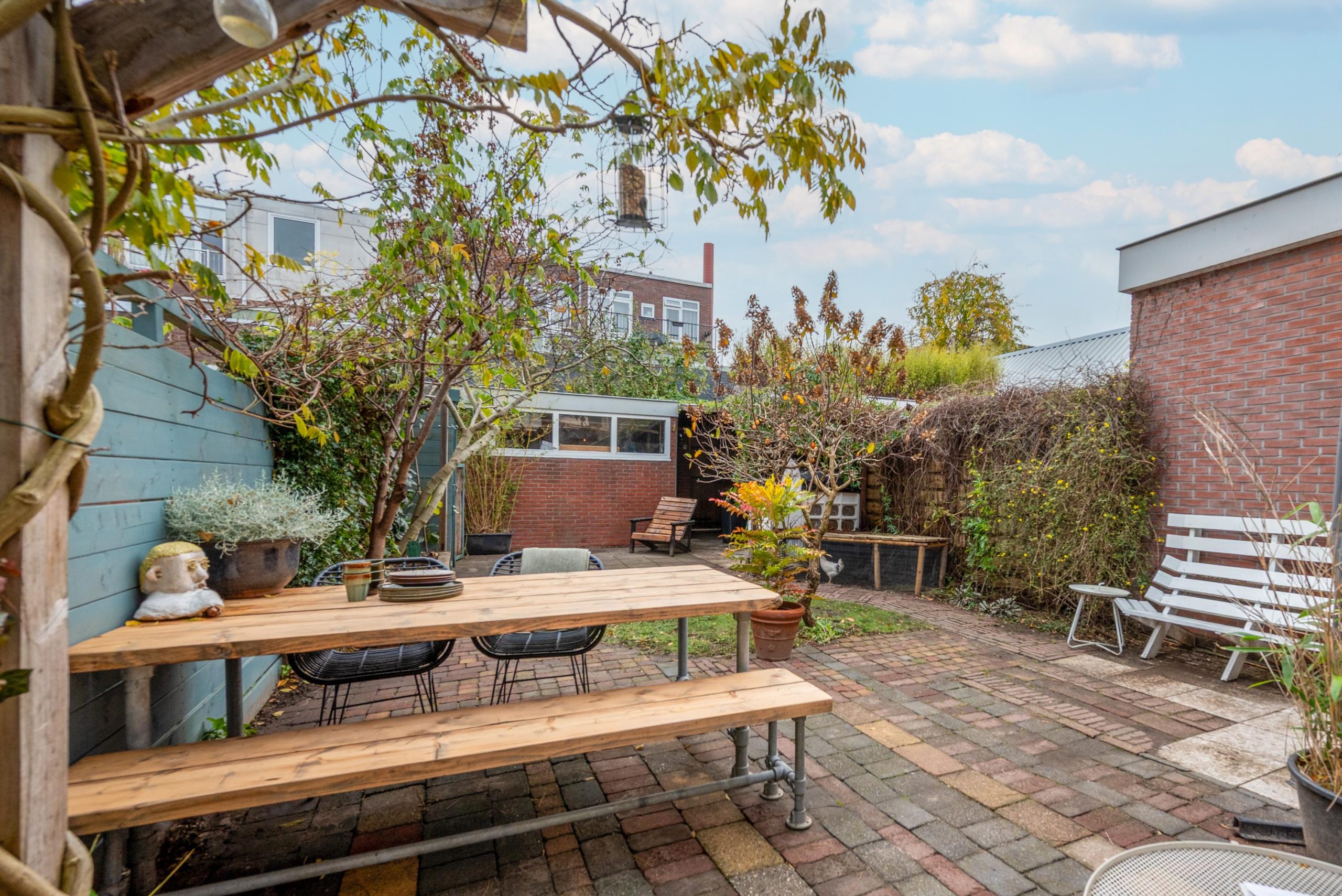 Buiten vormt de tuin een verlengde van het huis, met meerdere zitplekjes, volop groen, een ruime stenen schuur, een recent vernieuwd schuurdak en een afdak voor de fietsen. Dankzij de achterom is de tuin ook praktisch in het dagelijks gebruik. Op de eerste verdieping liggen drie kamers met ruimte voor spelen, slapen, leren én thuiswerken. Vanuit de woonkamer kijk je uit op het schoolplein, waar kinderen uit de buurt vrij en veilig kunnen spelen.