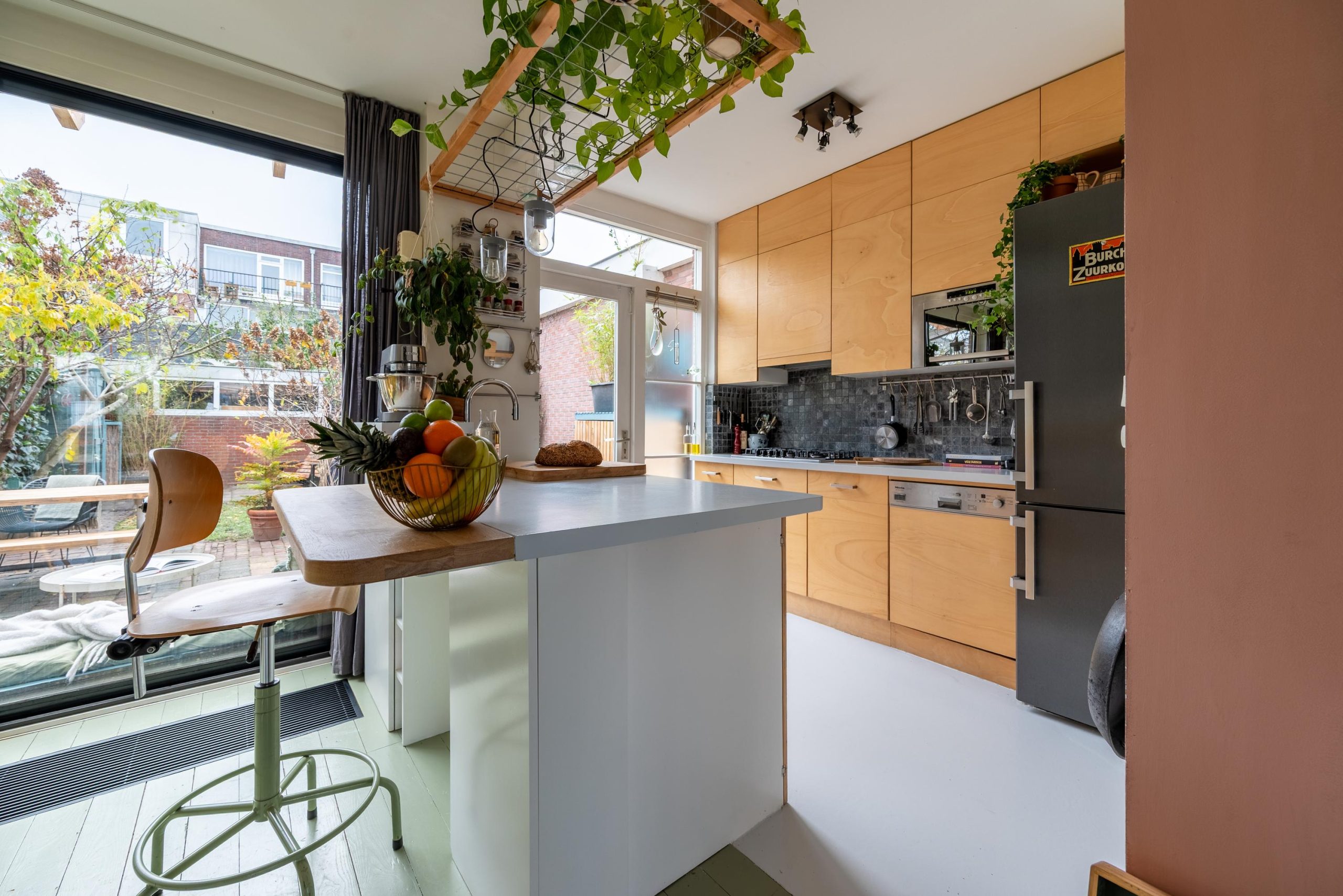 De lichte, extra ruime woonkamer met open indeling is de ideale plek voor gezellige avonden en ontspannen momenten. De efficiënte, moderne keuken is van alle gemakken voorzien, met een Quooker, ruime betonnen werkbladen en volop werkruimte én een fijn uitzicht op de zonnige tuin op het zuidwesten.