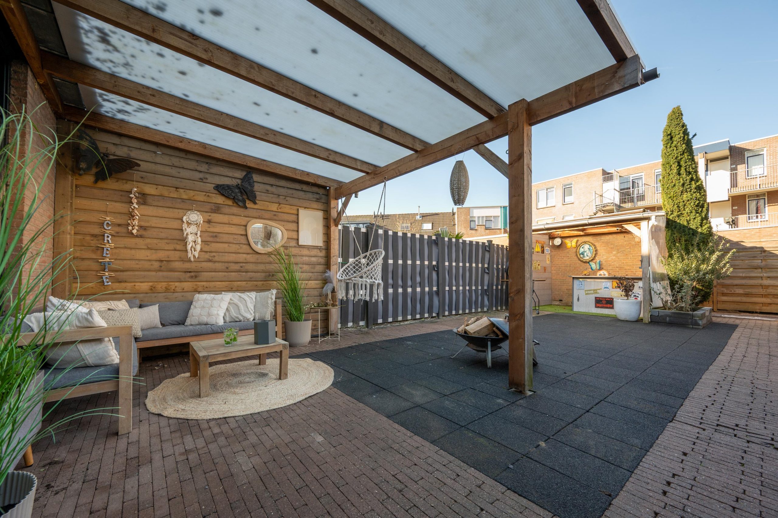 Buiten zit je minstens net zo lekker als binnen. In de achtertuin met twee overkappingen zie je het toch al helemaal voor je: wanneer de zon schijnt nodig je hier je vrienden uit voor een (misschien wel veel te) gezellige barbecue, terwijl je op sombere dagen ook lekker met een dekentje onder de overkapping kunt zitten.